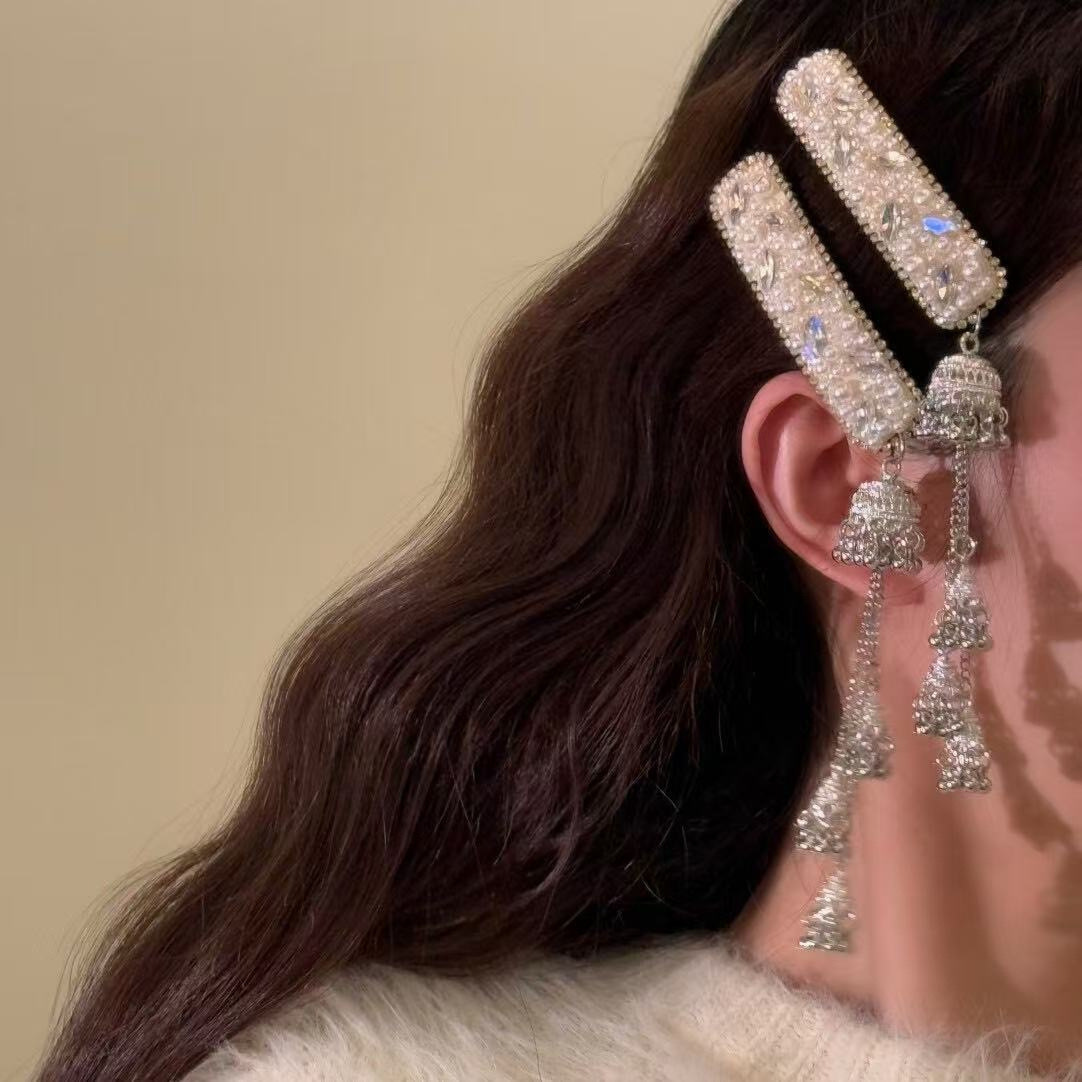 秀禾新中式~超闪银色宝石民族风发饰超仙满钻气质小众头饰刘海夹