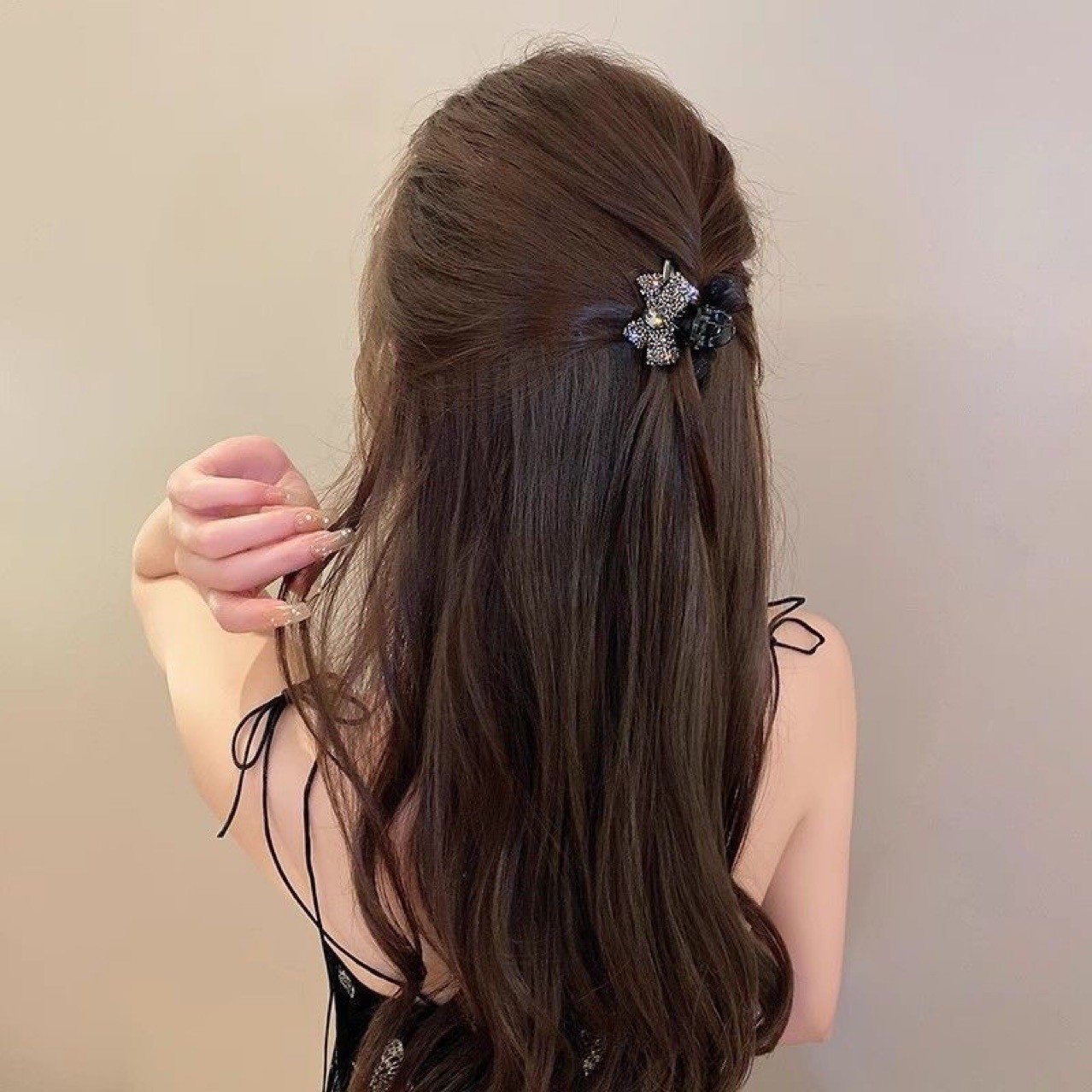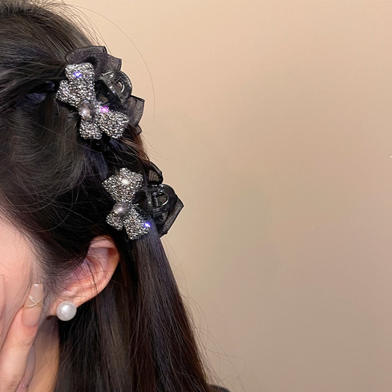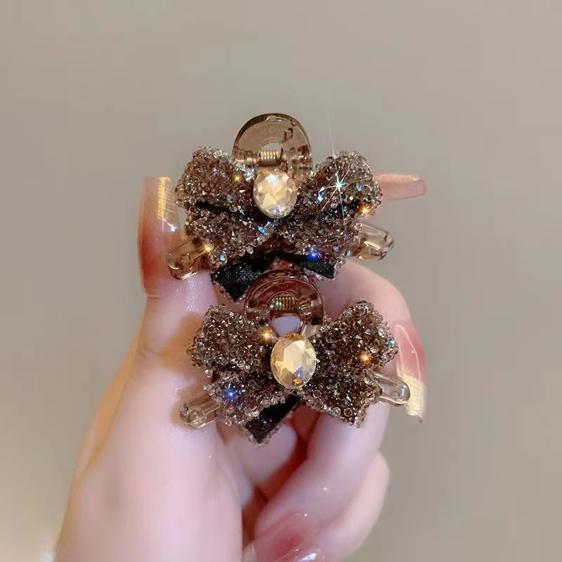 轻奢小众高级感超闪满钻蝴蝶结小号抓夹气质刘海夹后脑勺盘发器
