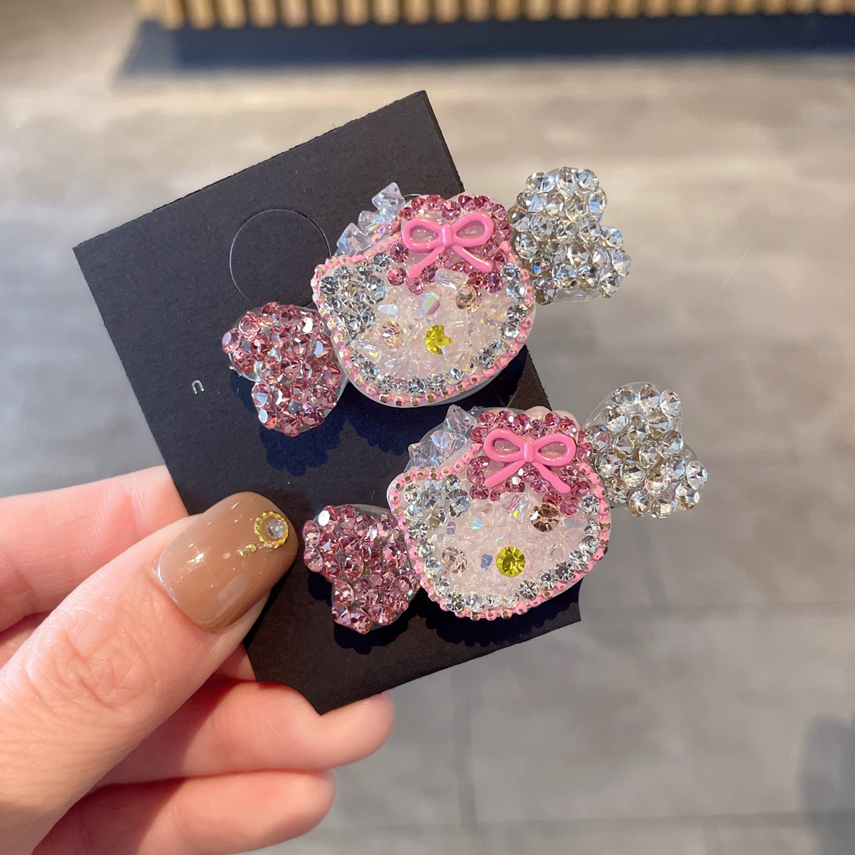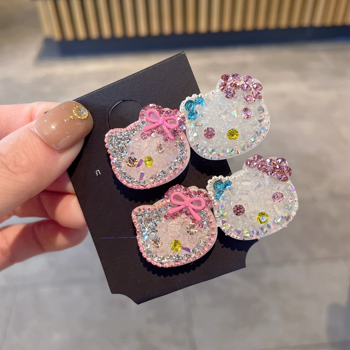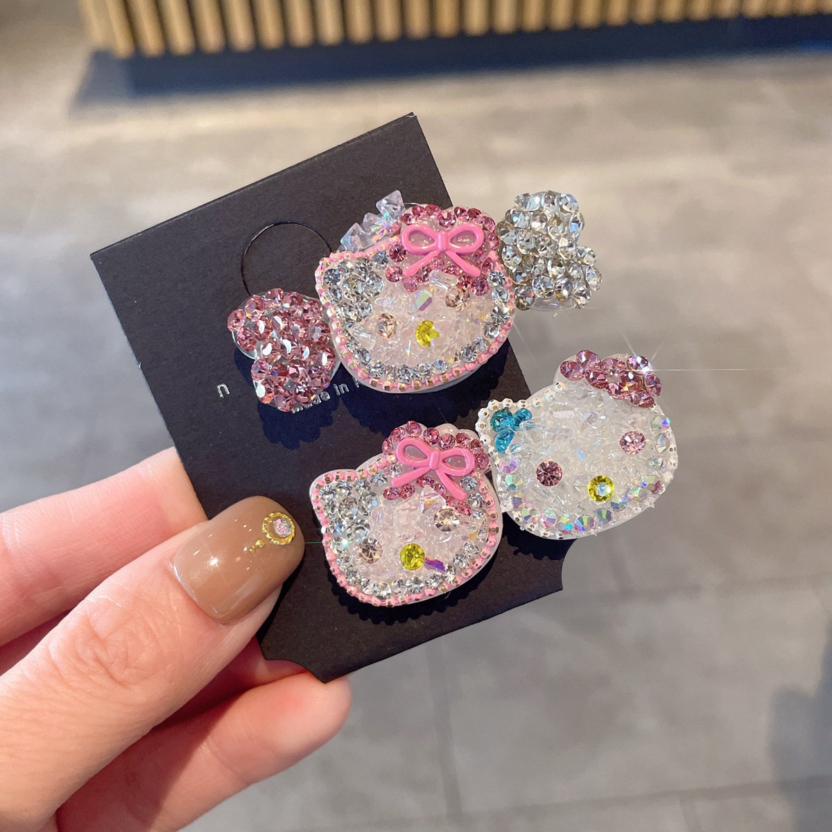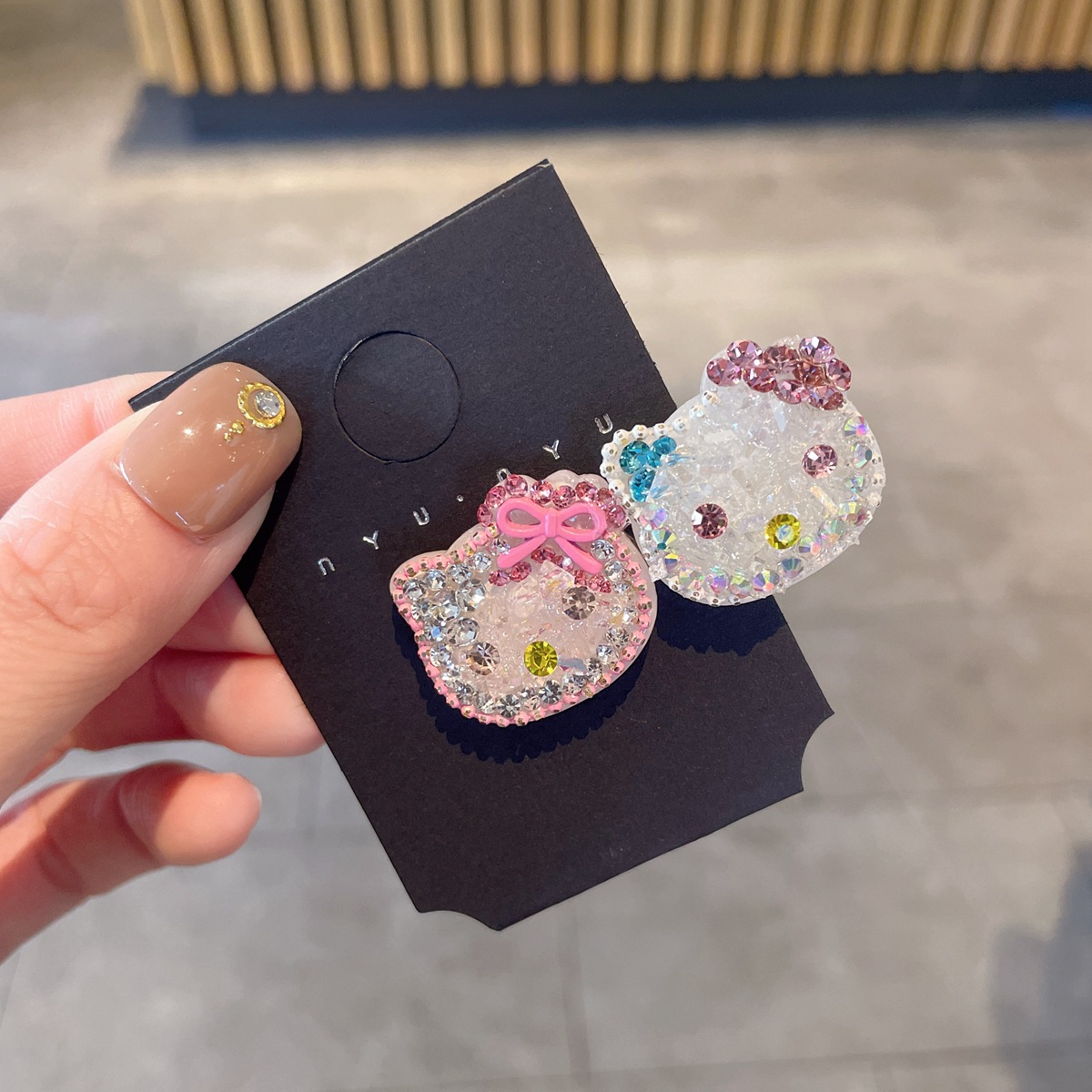 粉嘟嘟kt闪钻发夹鸭嘴夹甜美可爱少女风满钻刘海夹发卡侧边夹