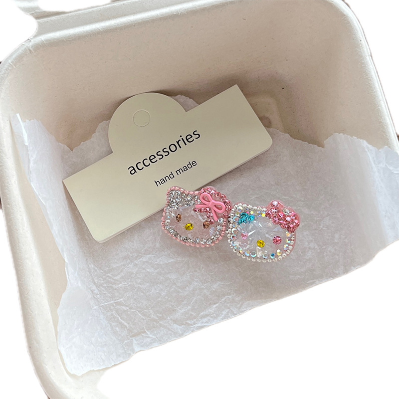 韩版新款满钻KT猫发夹甜美少女刘海碎发侧边夹鸭嘴夹气质百搭发饰