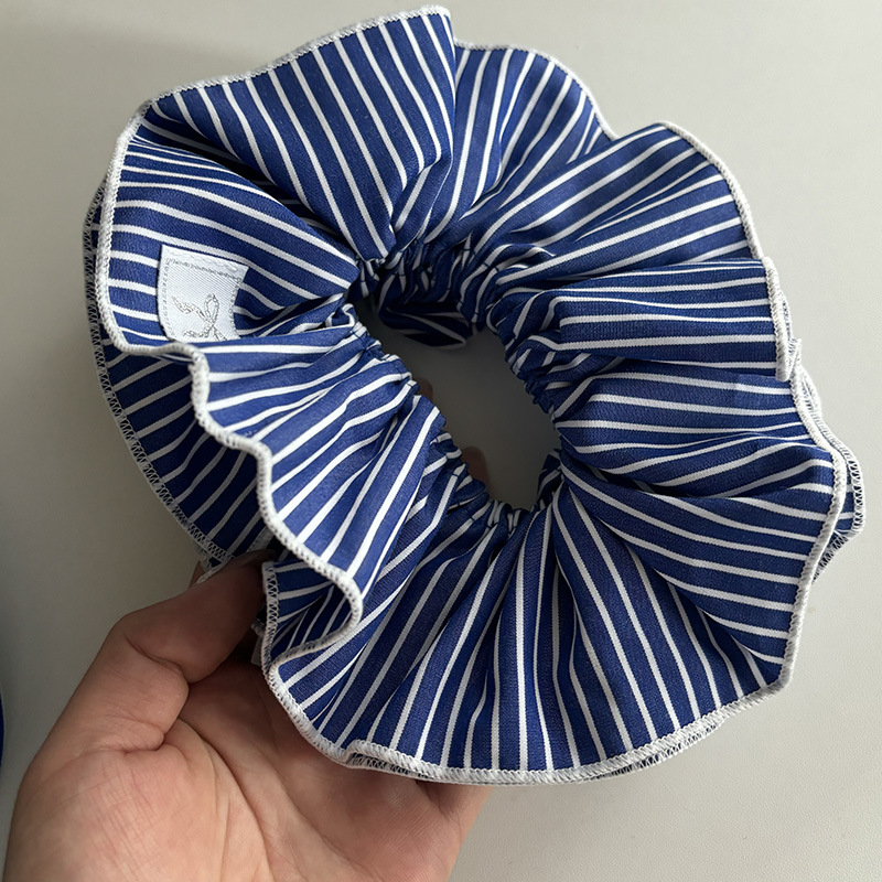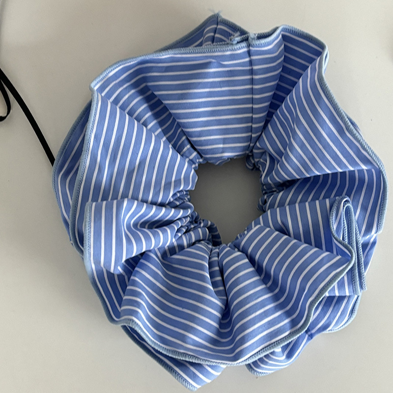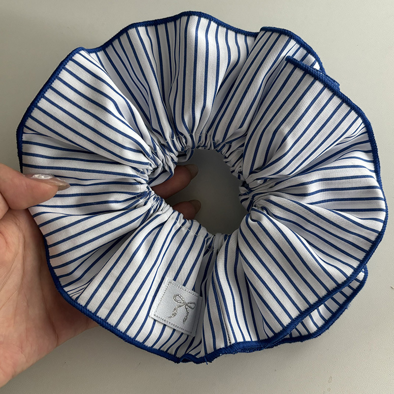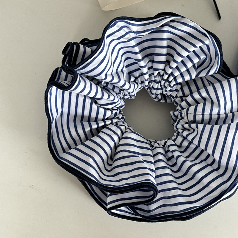 博主同款加大号小清新布艺条纹蓝色条纹发圈新款低马尾皮筋头绳发