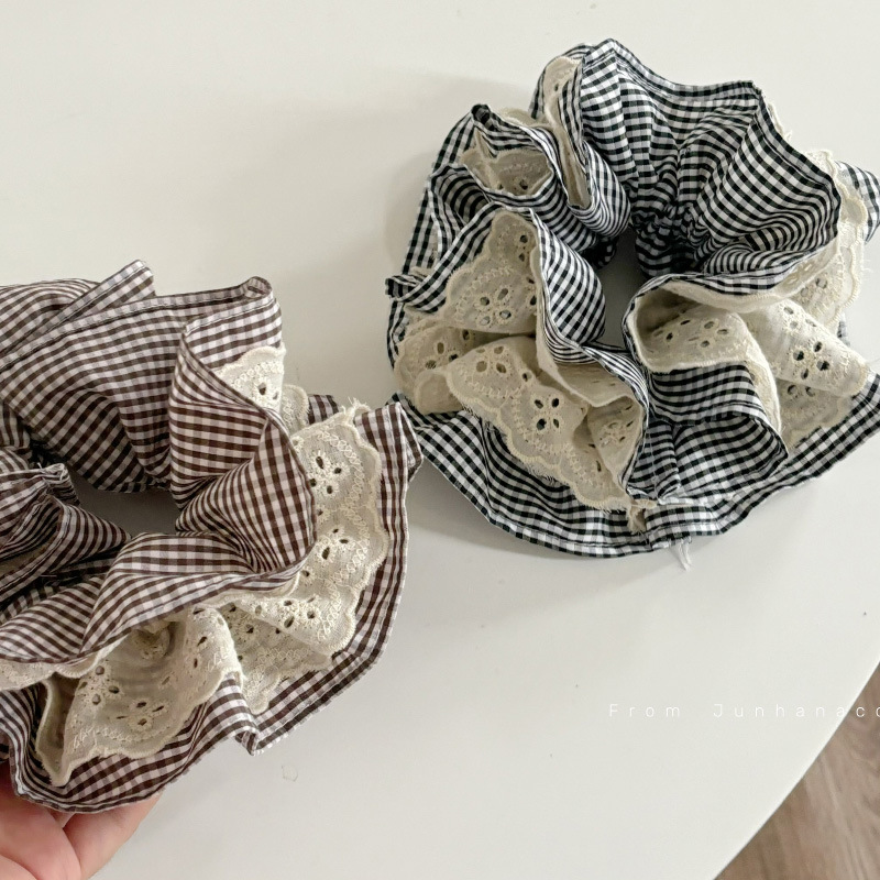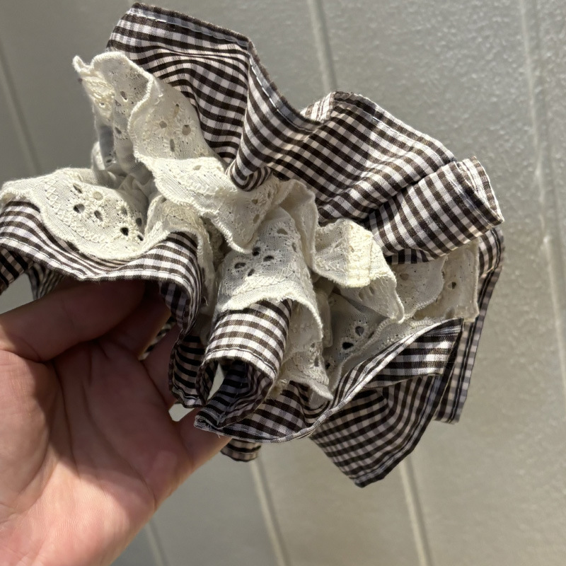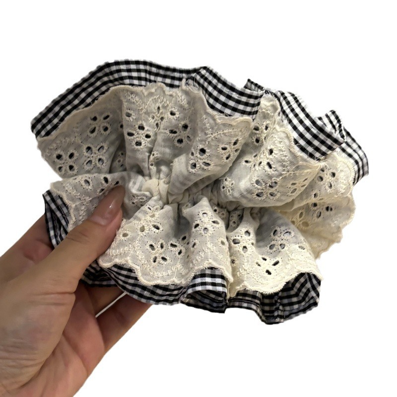 法式重工小众设计蕾丝镂空花边大肠发圈大号少女夏季森系可爱仙美