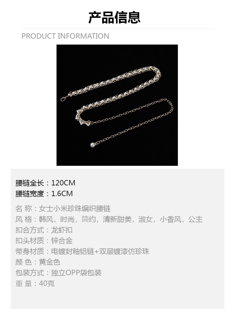 珍珠腰链女款高级感百搭装饰裙子腰带女时尚休闲珍珠编织金属裤链