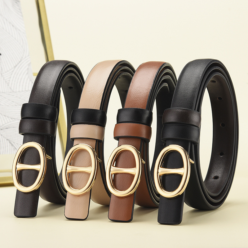 新款 女士腰带韩版椭圆平滑扣简约皮带女 复古百搭牛仔西装裙裤带