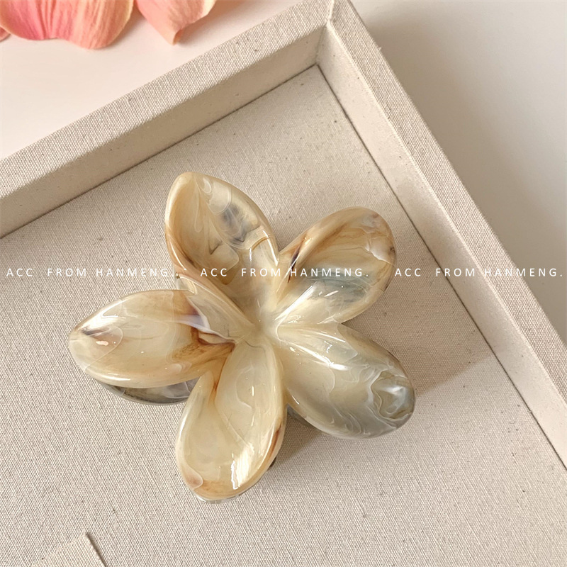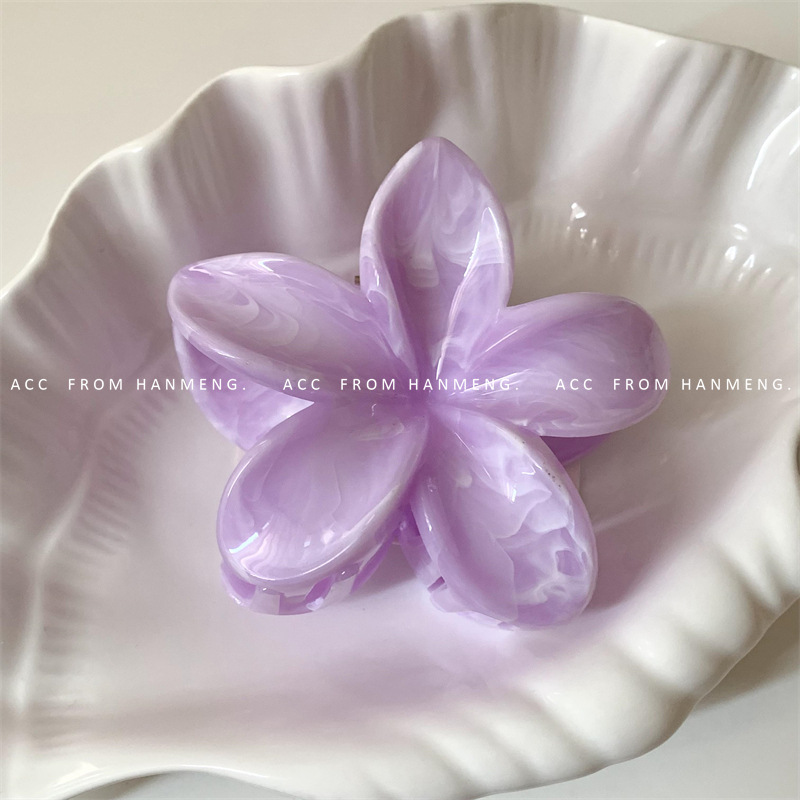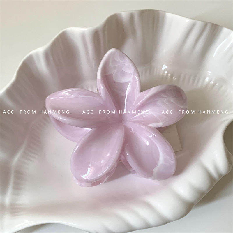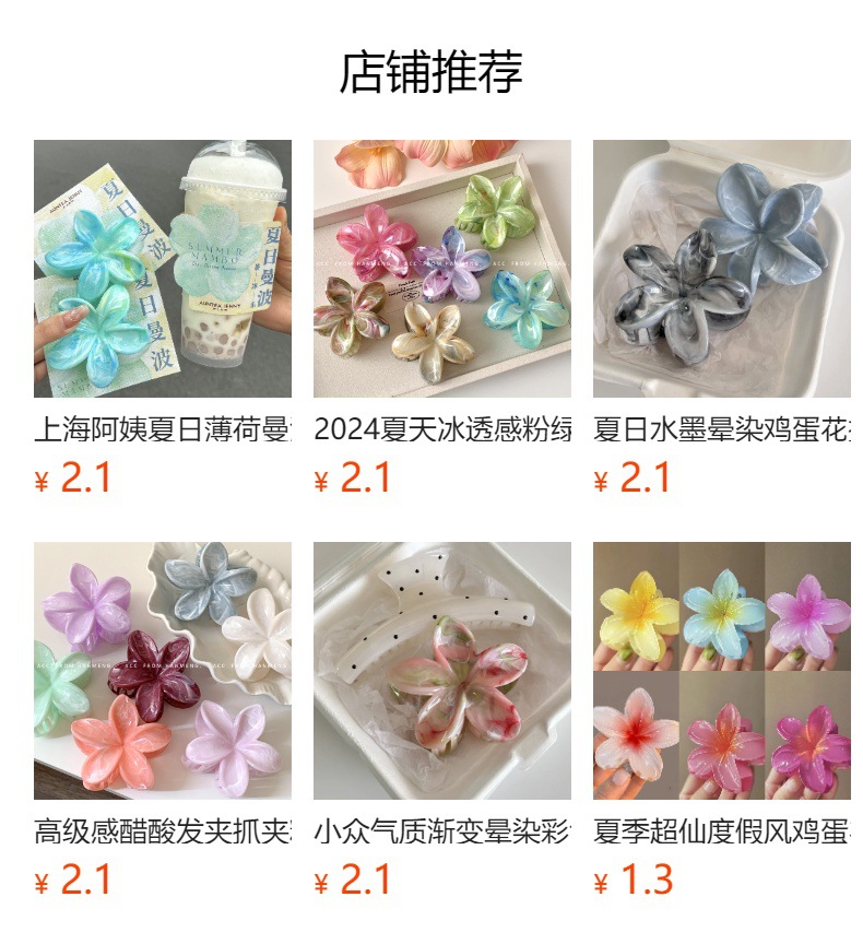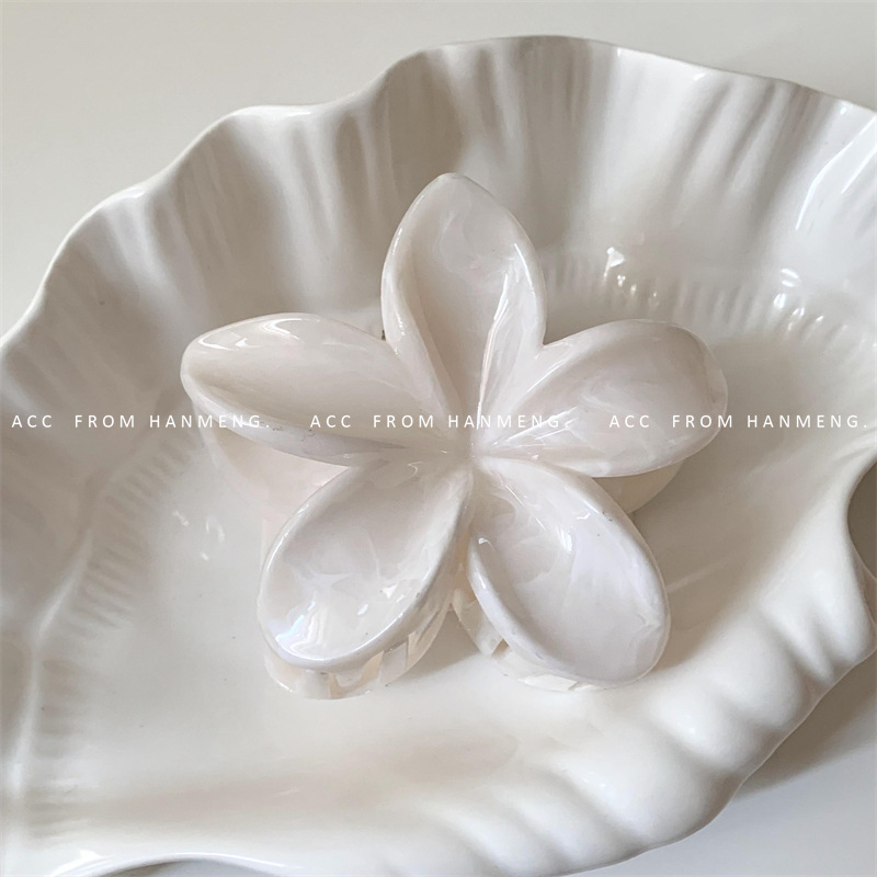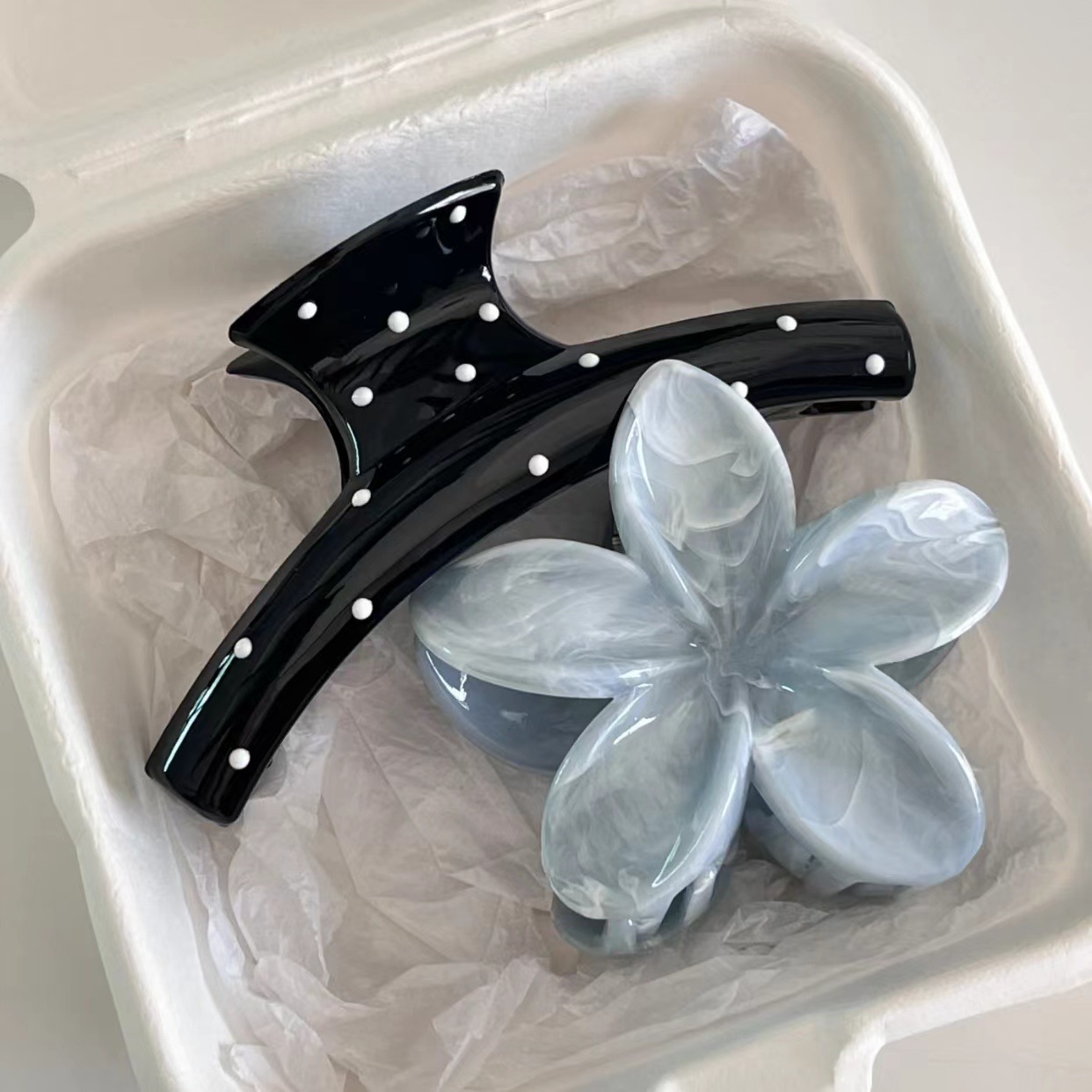 夏季小清新晕染花朵抓夹2025甜美鸡蛋花后脑勺盘发鲨鱼夹波点发饰
