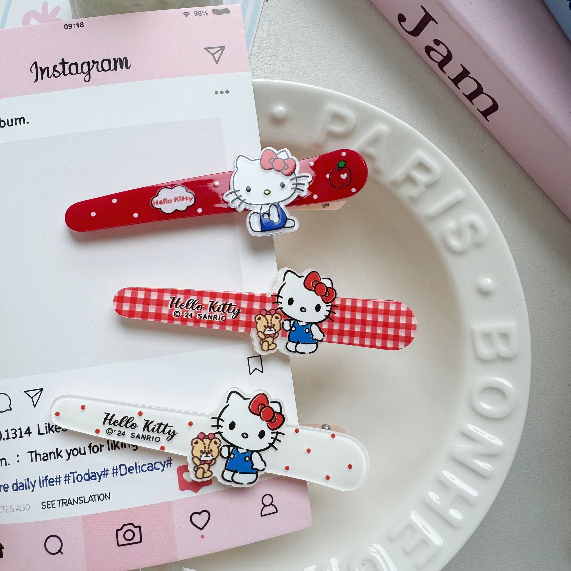 卡通可爱波点格纹kitty鸭嘴夹甜美少女刘海夹尖嘴夹日系百搭发饰