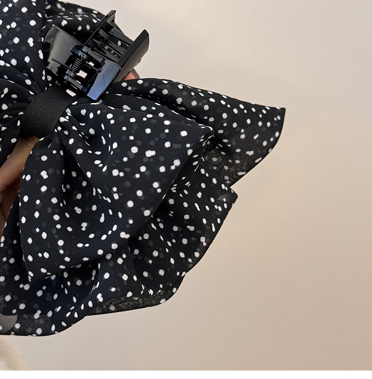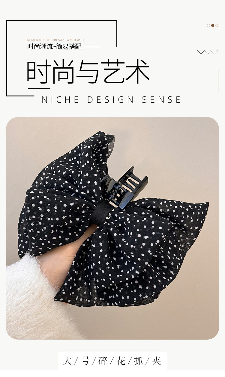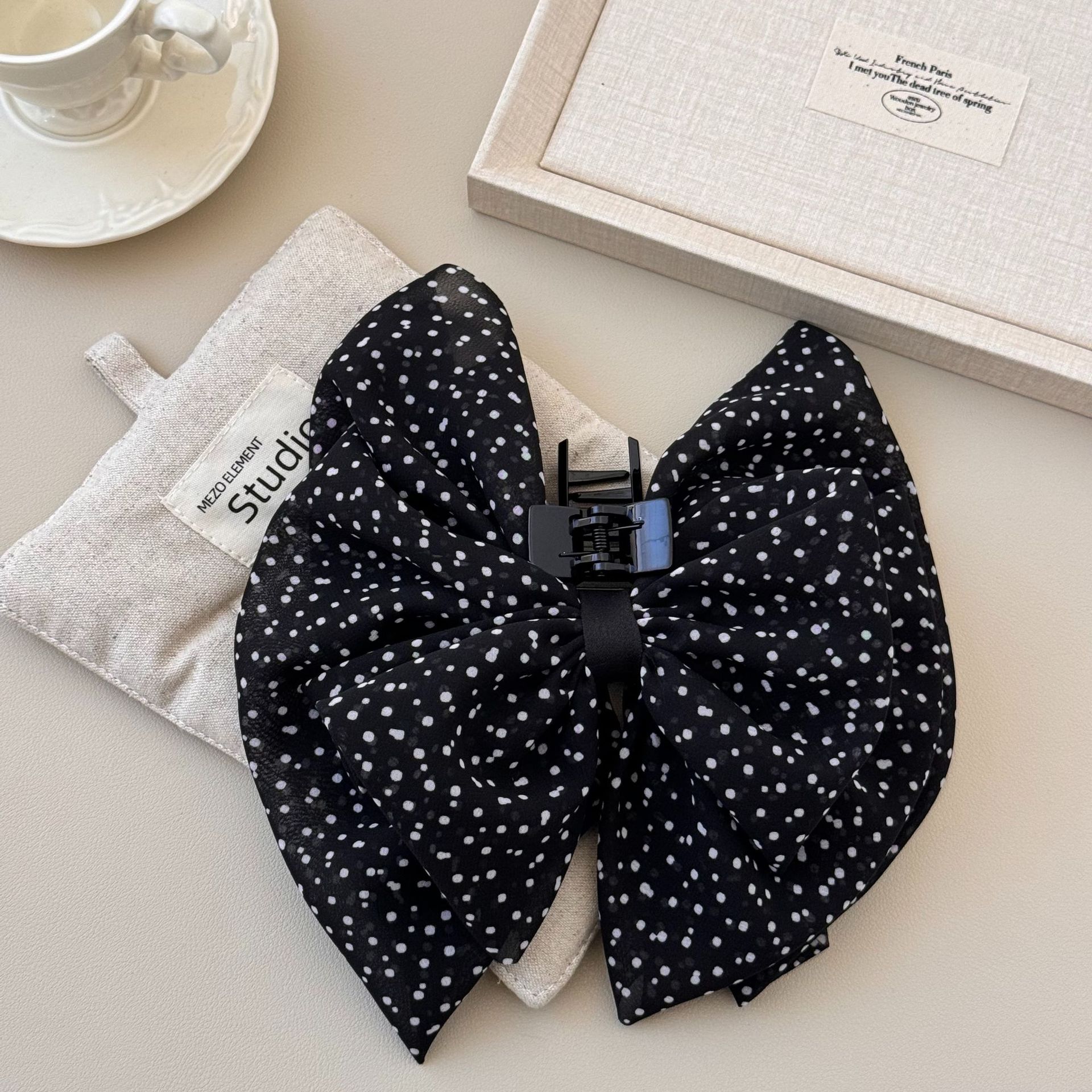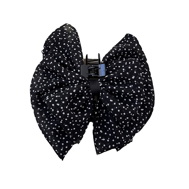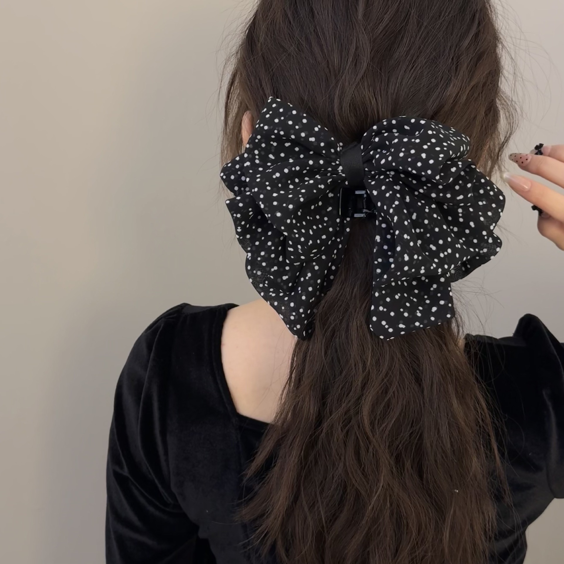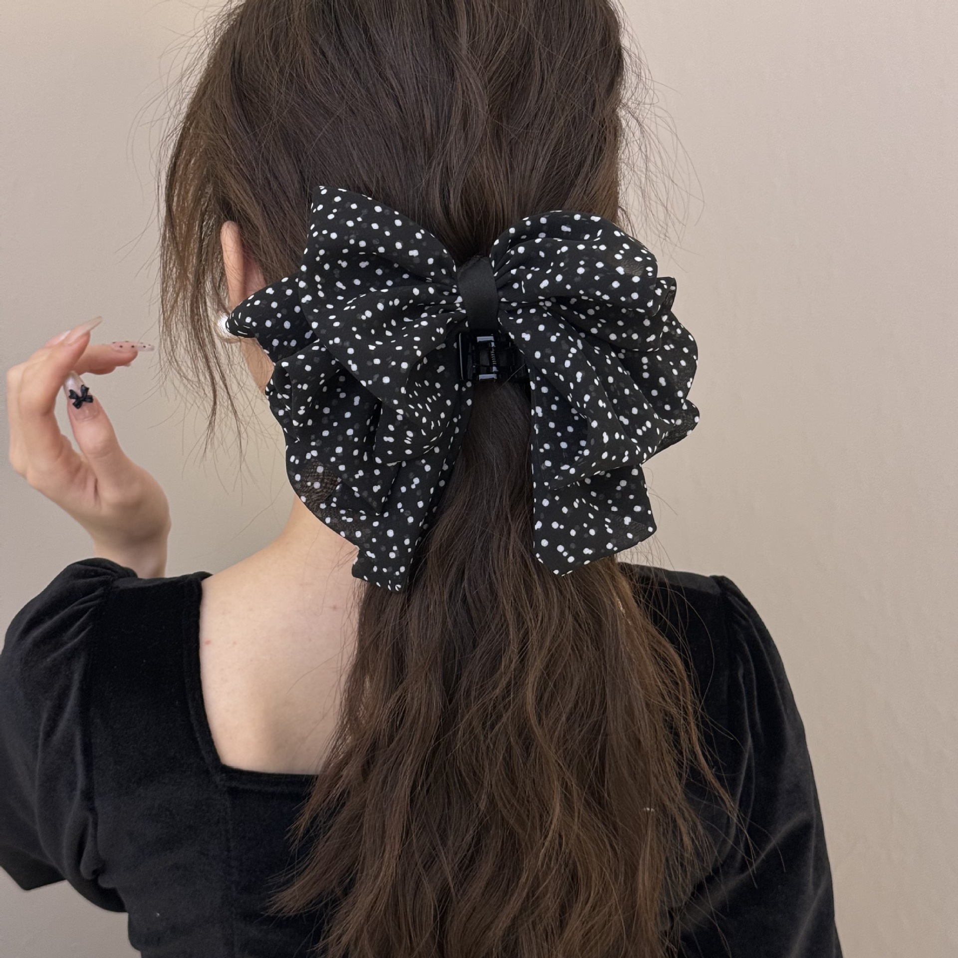 法式雪纺纱飘逸灵动黑白波点蝴蝶结马尾夹半扎发后脑勺鲨鱼夹抓夹