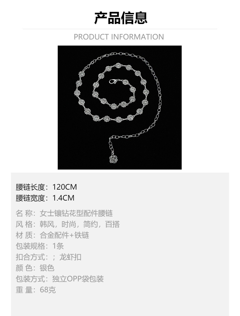 腰链女款高级感镶钻小花裤链女士时尚百搭连衣裙装饰金属腰链批发