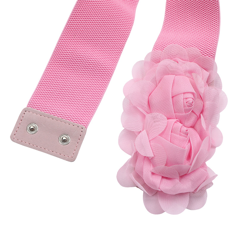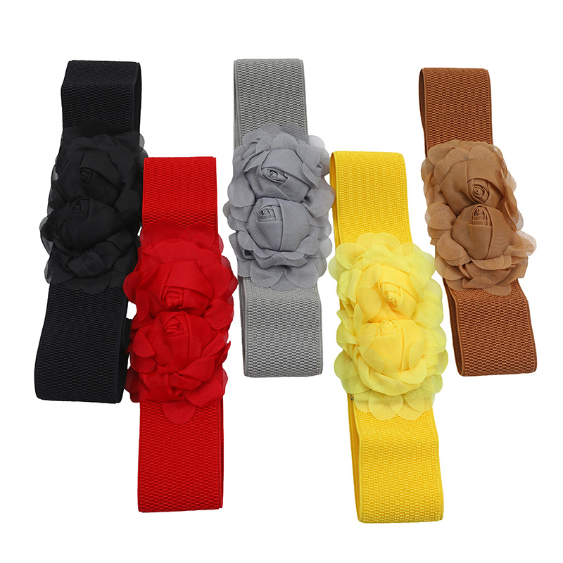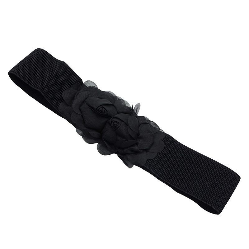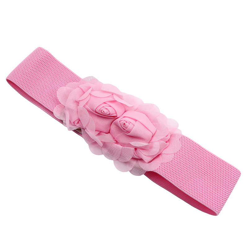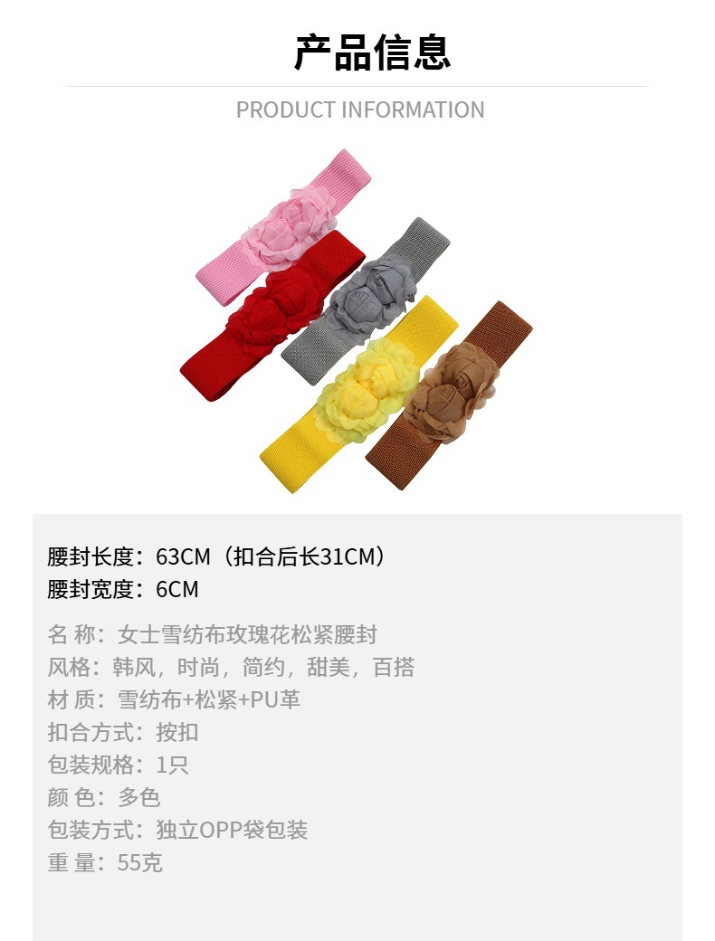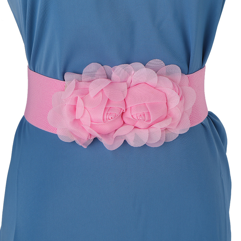 女士百搭装饰束腰外穿松紧腰封女简约时尚雪纺玫瑰花连衣裙宽腰带