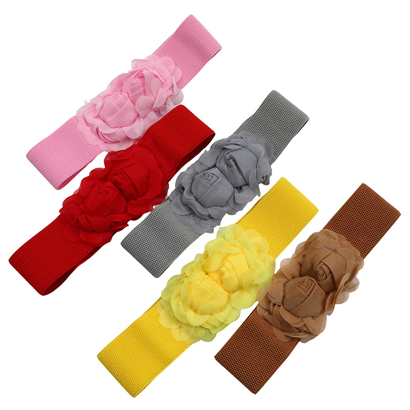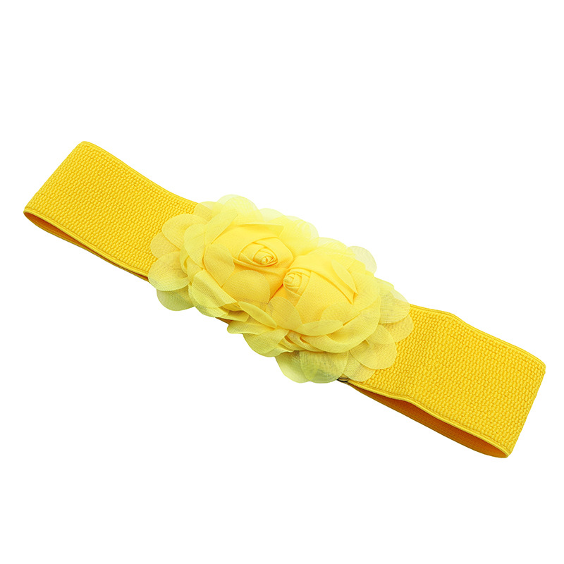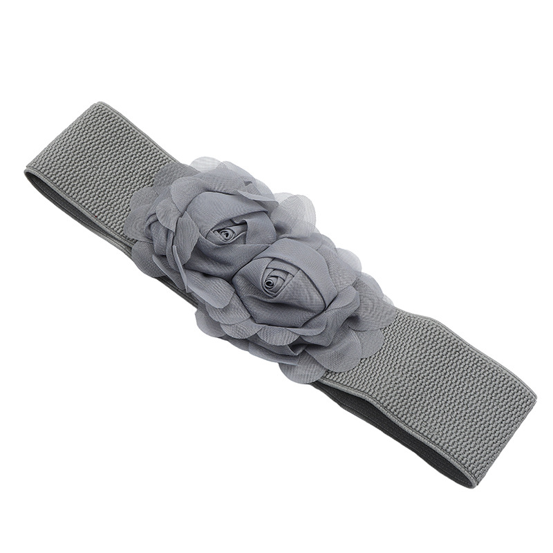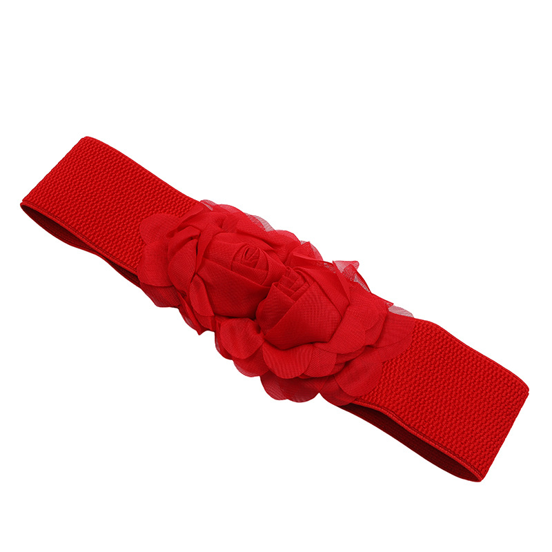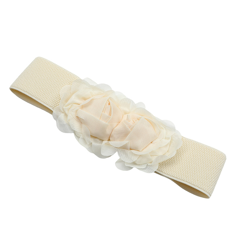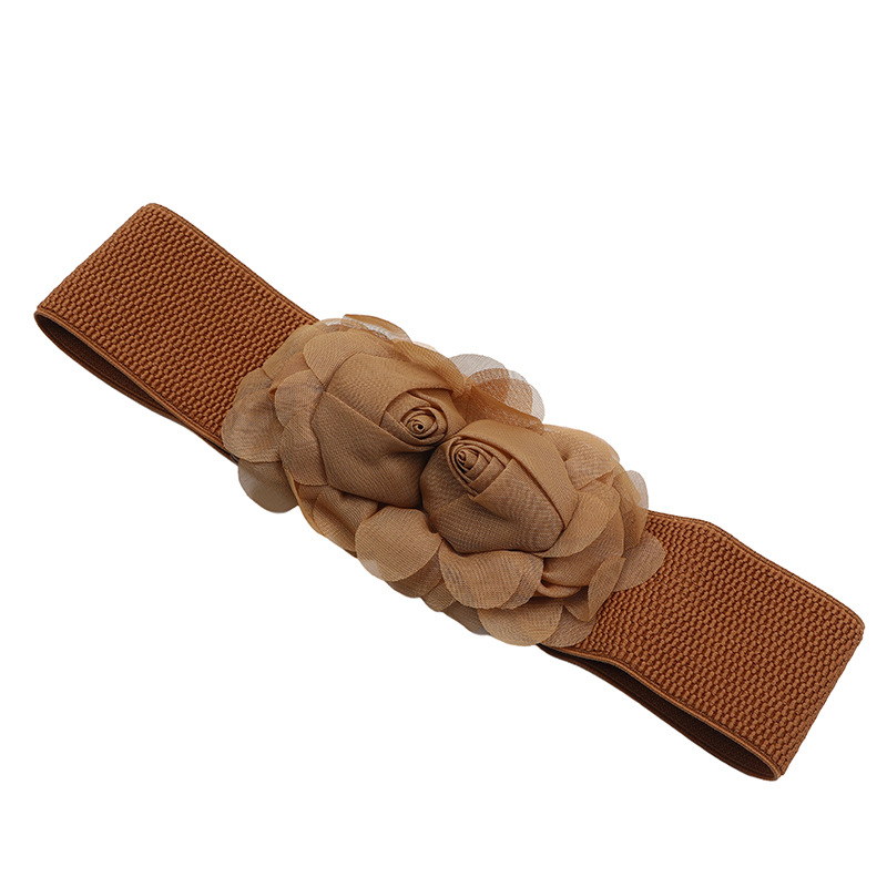 女士百搭装饰束腰外穿松紧腰封女简约时尚雪纺玫瑰花连衣裙宽腰带