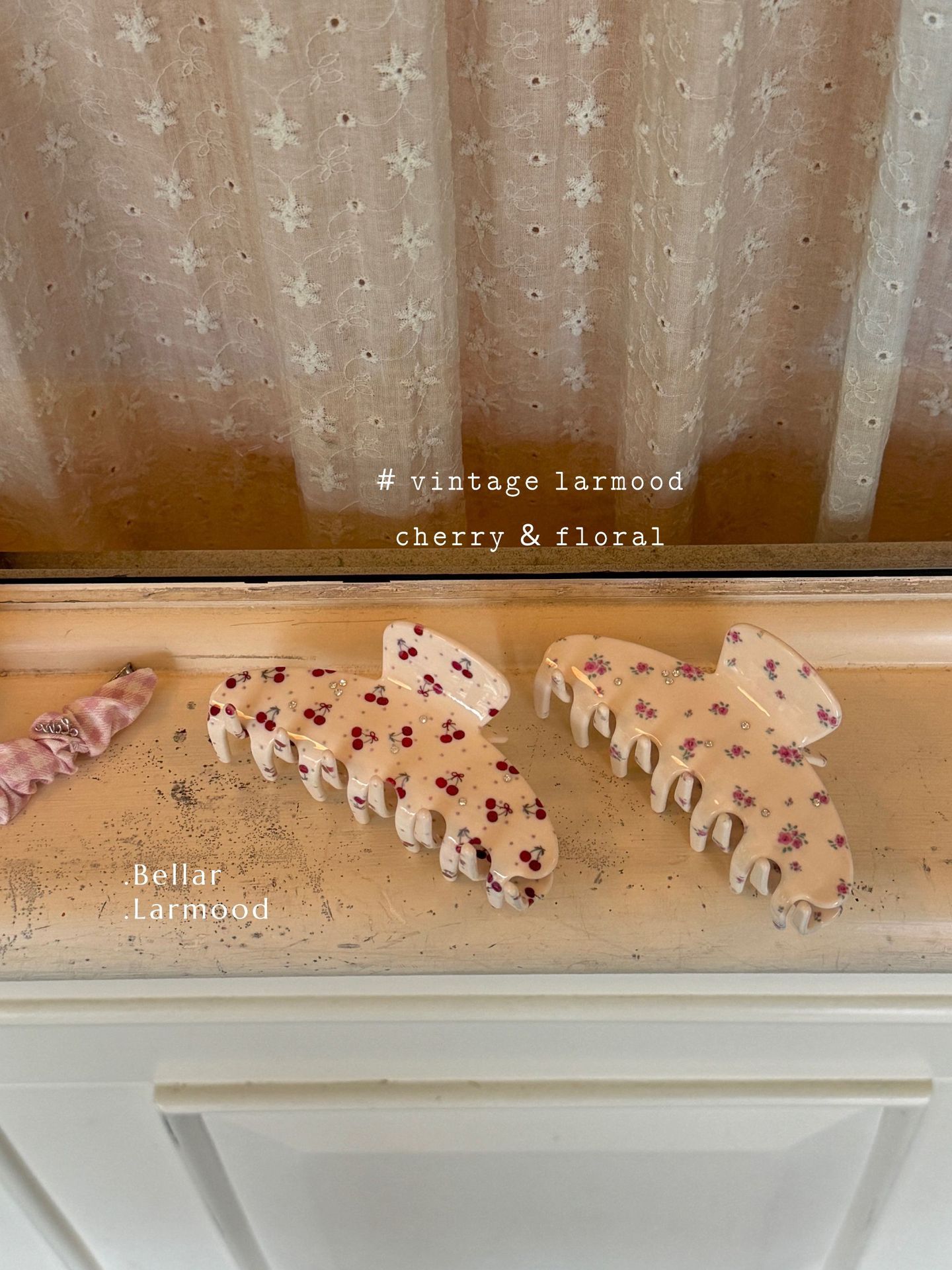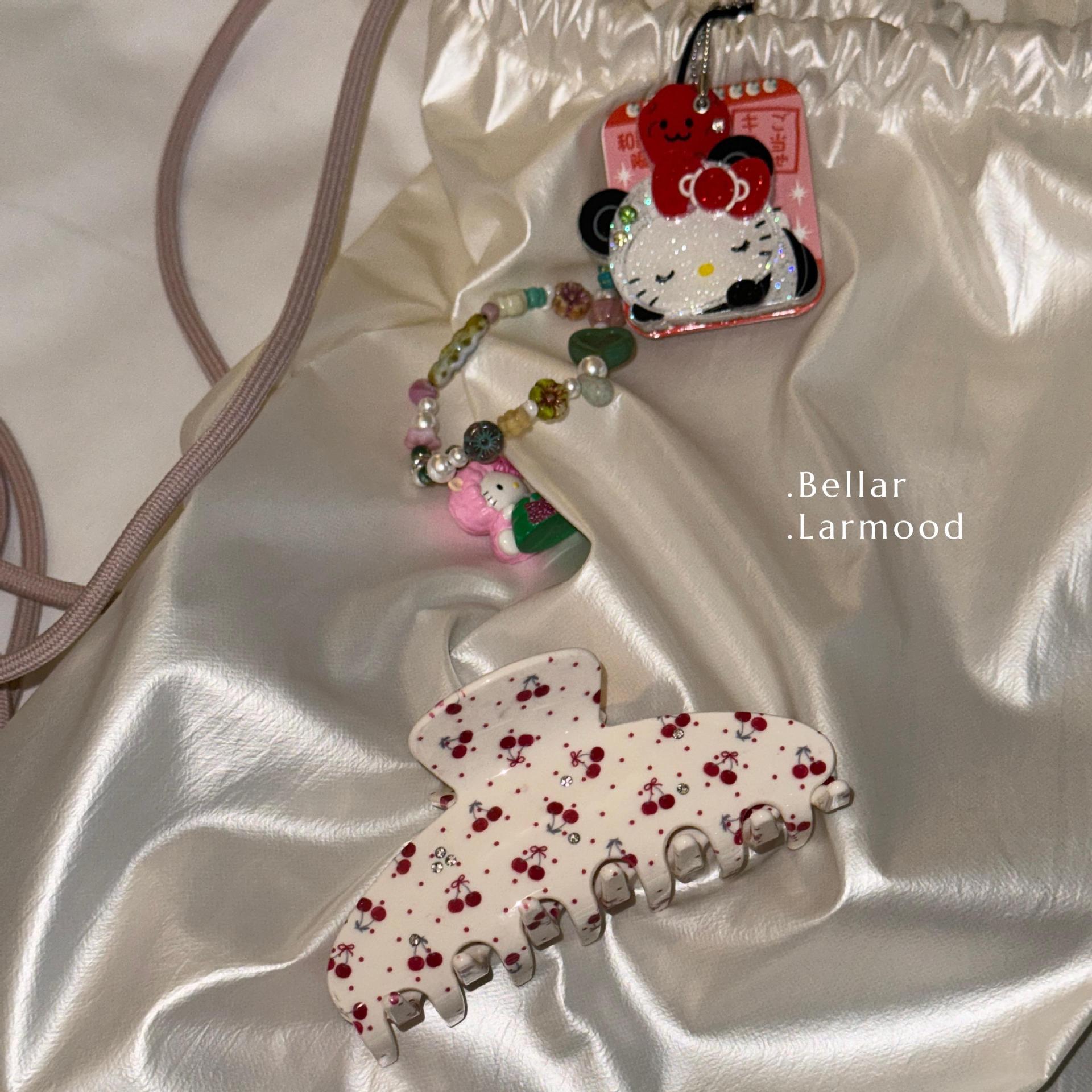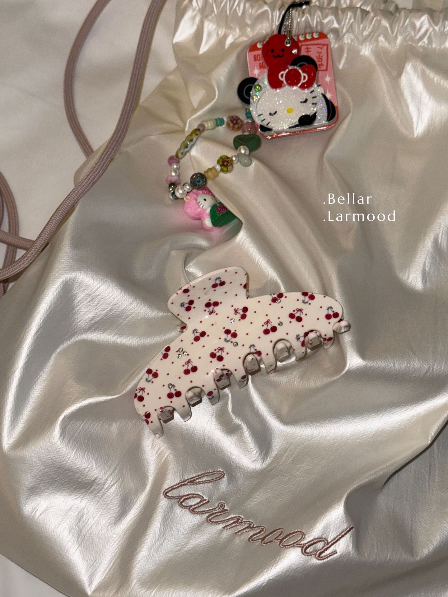 原创设计复古碎花樱桃镶钻抓夹韩系后脑勺盘发鲨鱼夹子头饰女新款