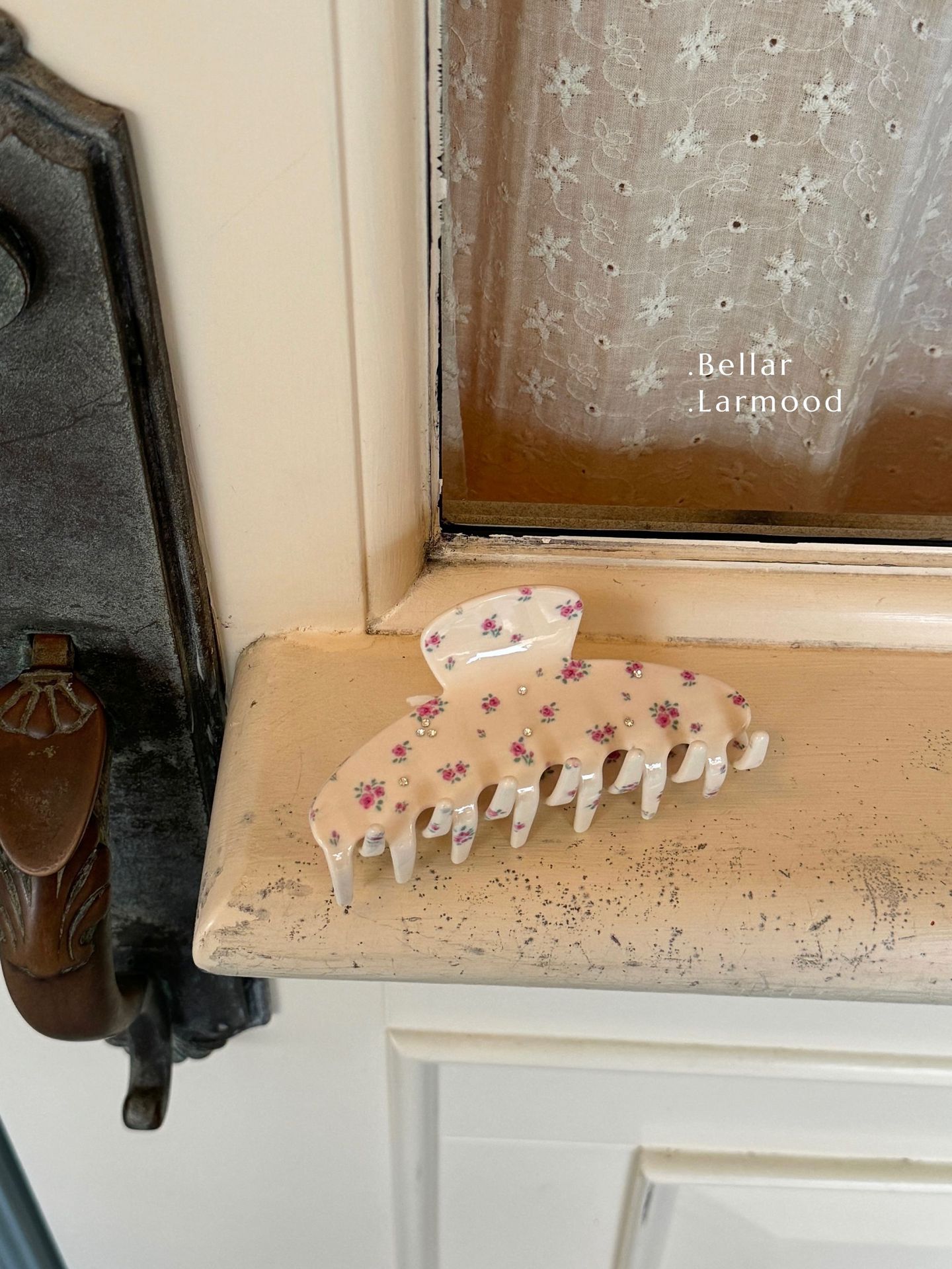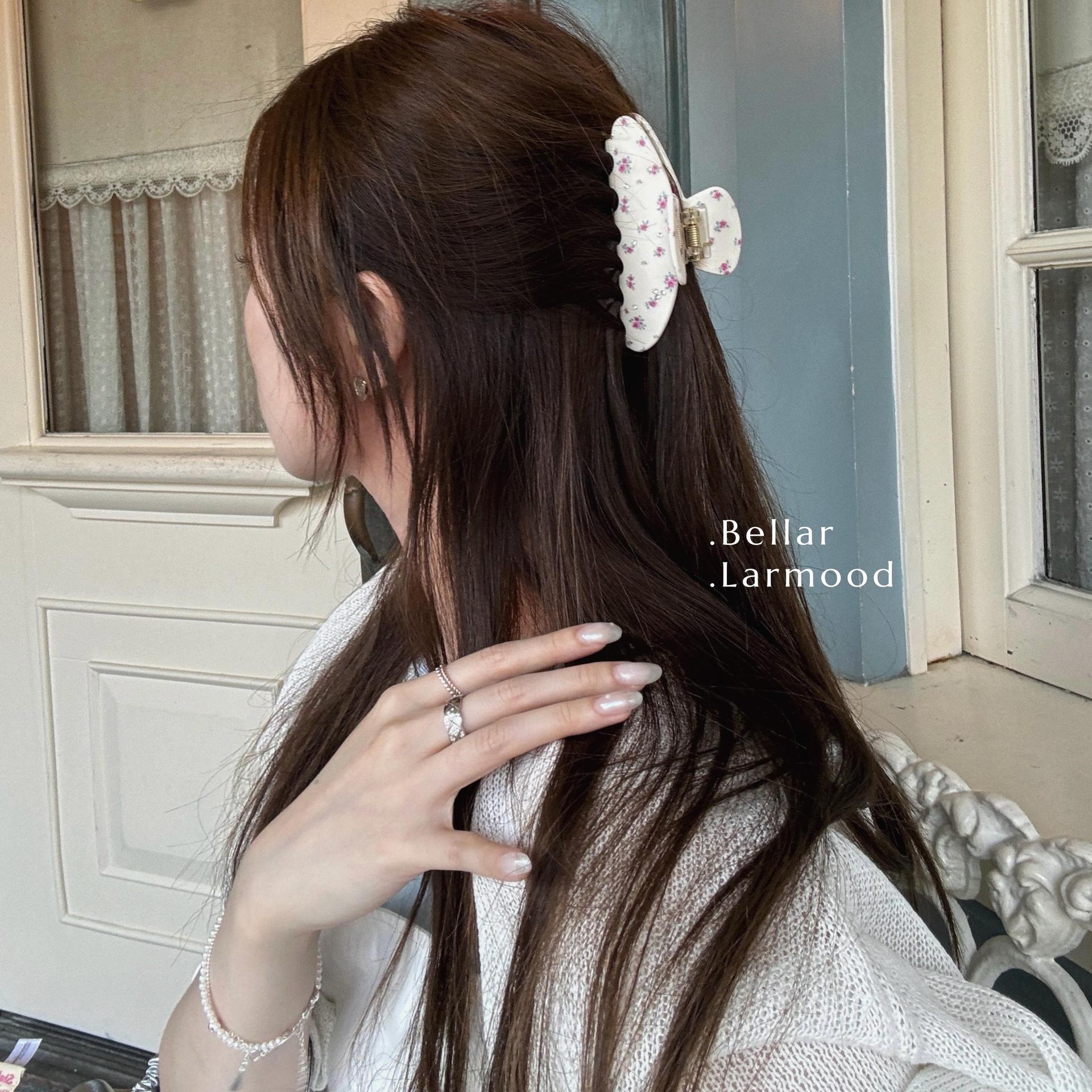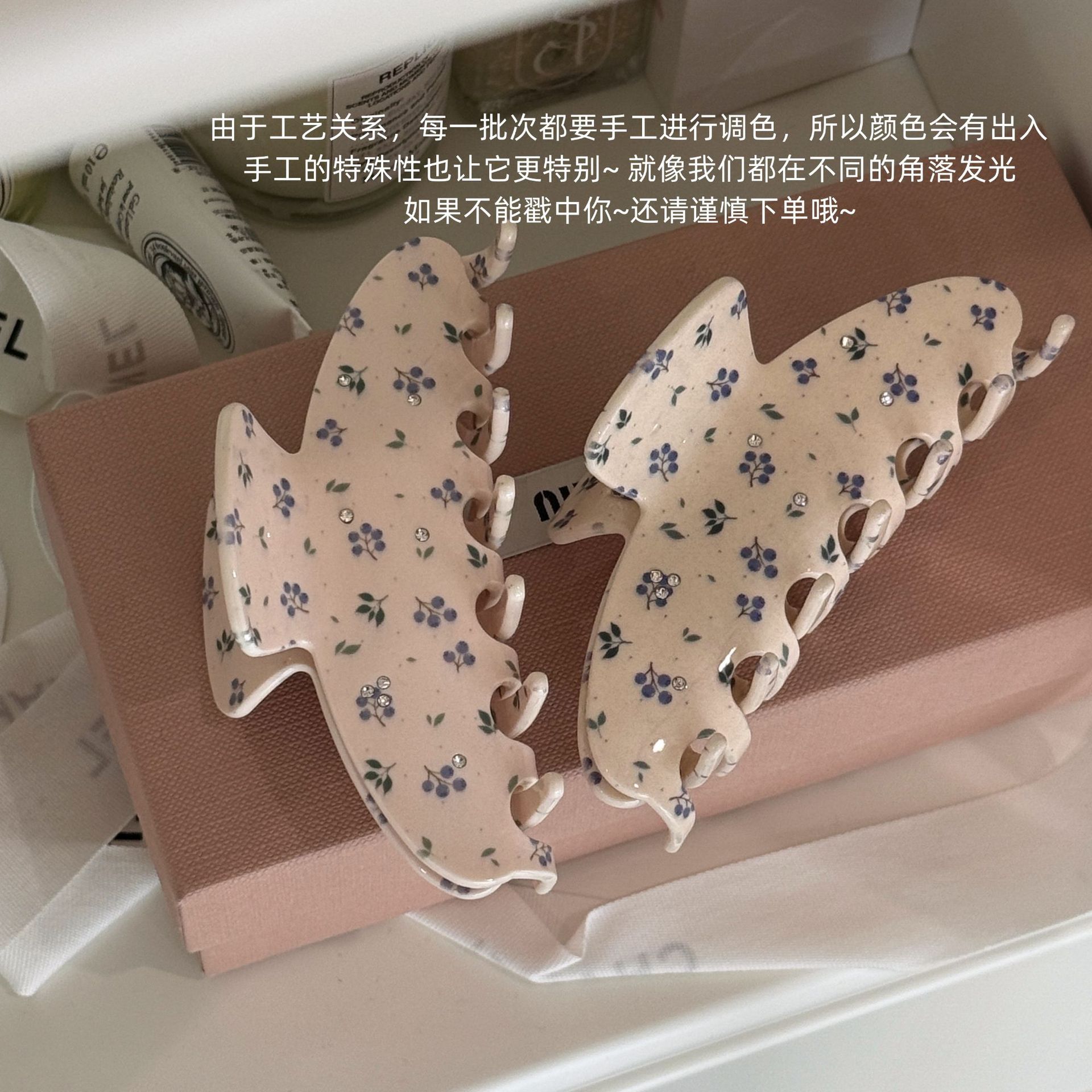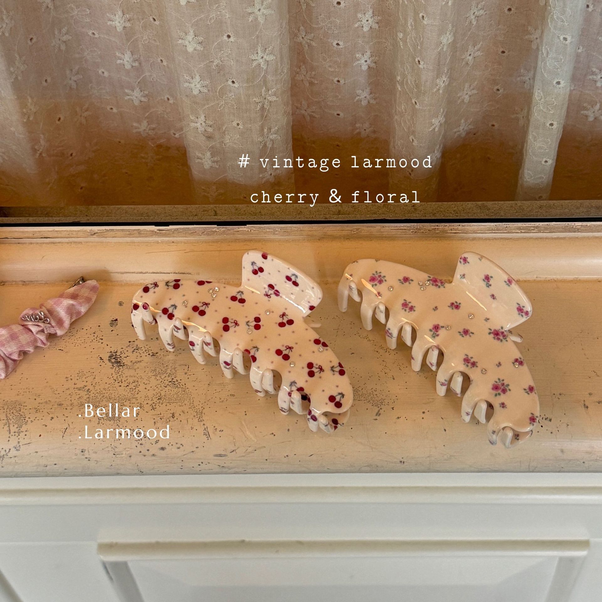 原创设计复古碎花樱桃镶钻抓夹韩系后脑勺盘发鲨鱼夹子头饰女新款