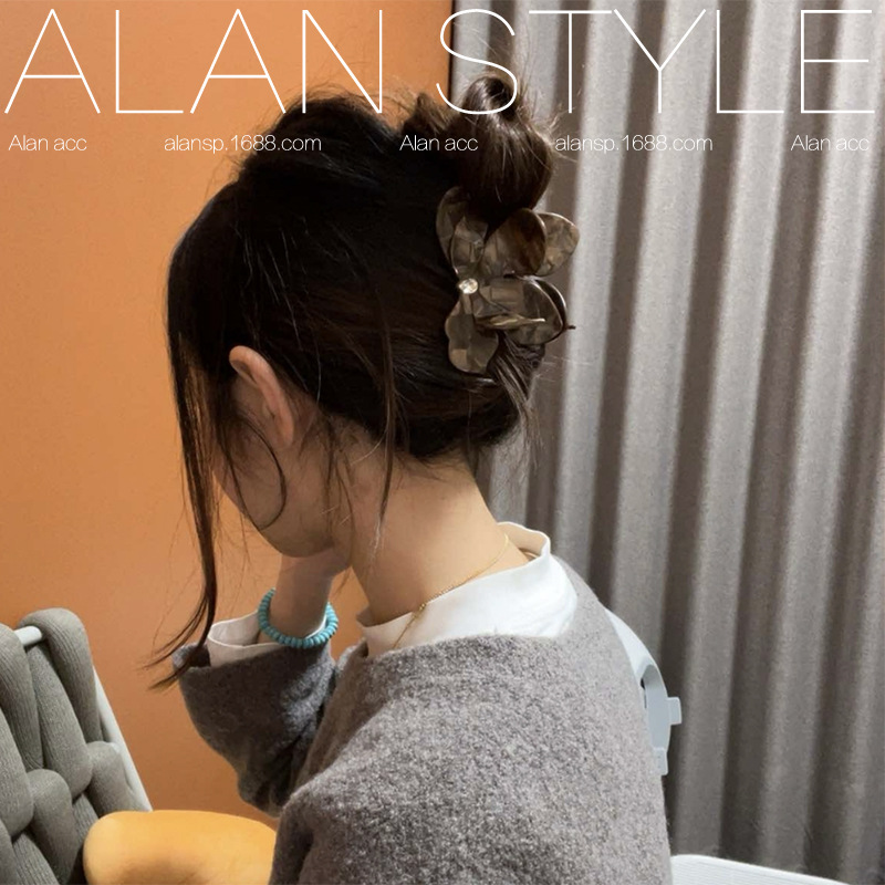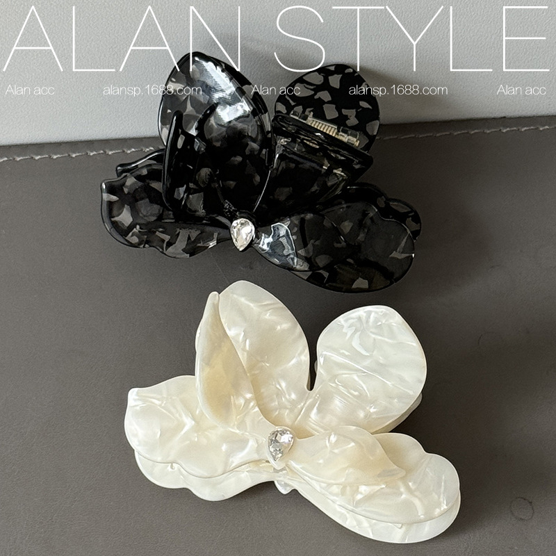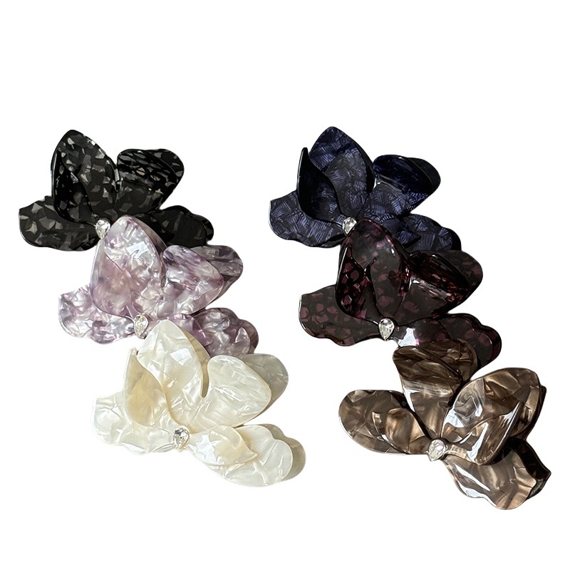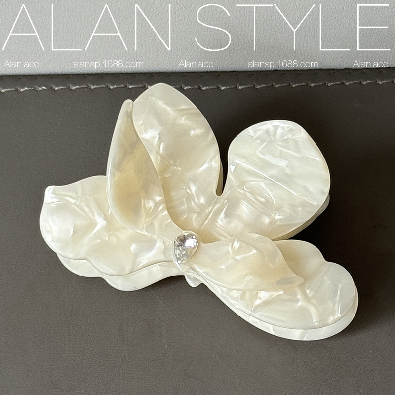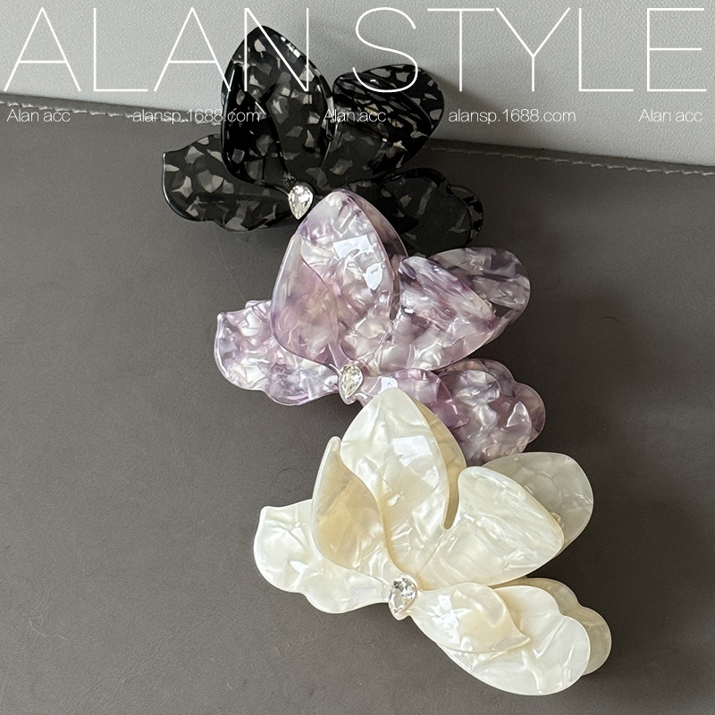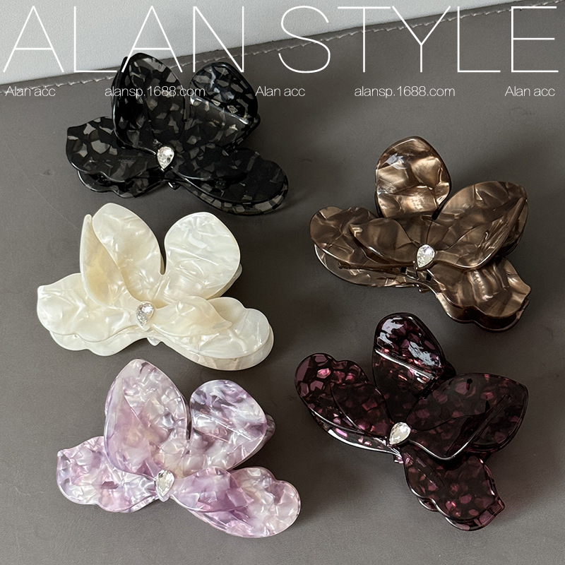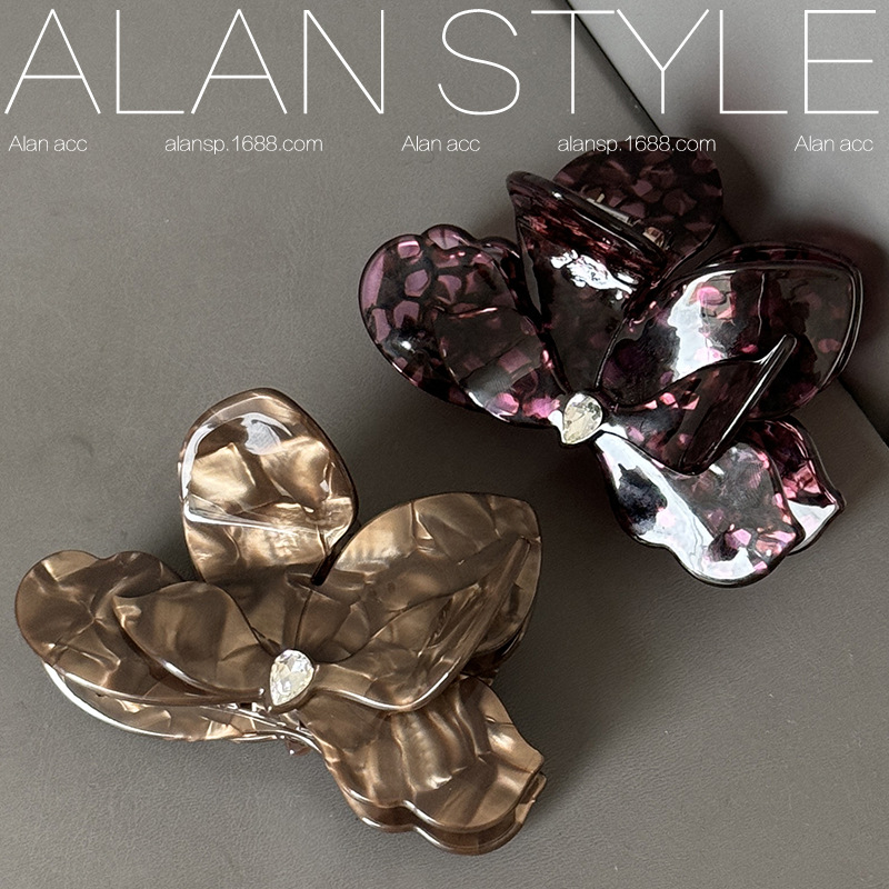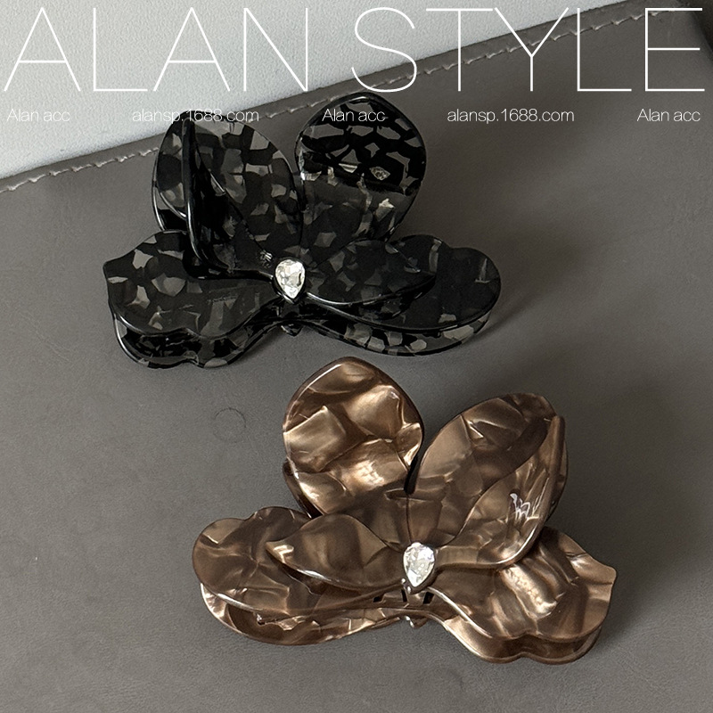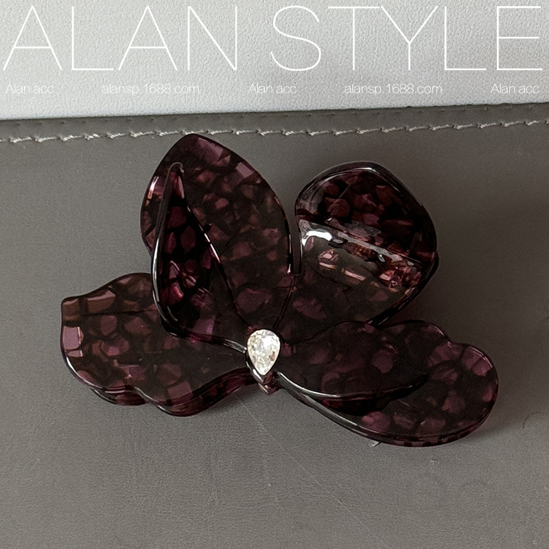 阿斓轻奢明星款三角梅立体醋酸抓夹网红精致带钻气质发夹女鲨鱼夹