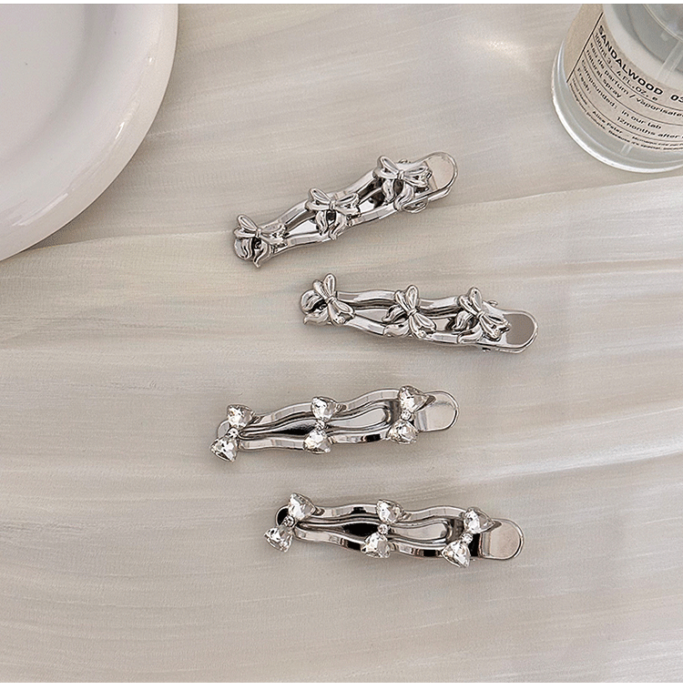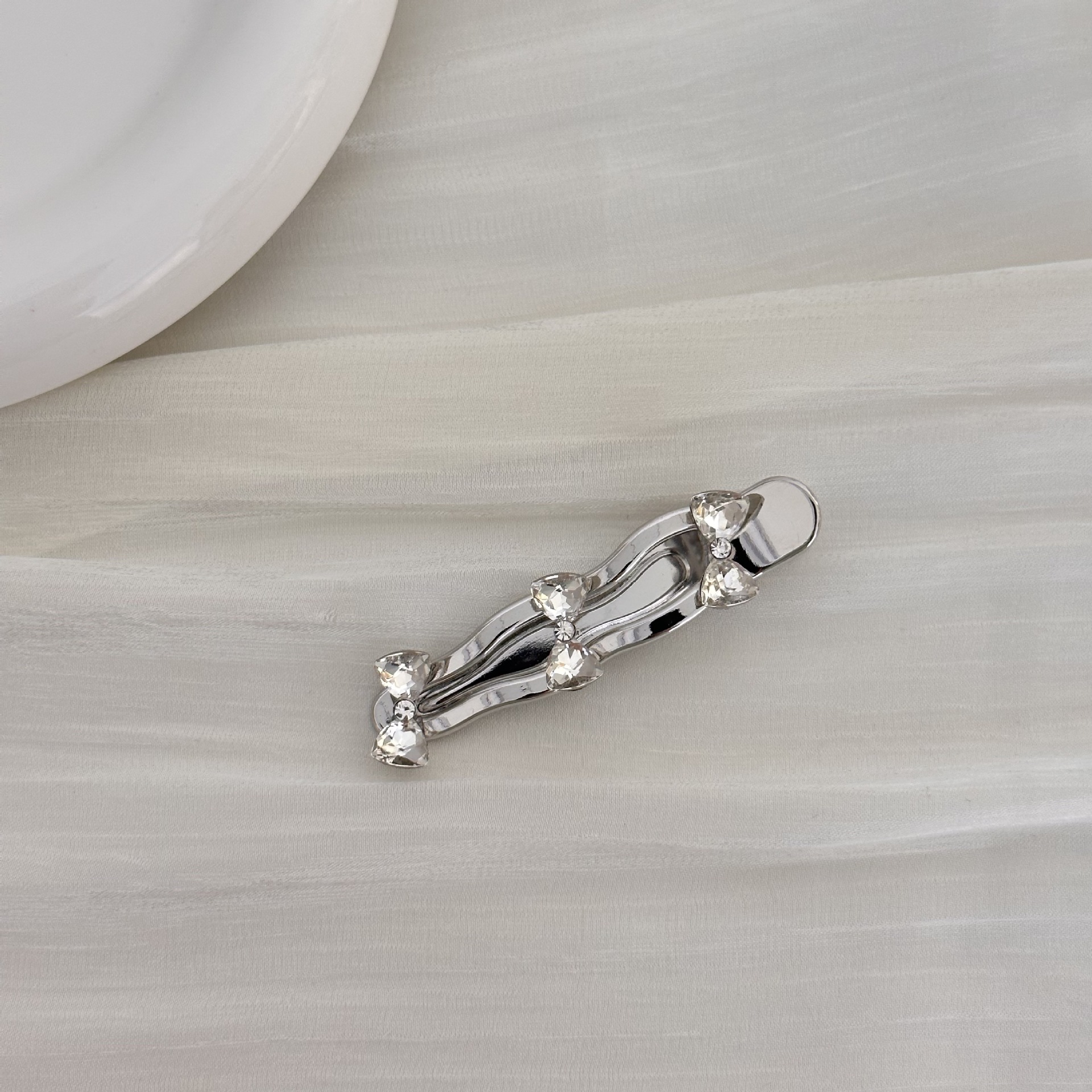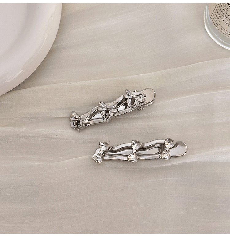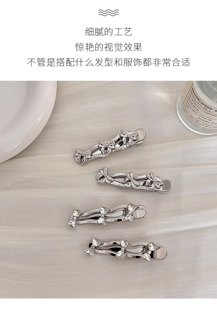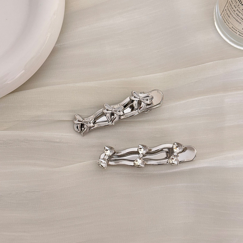 辣妹风银色金属发夹甜酷水钻2024新款蝴蝶结小众边夹侧边刘海发夹