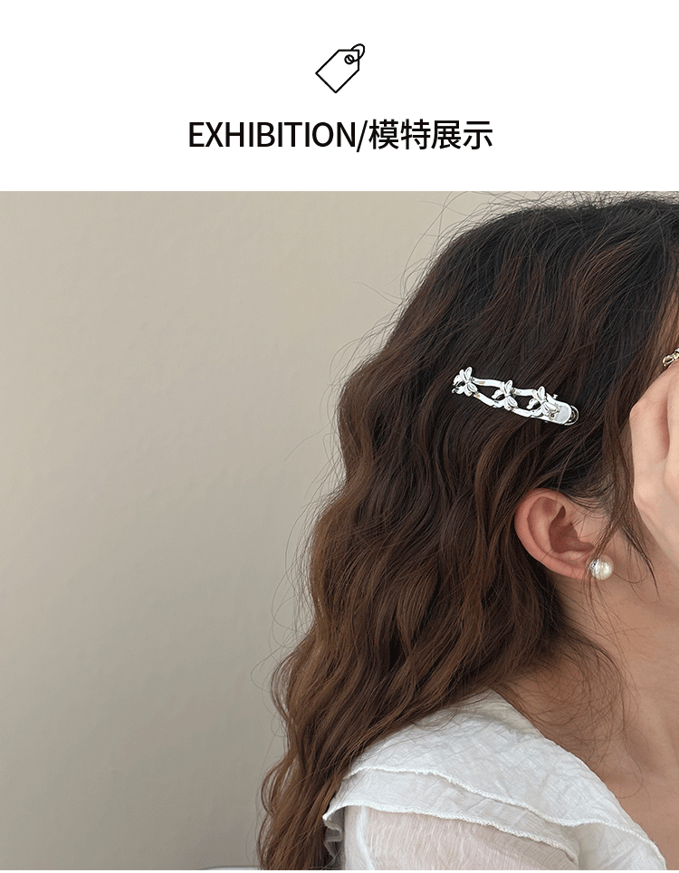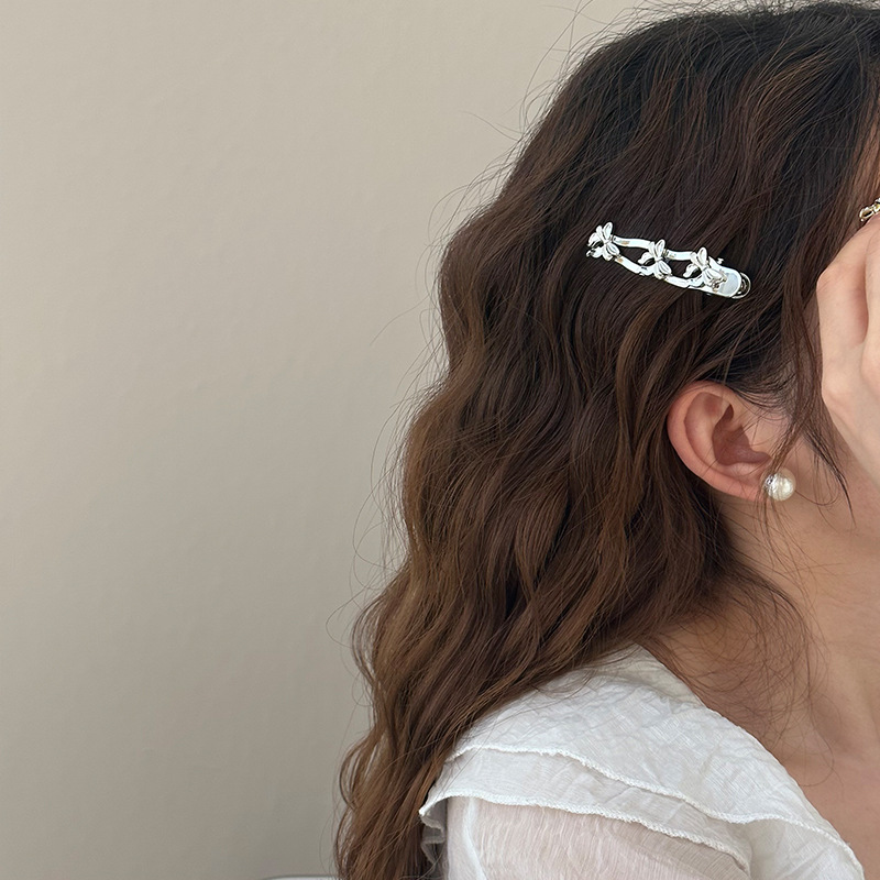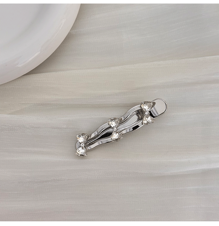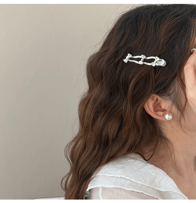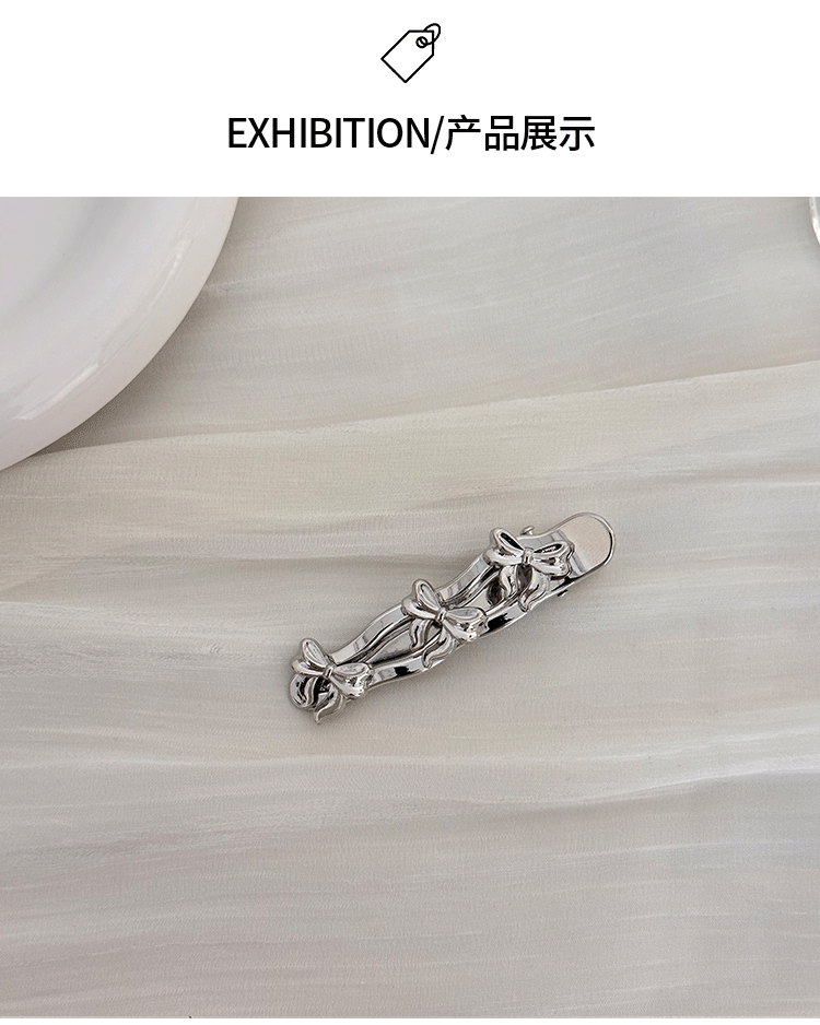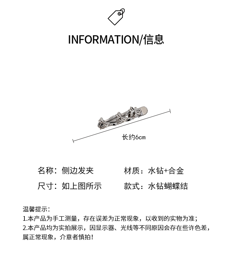 辣妹风银色金属发夹甜酷水钻2024新款蝴蝶结小众边夹侧边刘海发夹