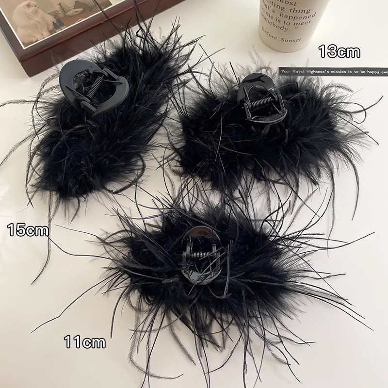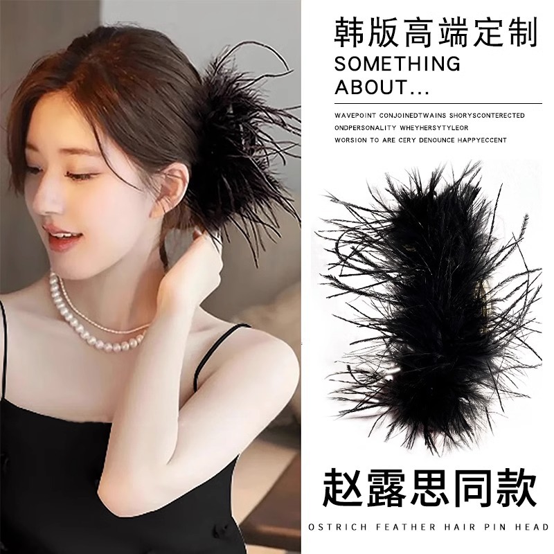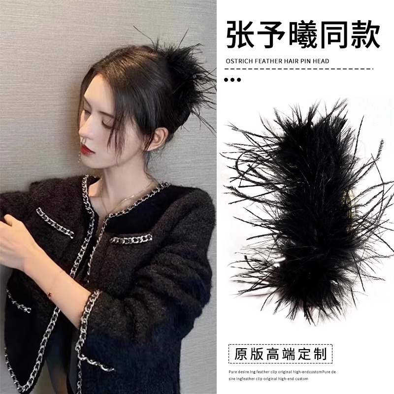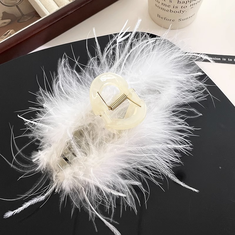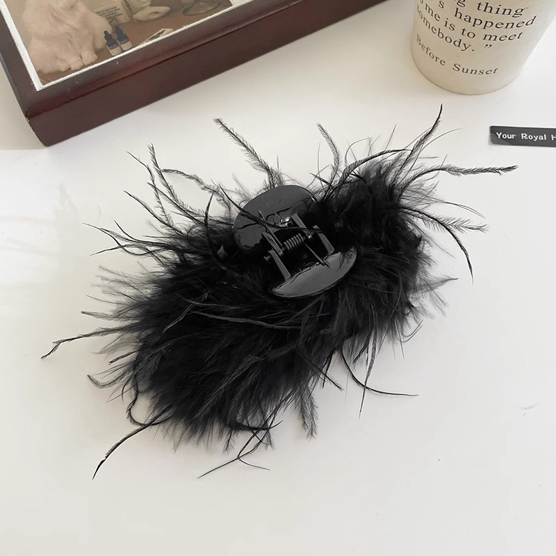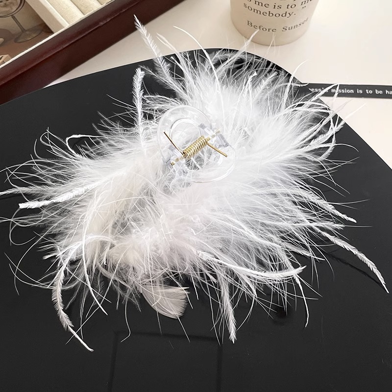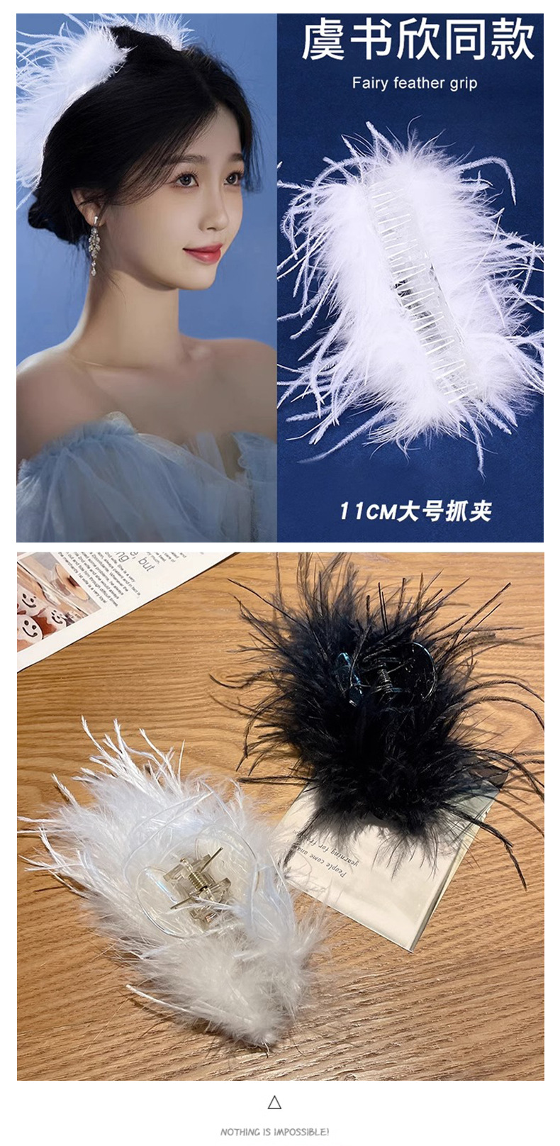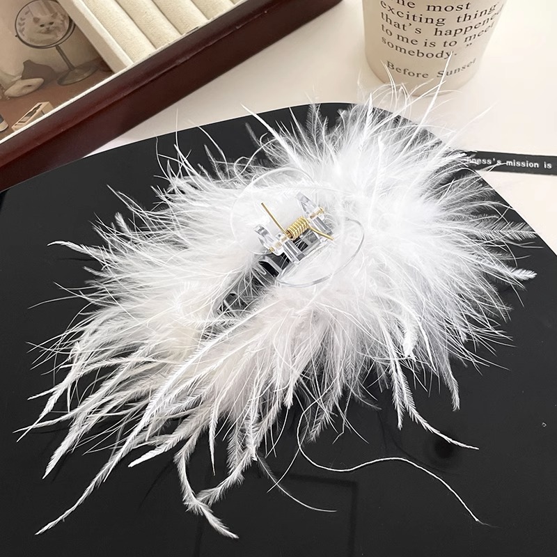 超仙夹子头饰鲨鱼夹ins风羽毛抓夹女高级感鸵鸟毛发夹后脑勺发卡