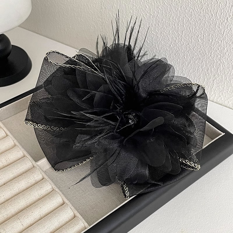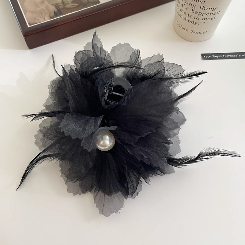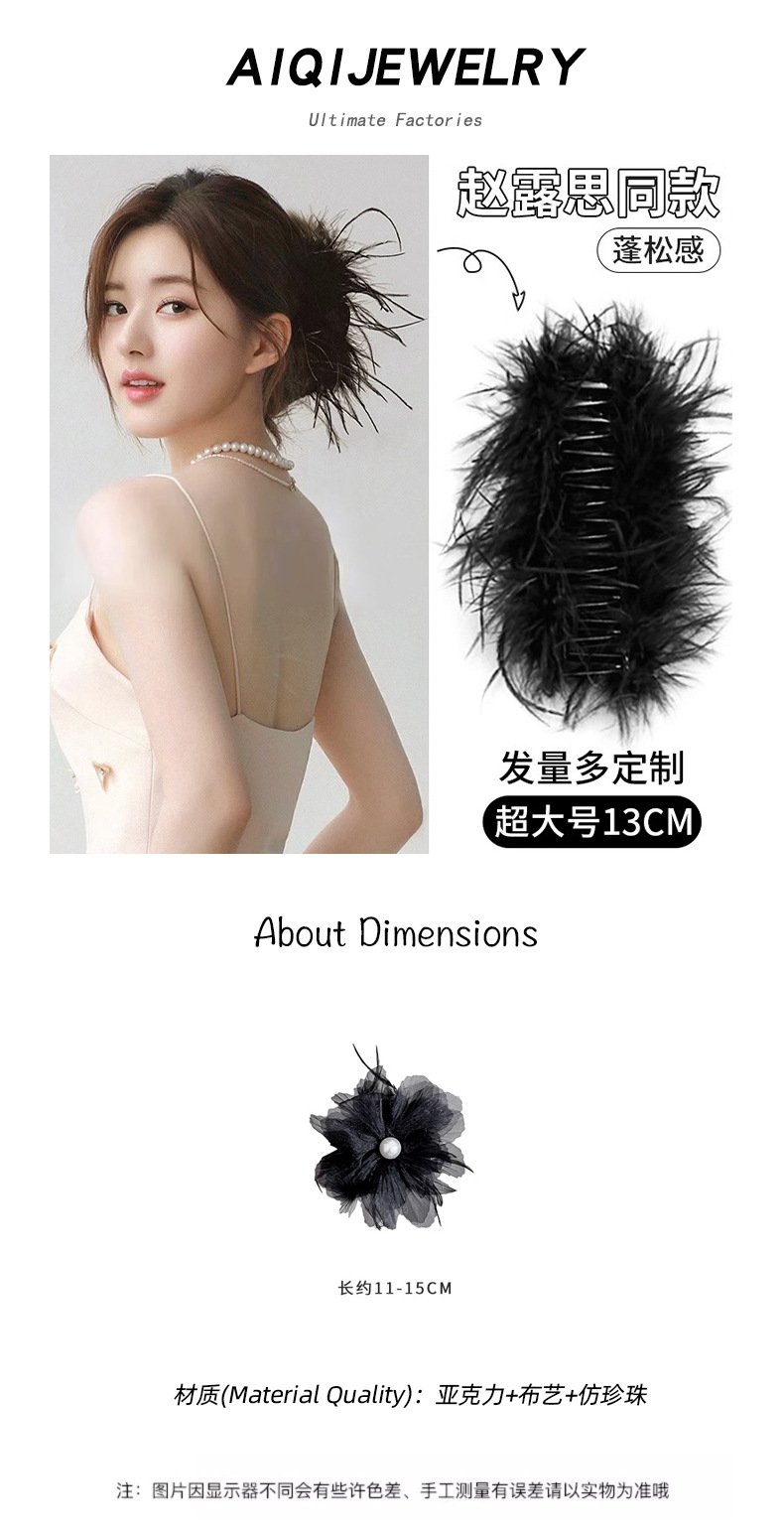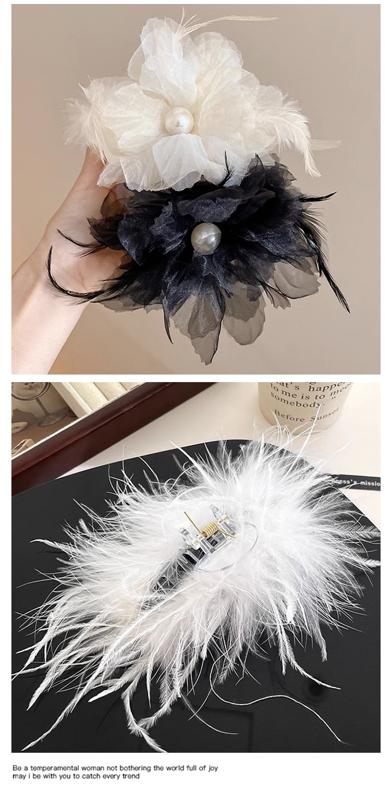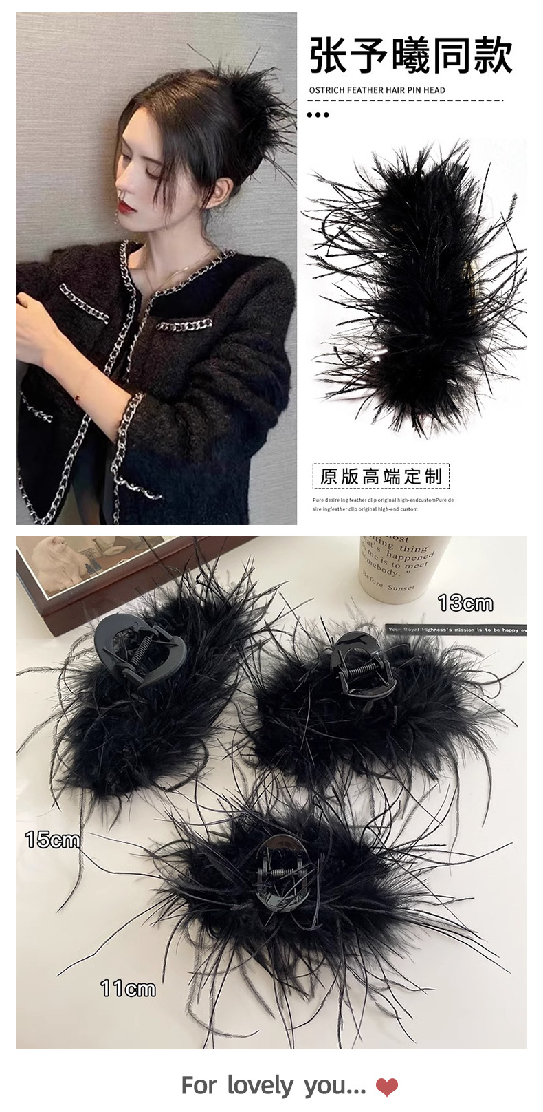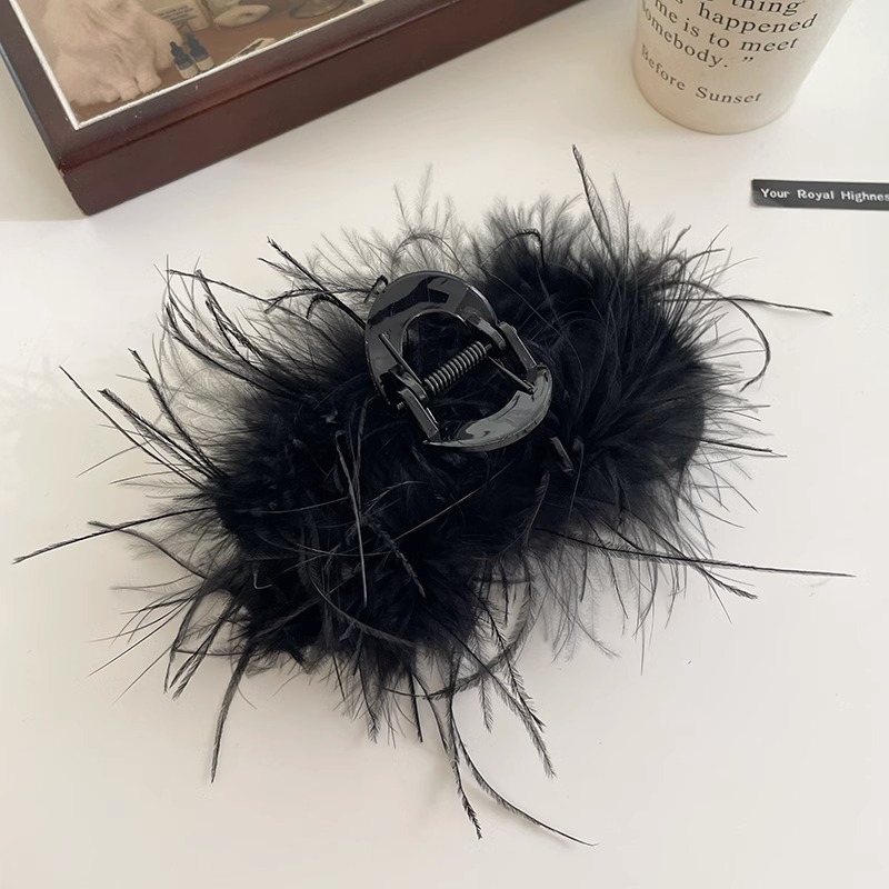 超仙夹子头饰鲨鱼夹ins风羽毛抓夹女高级感鸵鸟毛发夹后脑勺发卡