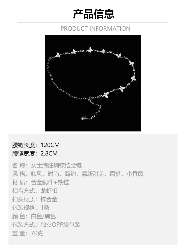 新款蝴蝶配件金属腰链女士高级感腰带配饰时尚百搭女裙装饰腰裤链