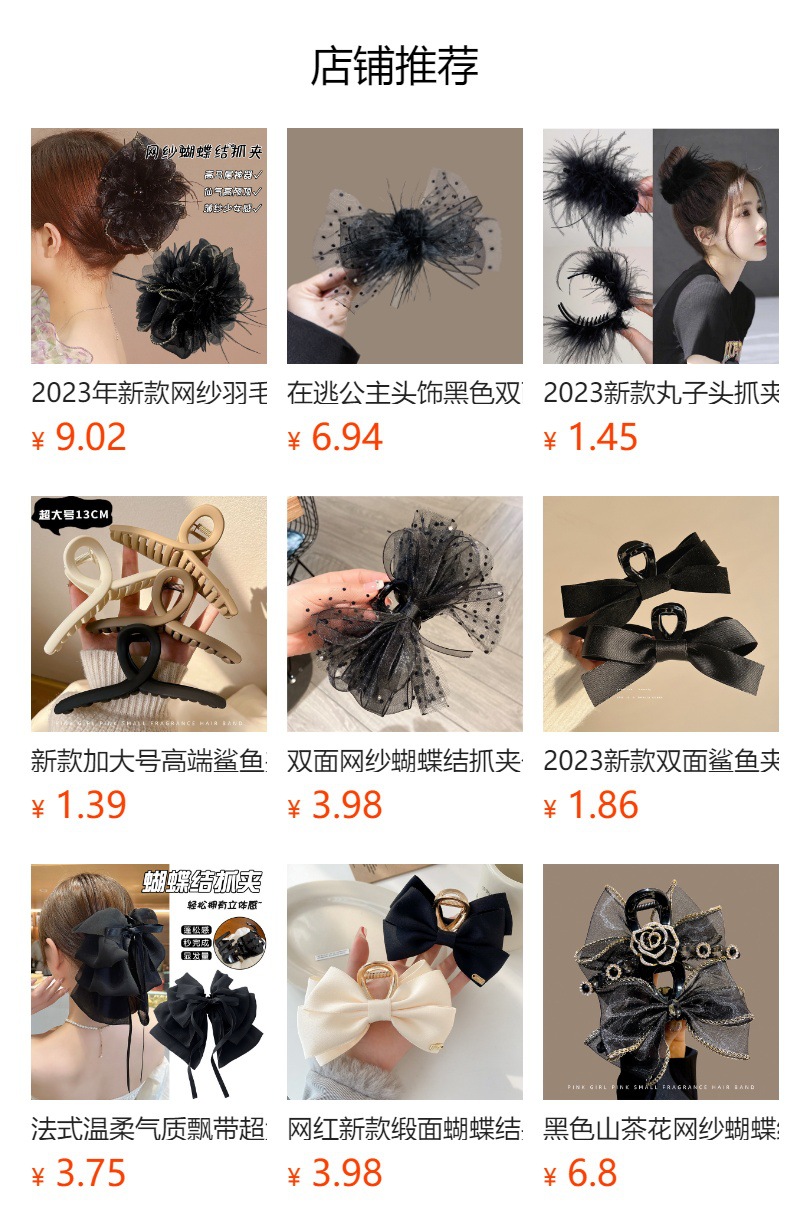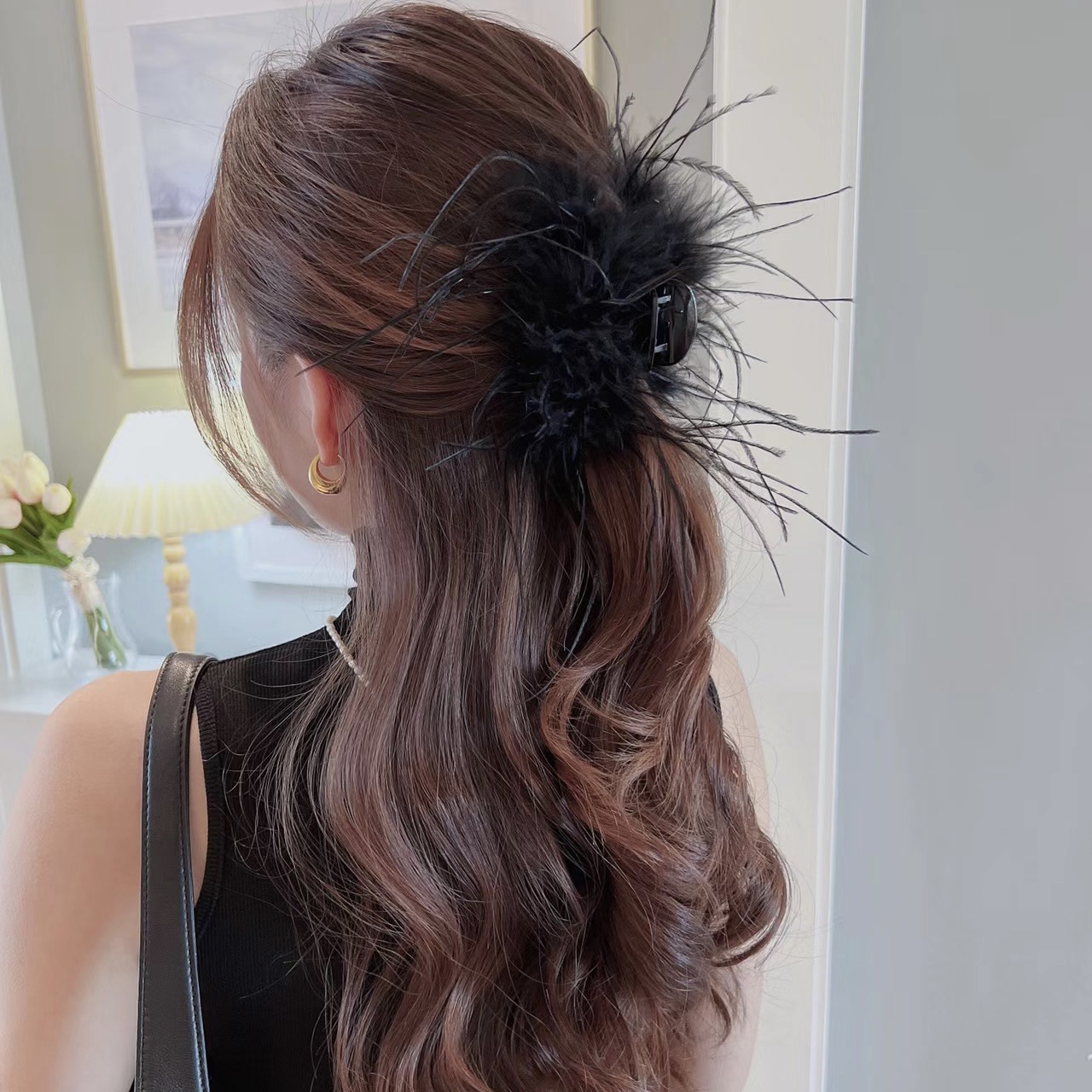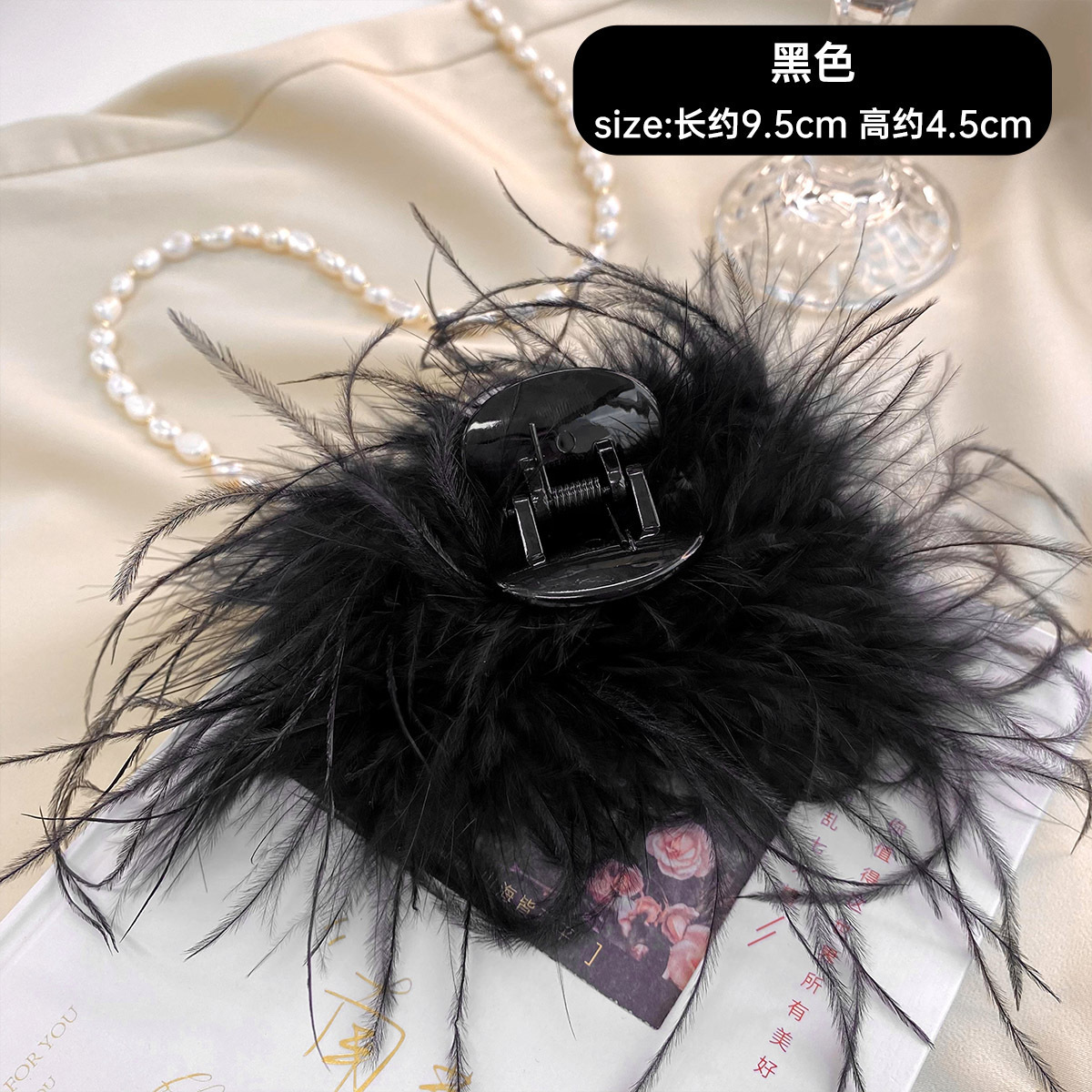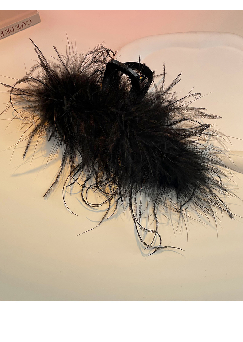 羽毛抓夹毛毛发夹女后脑勺夹子黑色鸵鸟毛头饰鸡毛高级感鲨鱼夹