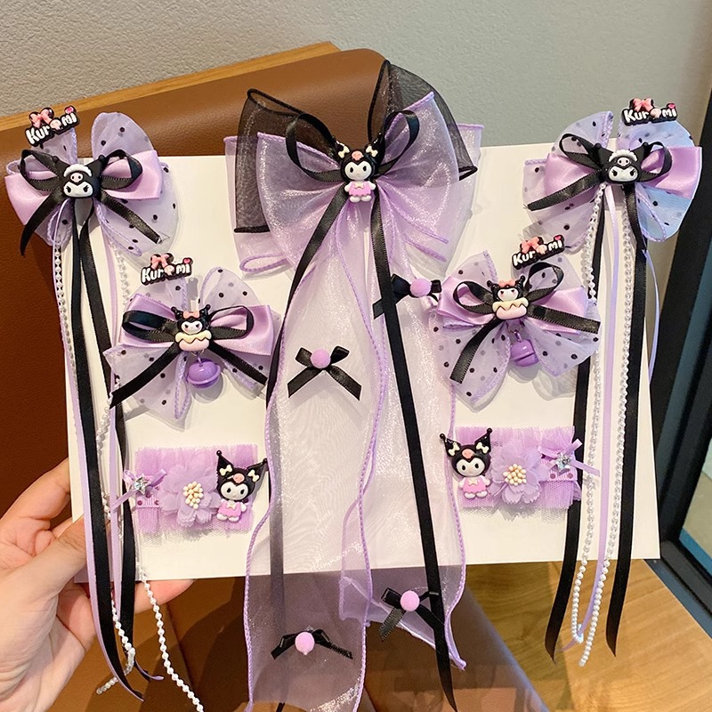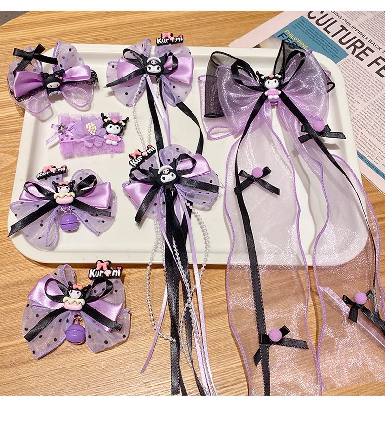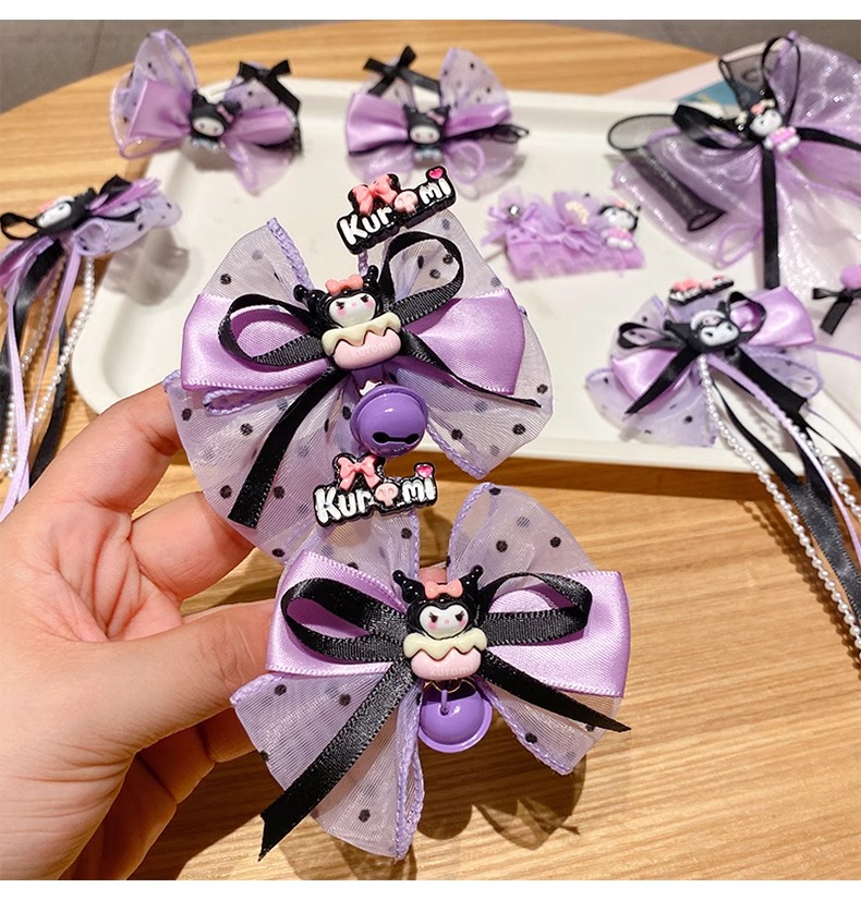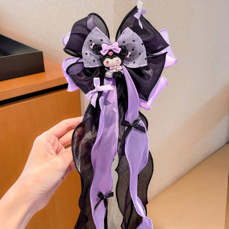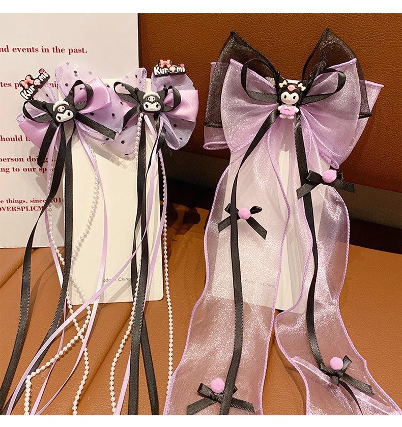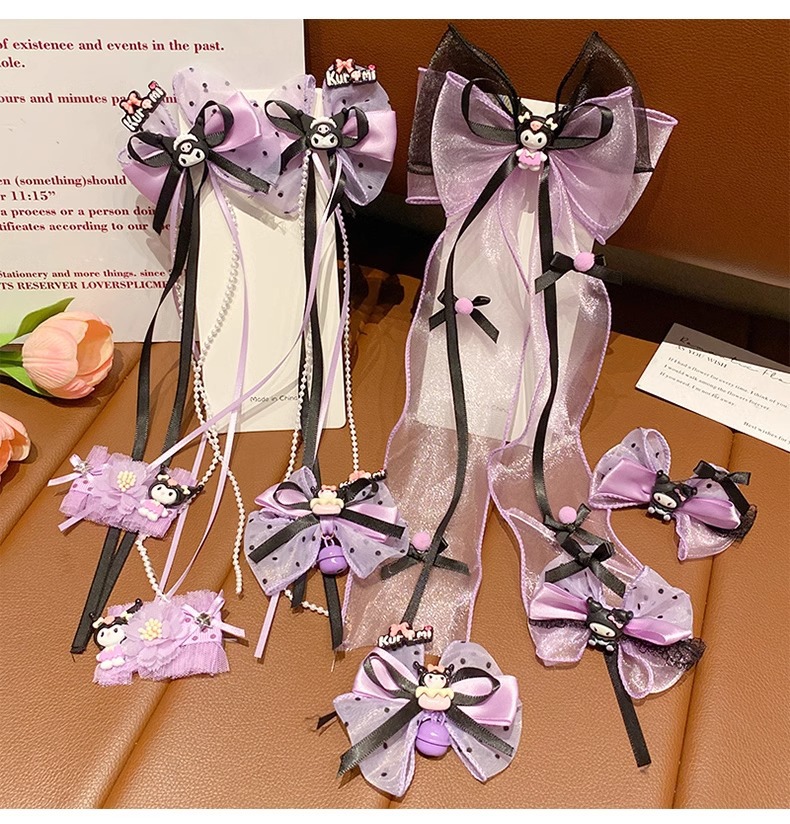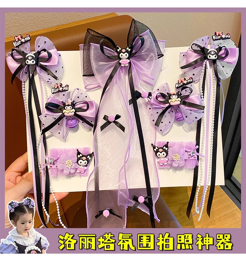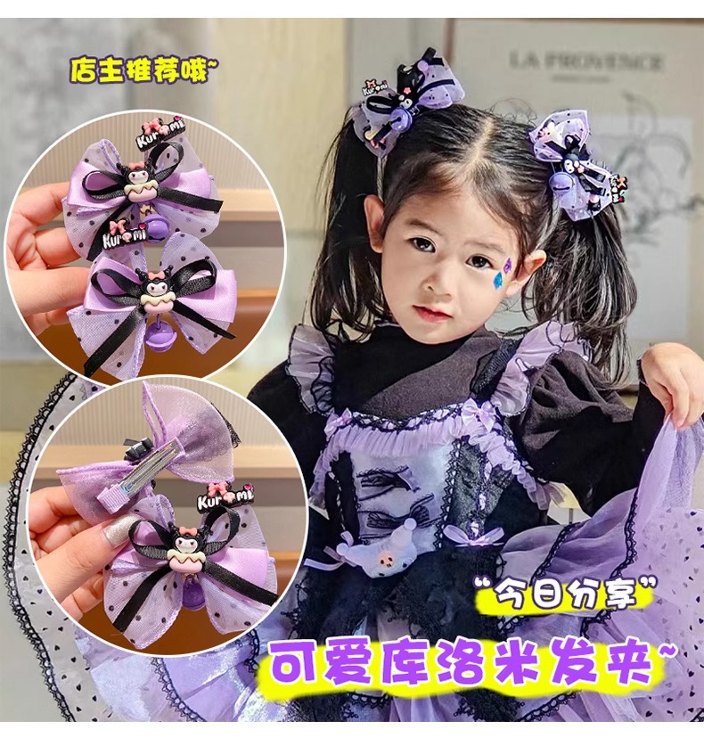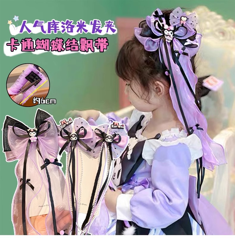 库洛米卡通发夹2024新款蝴蝶结飘带流苏发卡头饰可爱女童碎发侧边