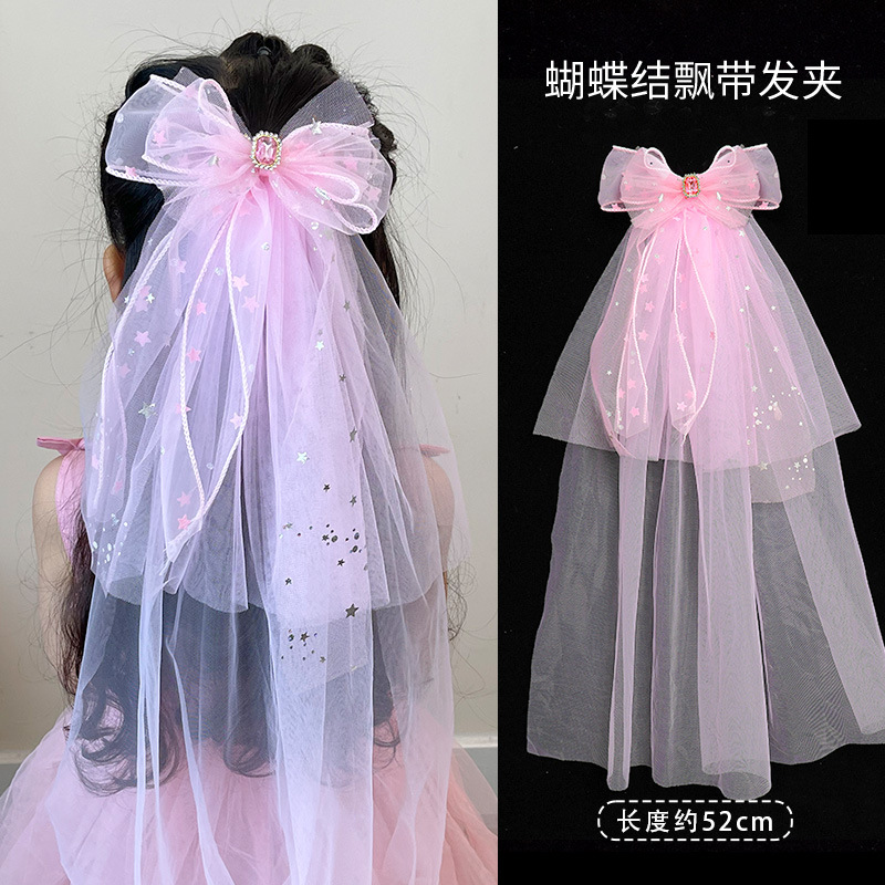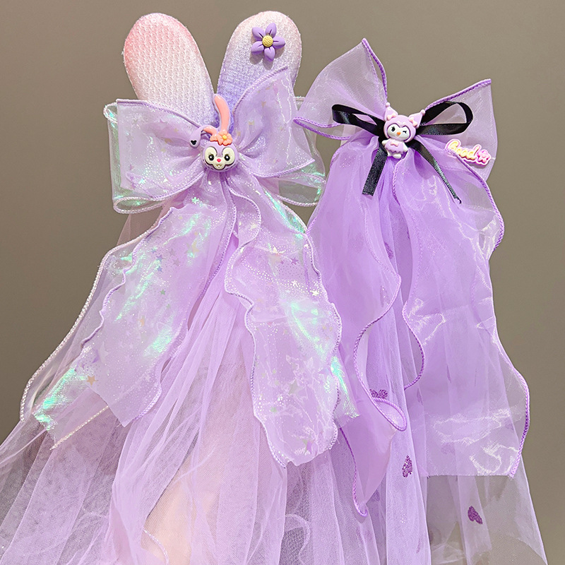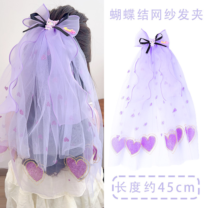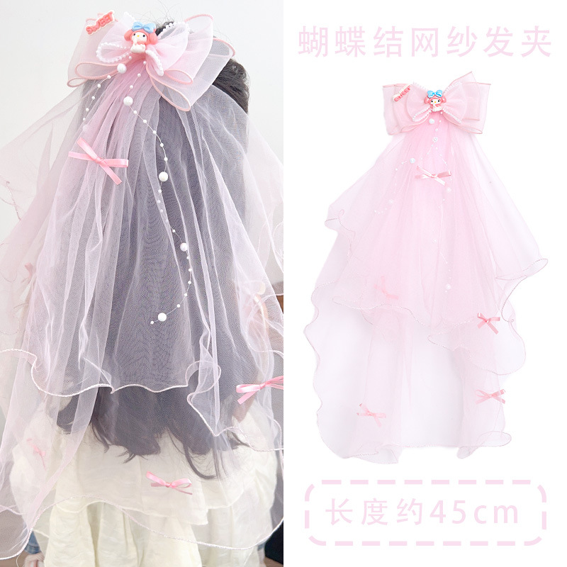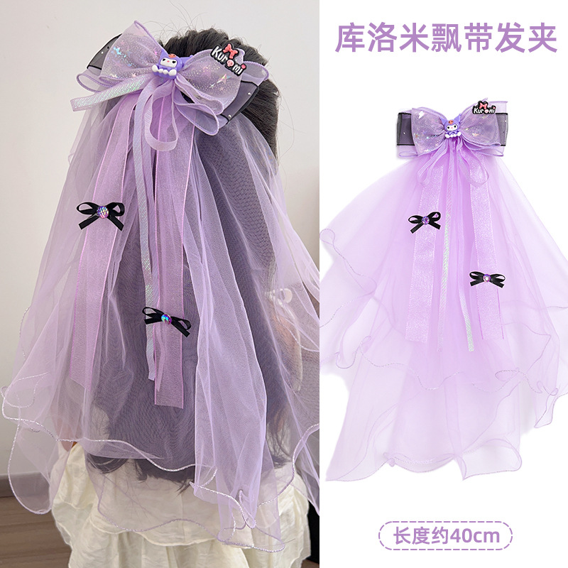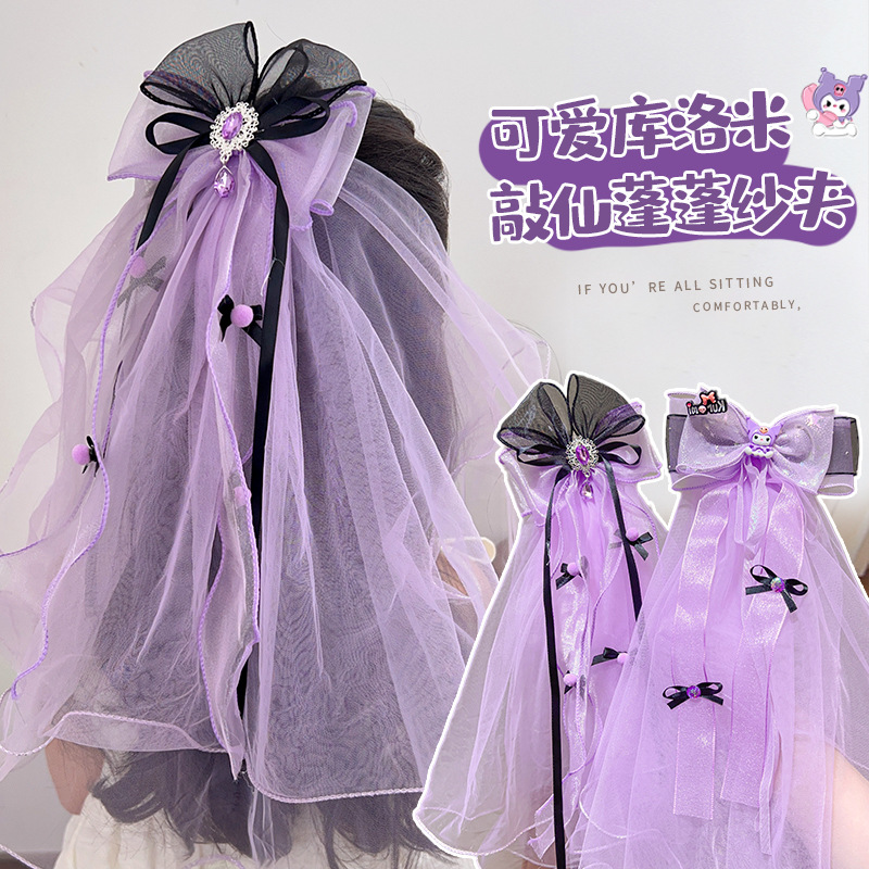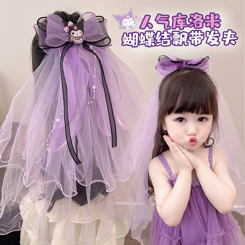 库洛米儿童蝴蝶结头纱头饰超仙女童网纱发夹小女孩公主发夹发饰新