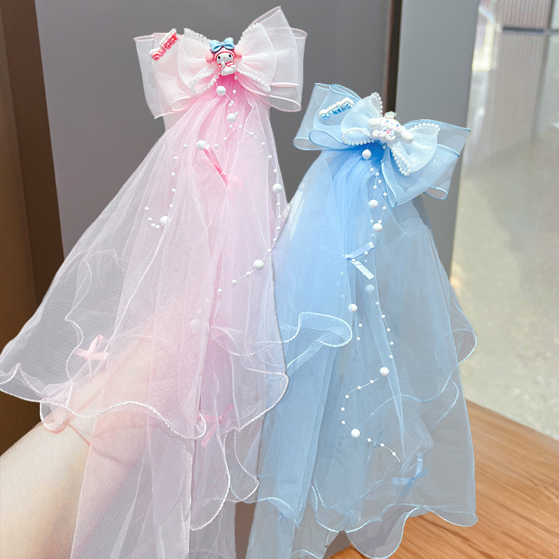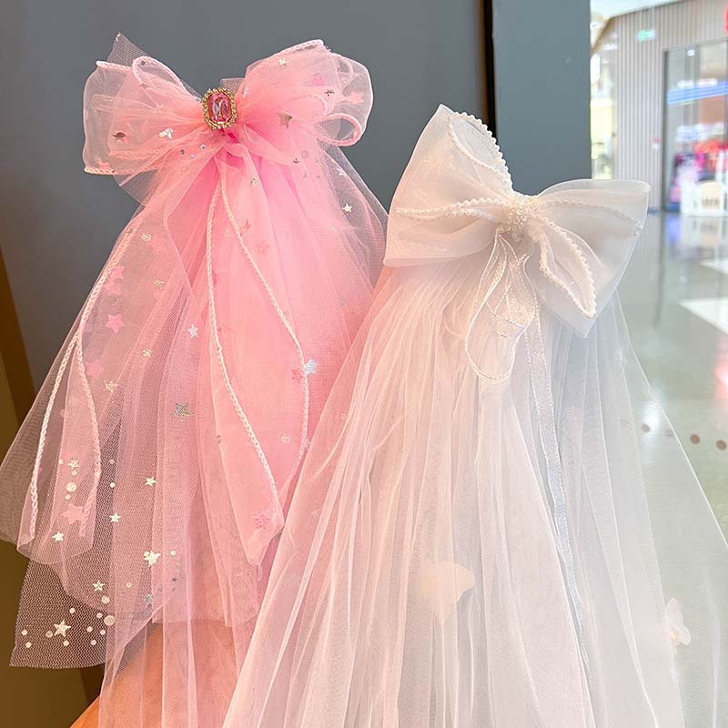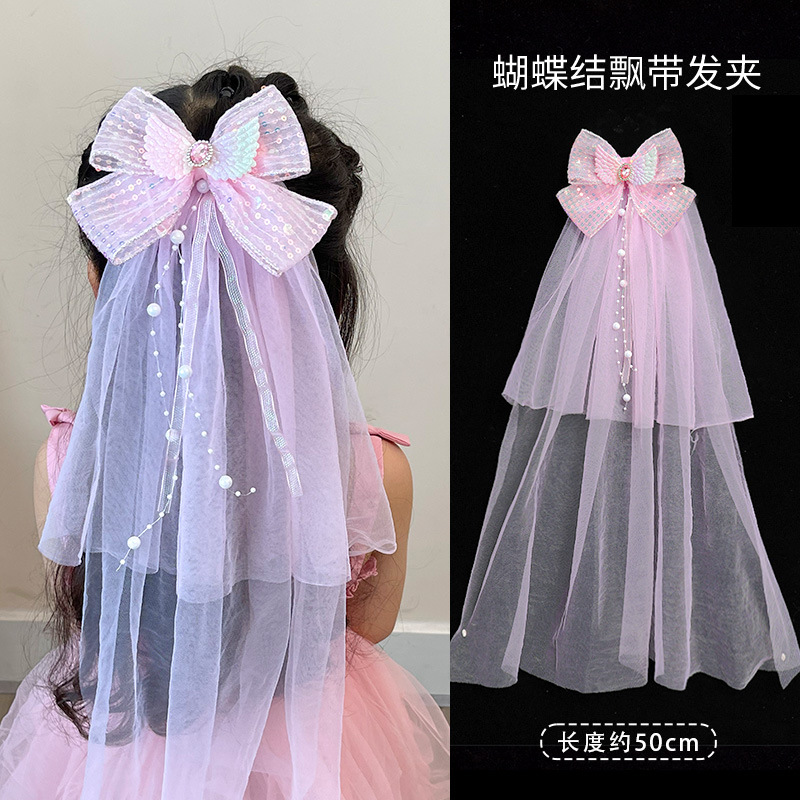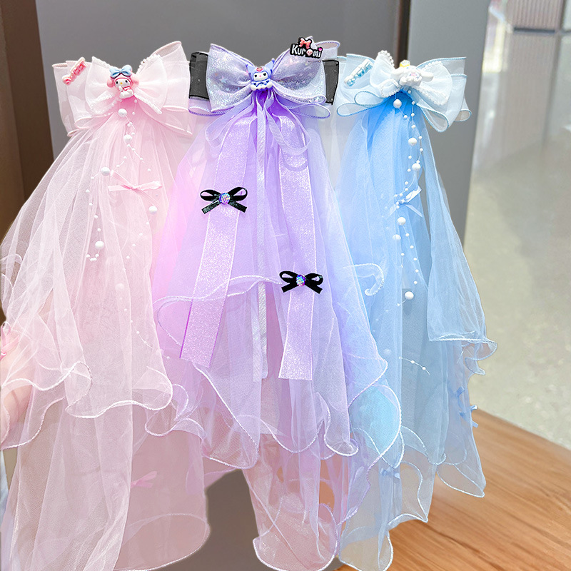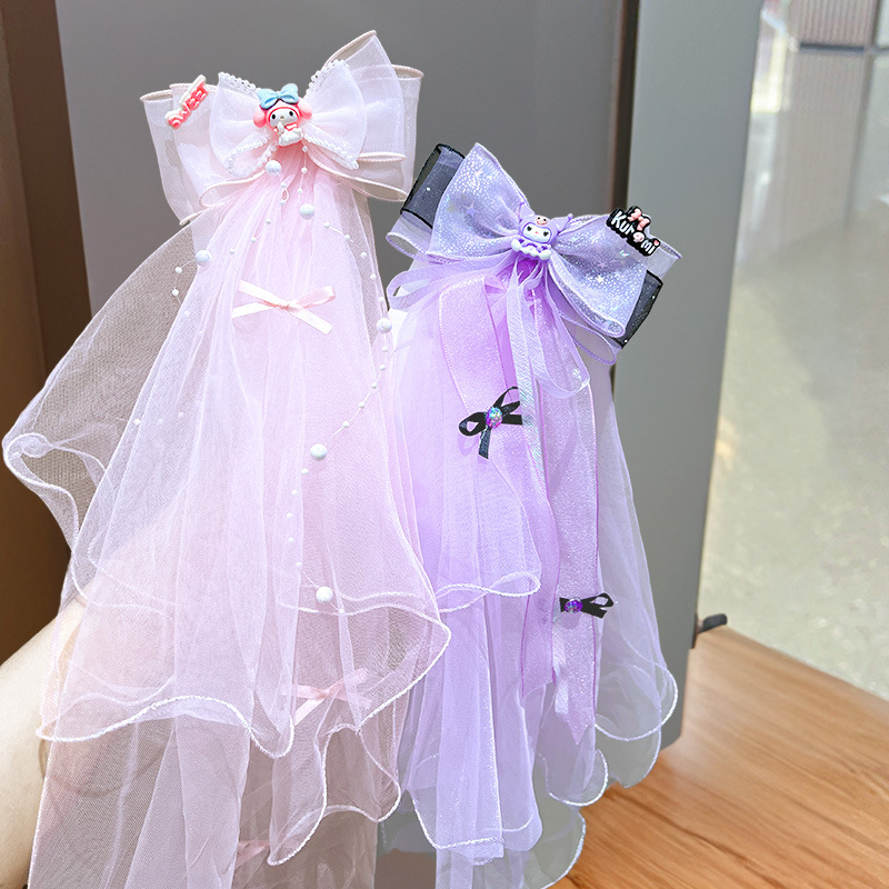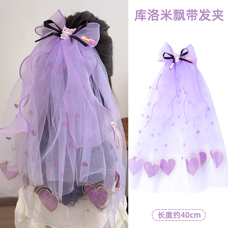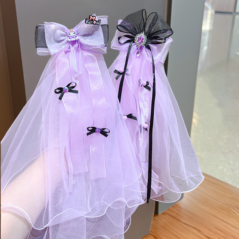 库洛米儿童蝴蝶结头纱头饰超仙女童网纱发夹小女孩公主发夹发饰新