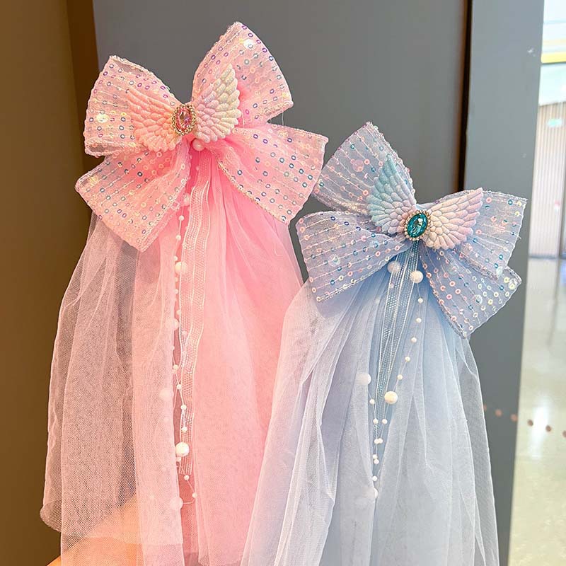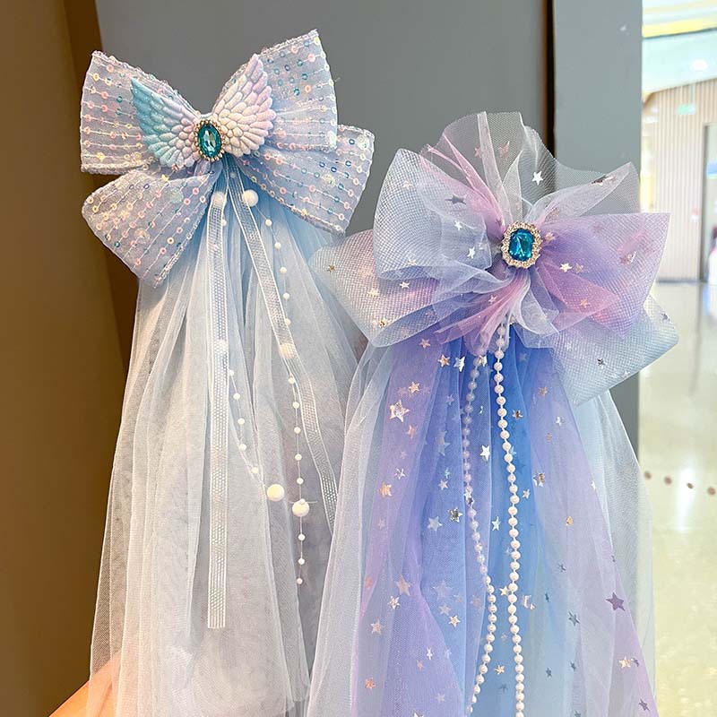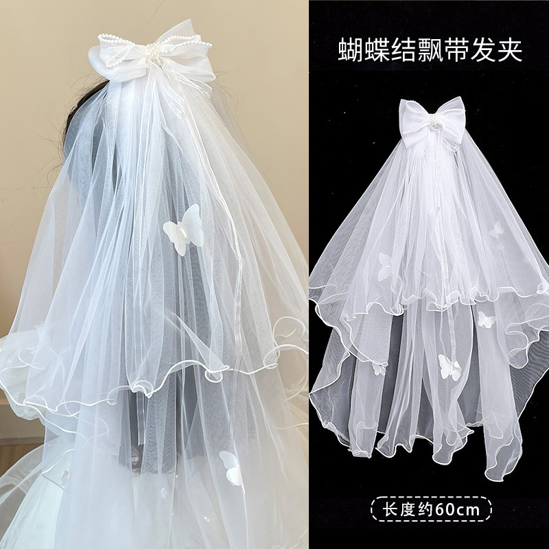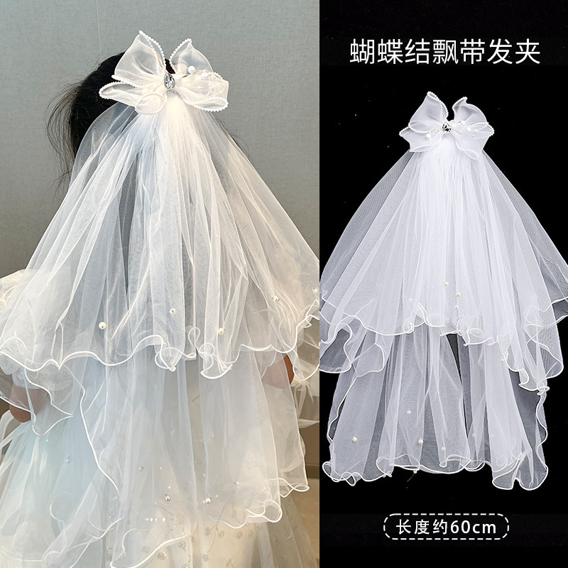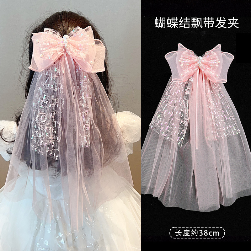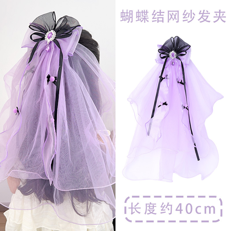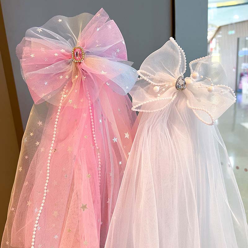 库洛米儿童蝴蝶结头纱头饰超仙女童网纱发夹小女孩公主发夹发饰新