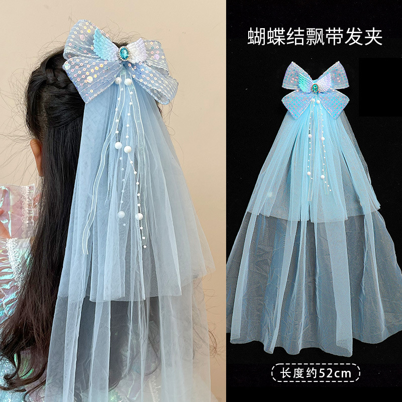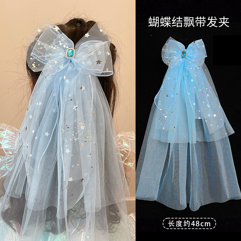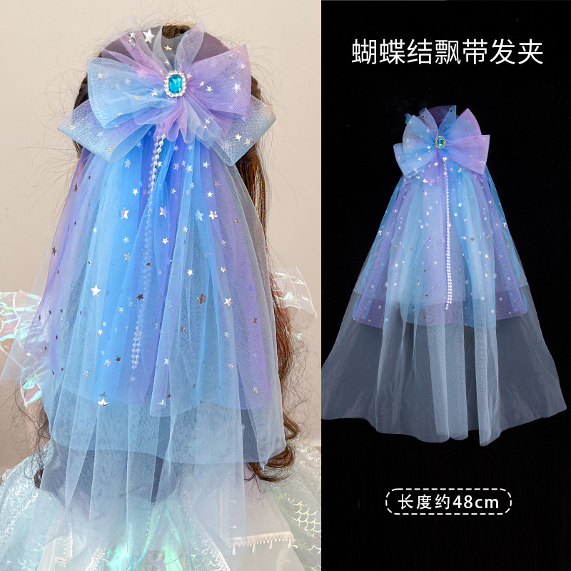 女童头纱公主发饰生日皇冠冰雪儿童节发夹头饰蝴蝶结飘带