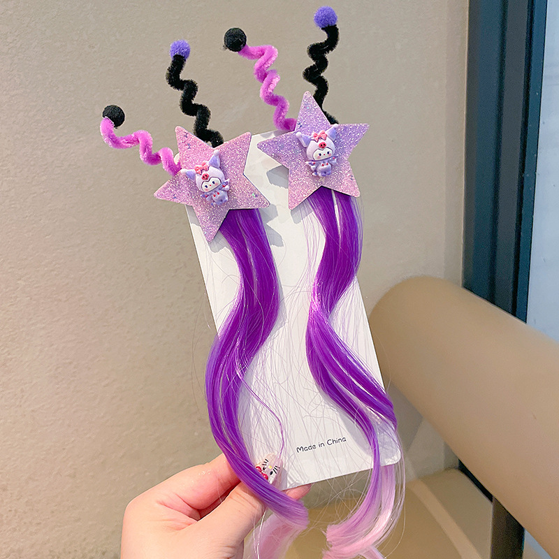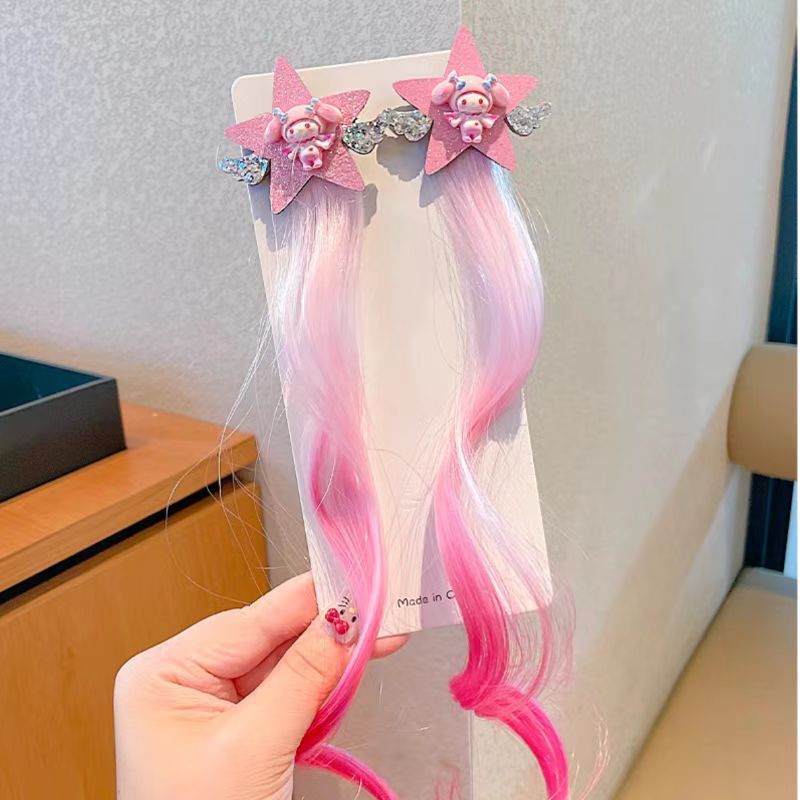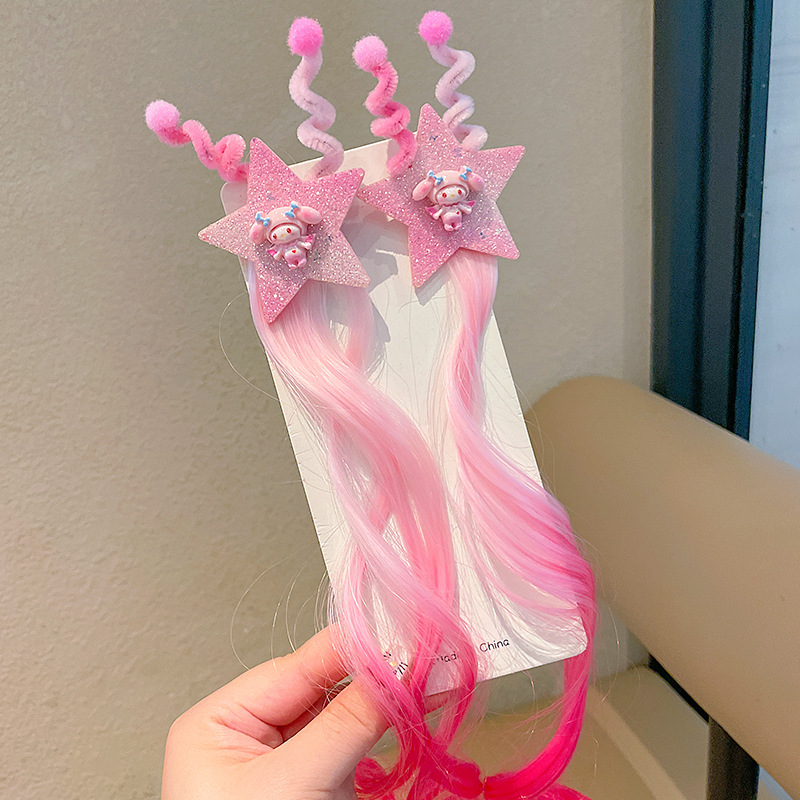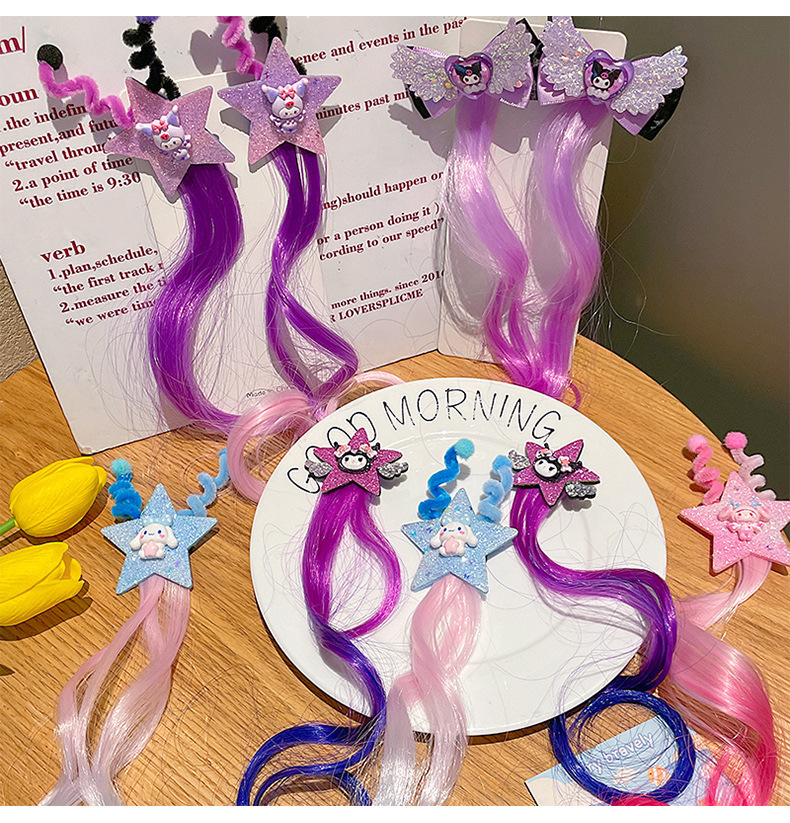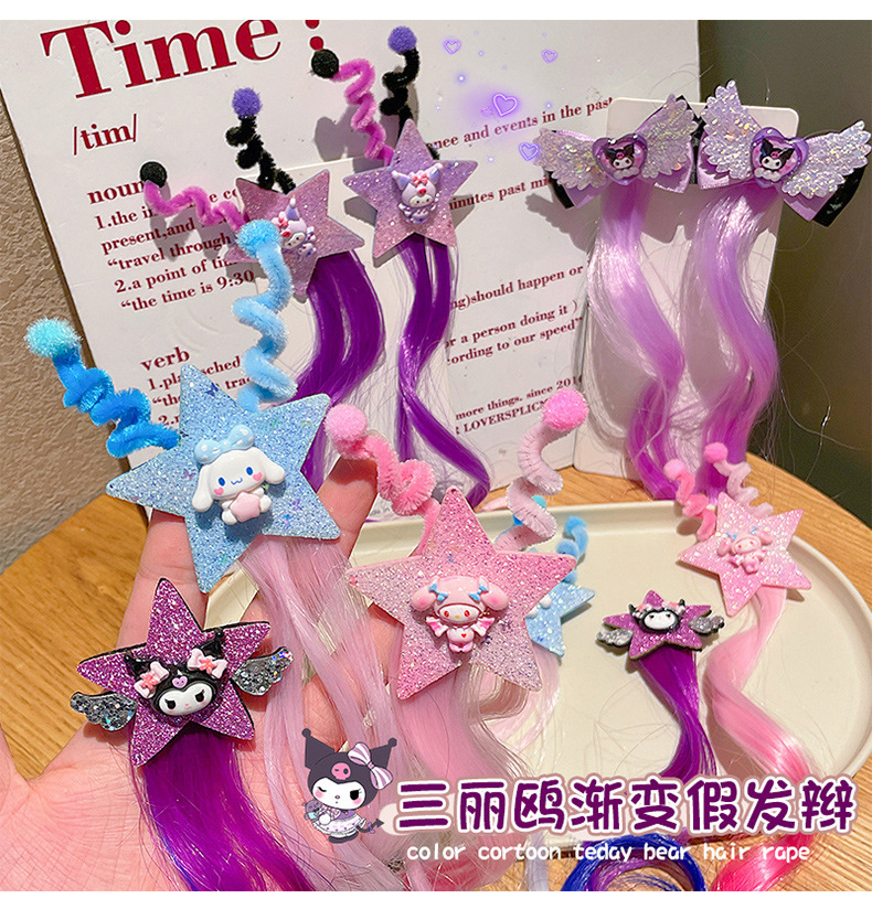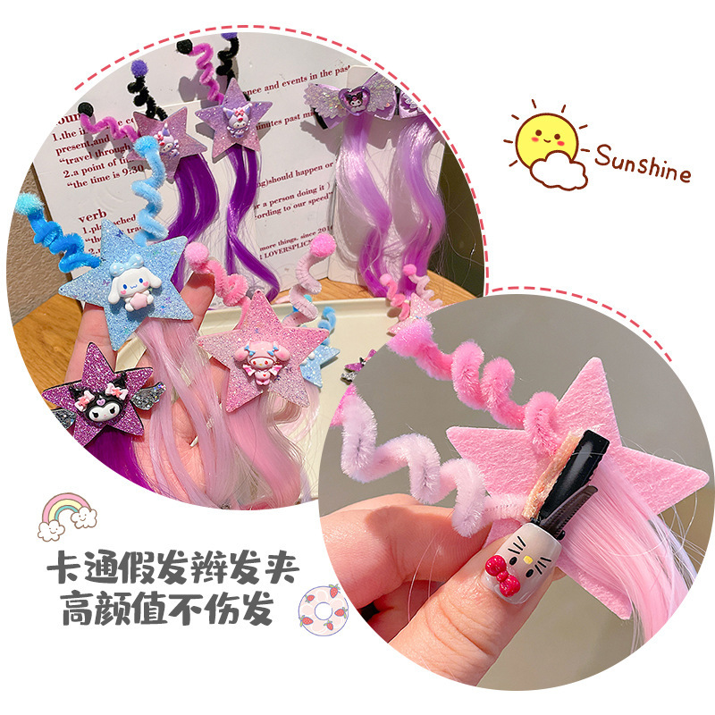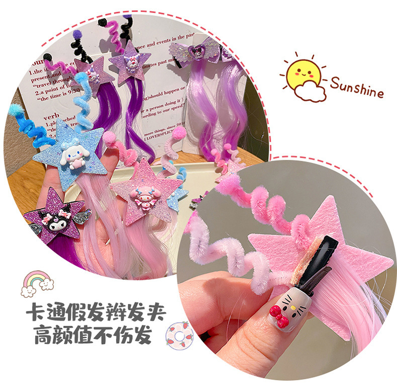 库洛米儿童假发辫挑染编发夹卡通可爱五角星假发丝女孩辫子发饰