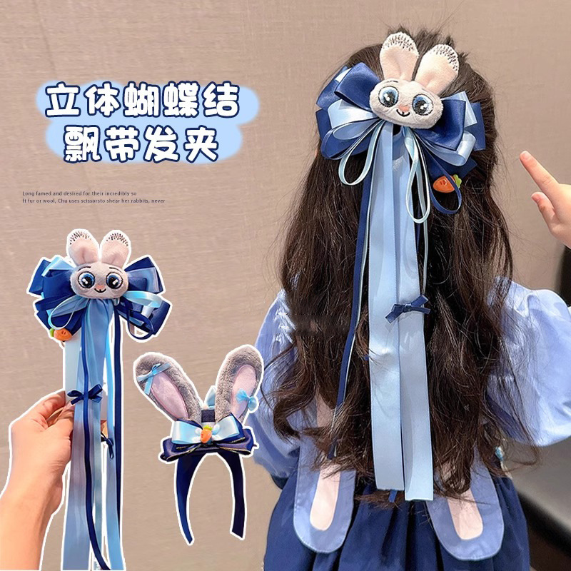 兔子警官儿童发饰库洛米蝴蝶结发夹宝宝可爱卡通飘带发卡女童头饰