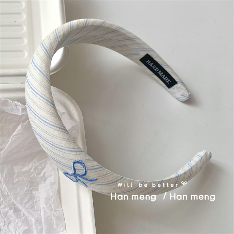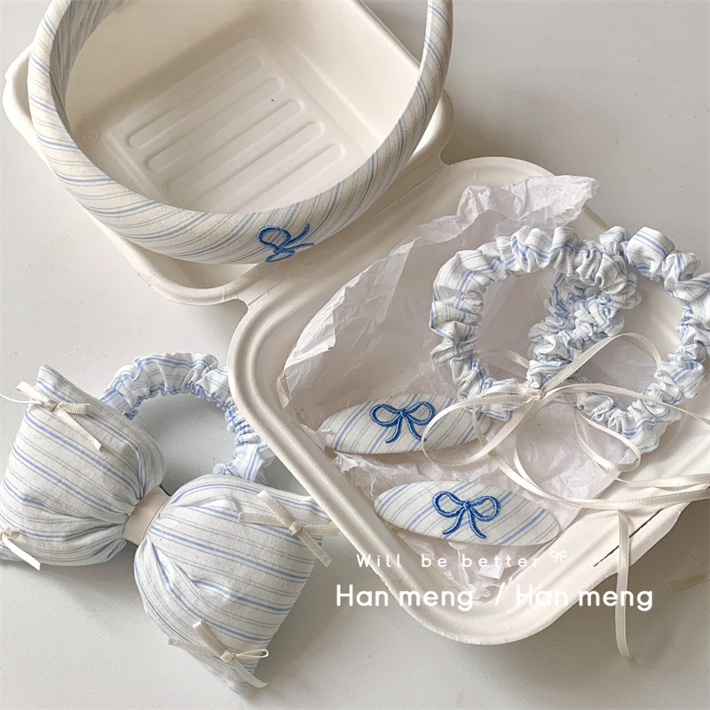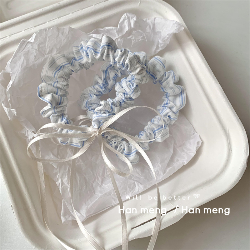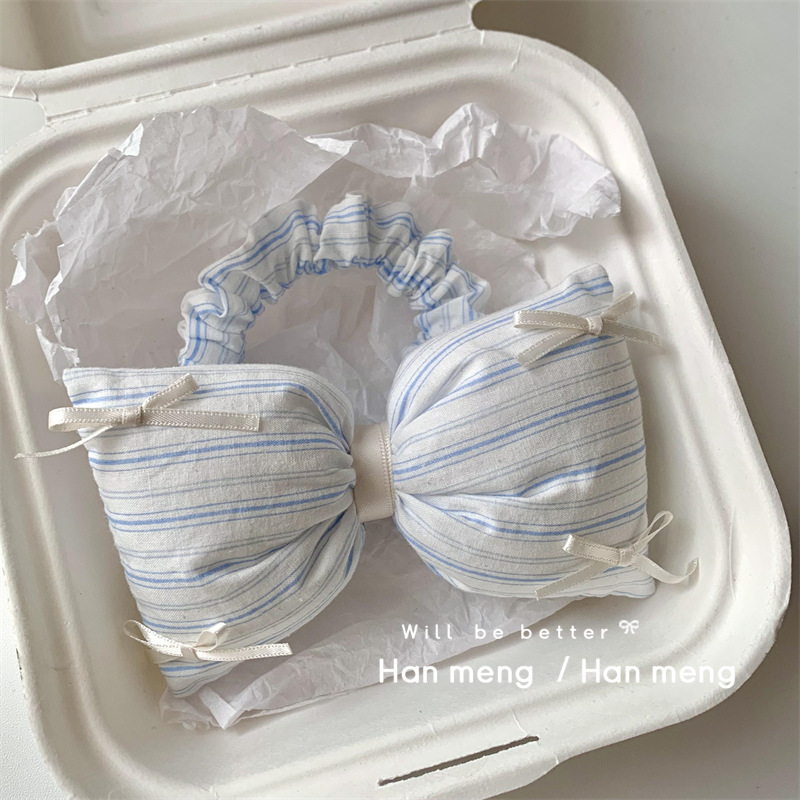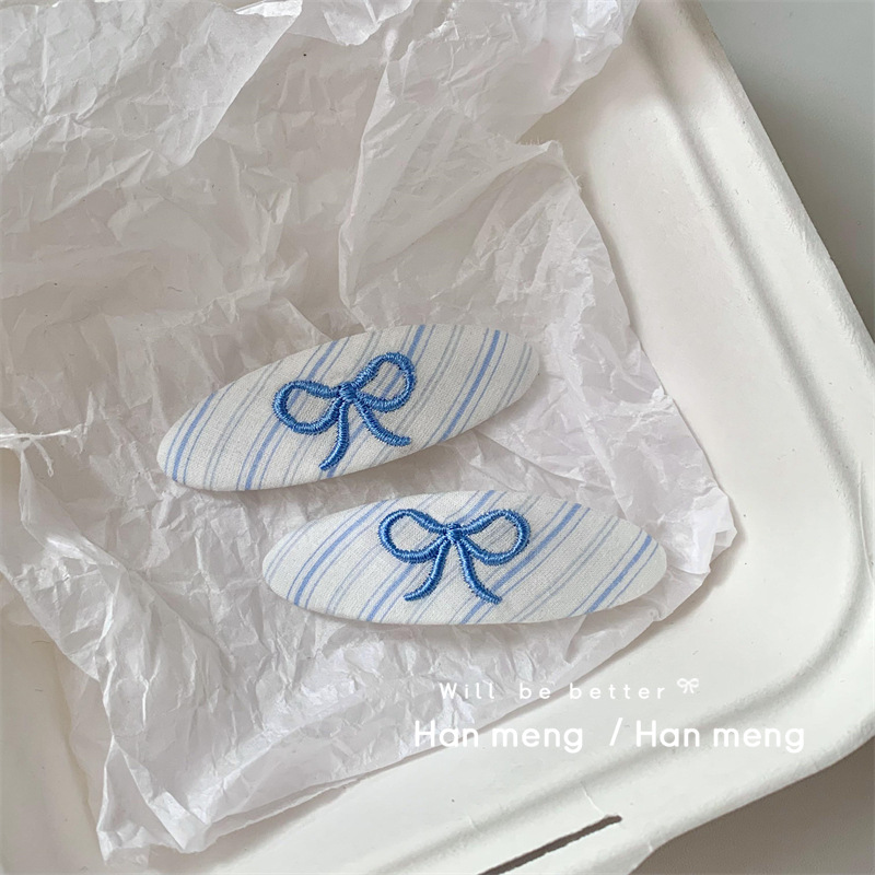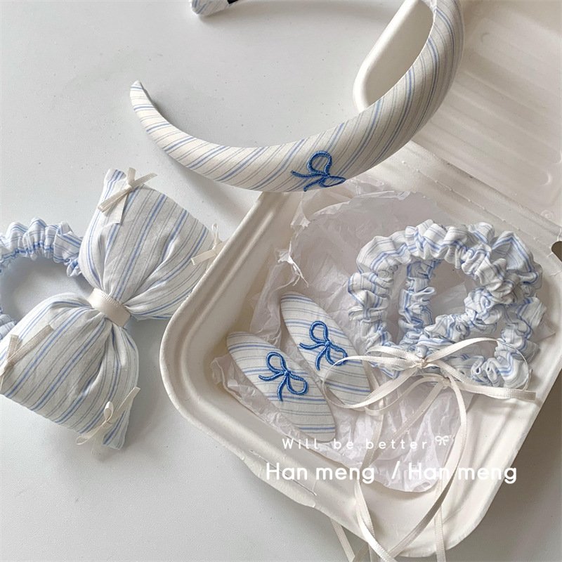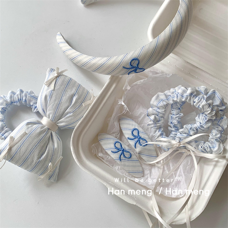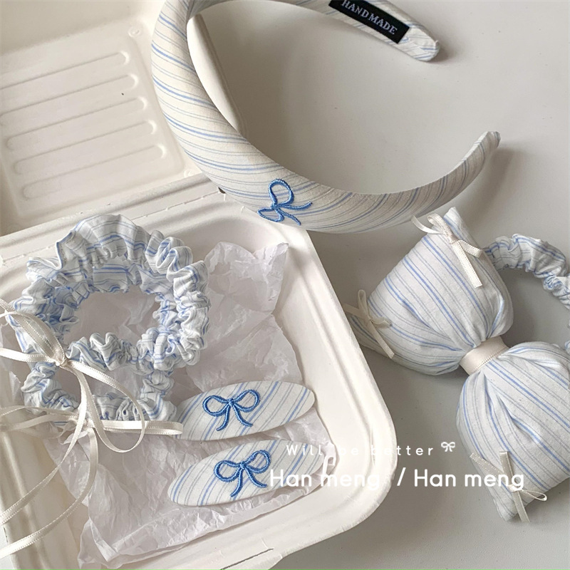 甜美蓝色蝴蝶结发夹丝带发圈组合条纹清新刘海夹头箍百搭发饰女