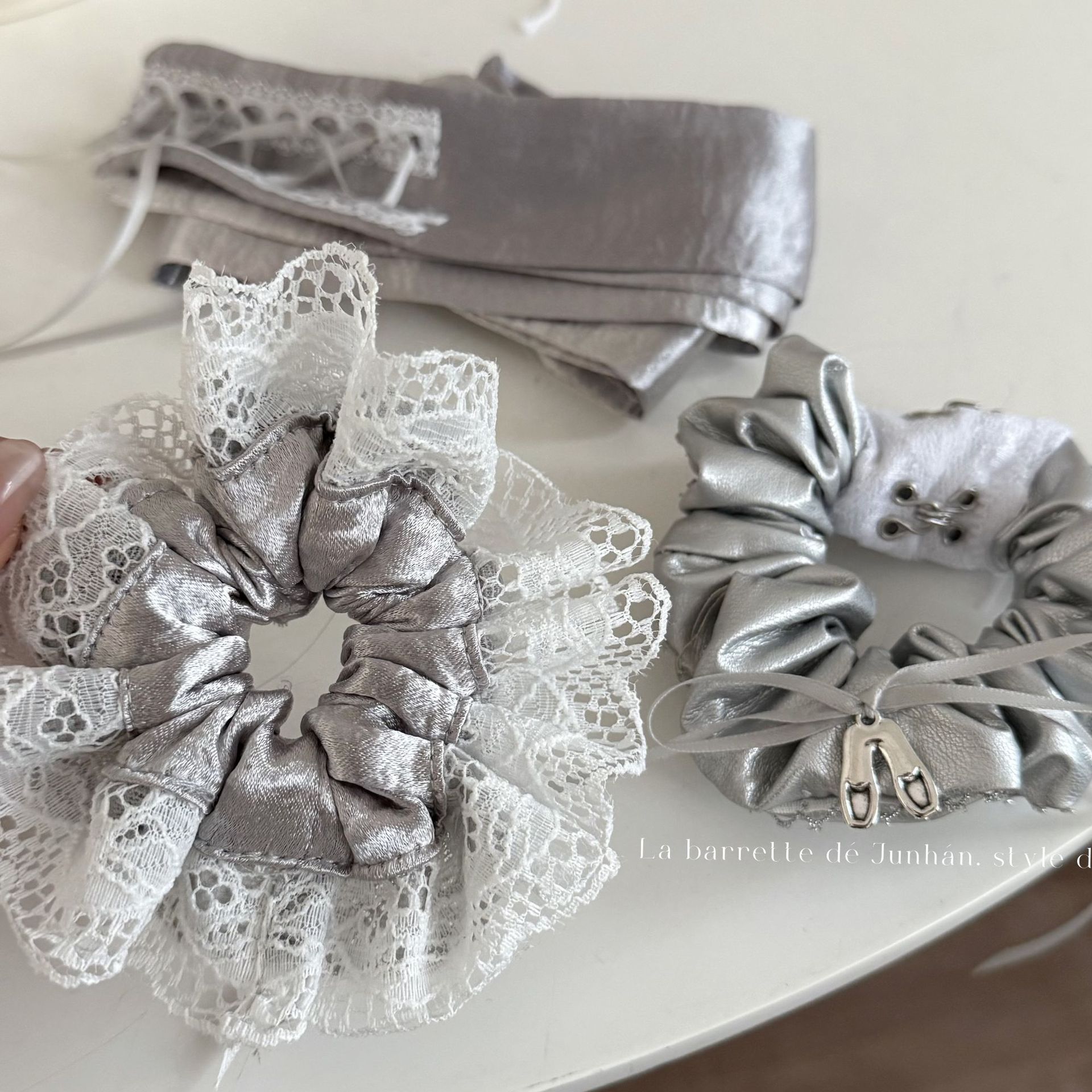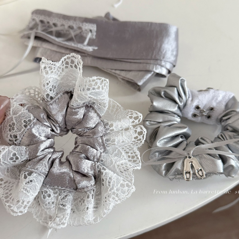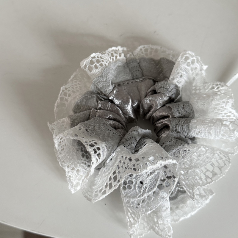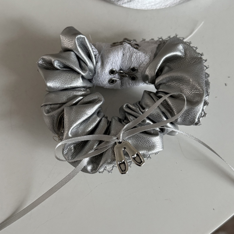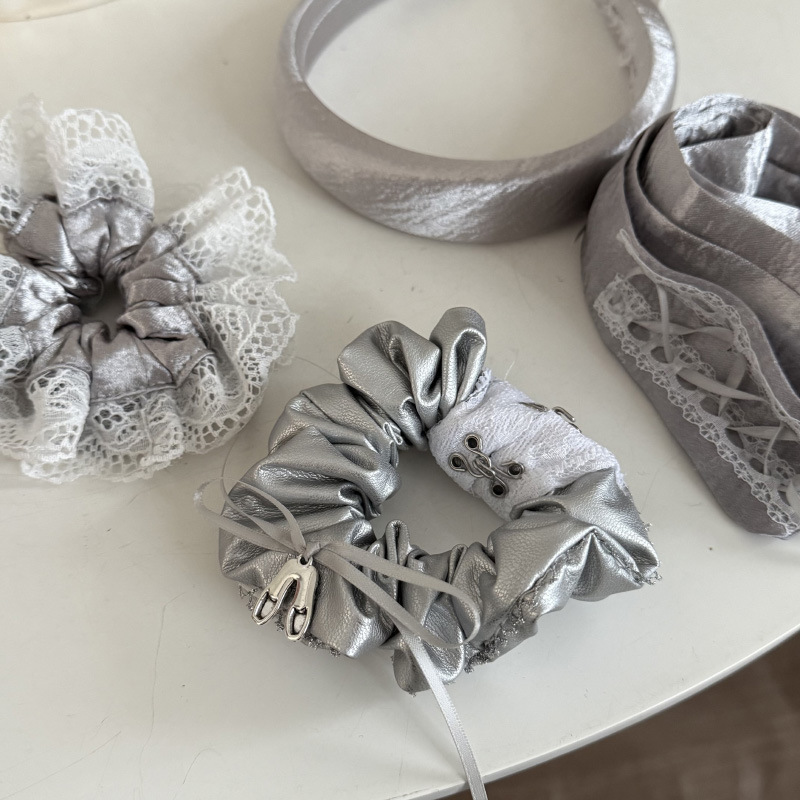 银色芭蕾风运动风丝带发圈温柔发绳发箍丝带小众外出发饰新款