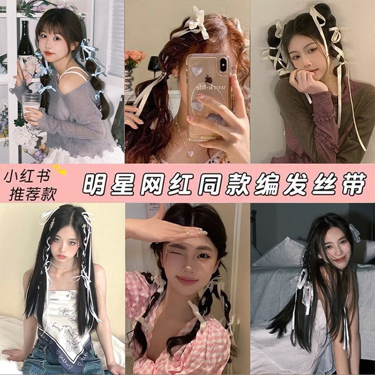 2024新款芭蕾少女风蝴蝶结编发丝带绑头发发夹边夹缎带双马尾头饰