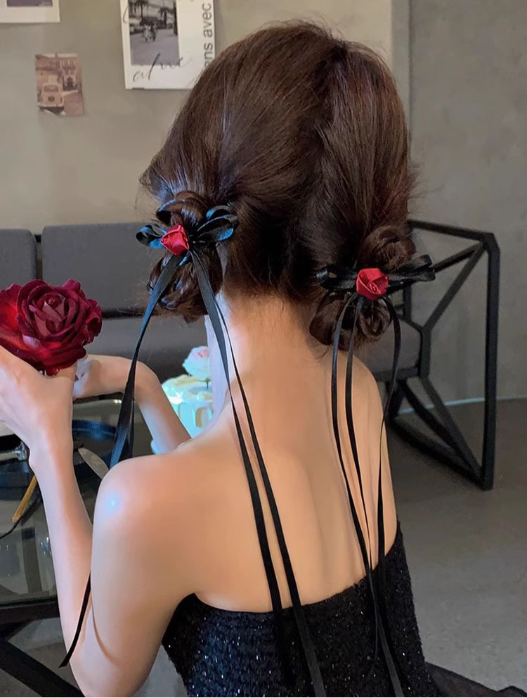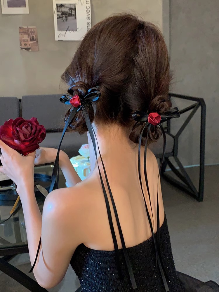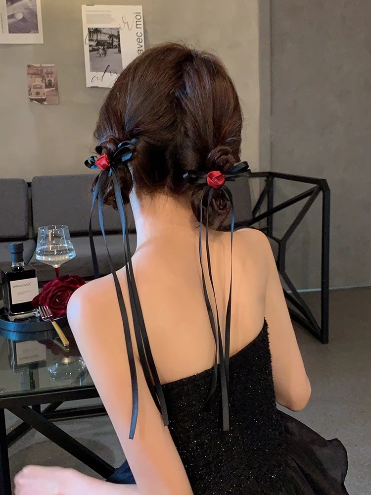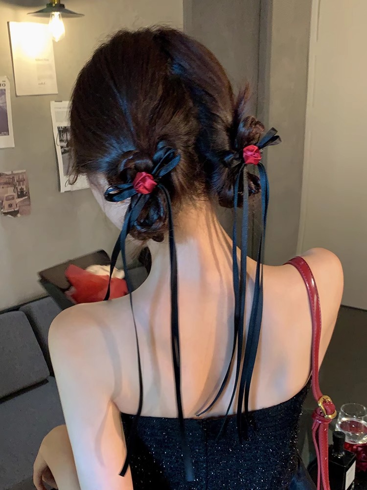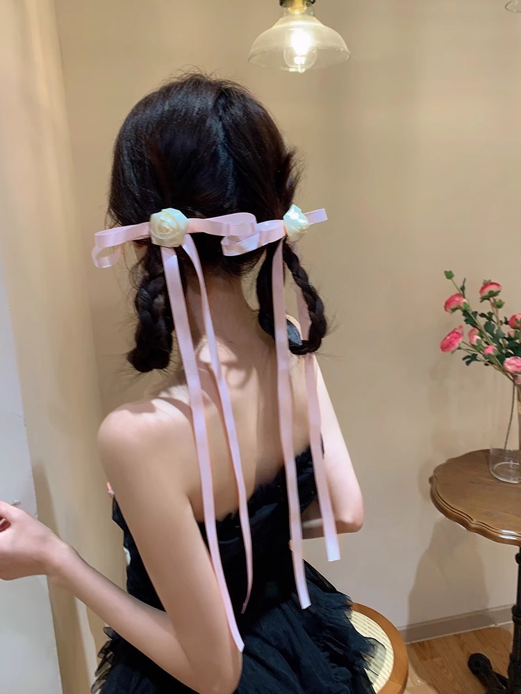 芭蕾风玫瑰飘带蝴蝶结发夹女后脑勺丝带氛围感发饰精致高级感头饰