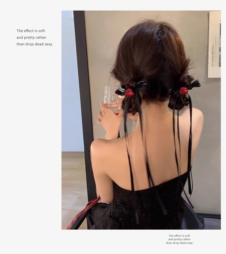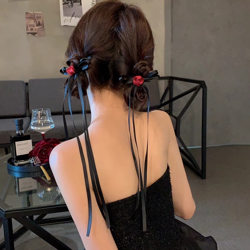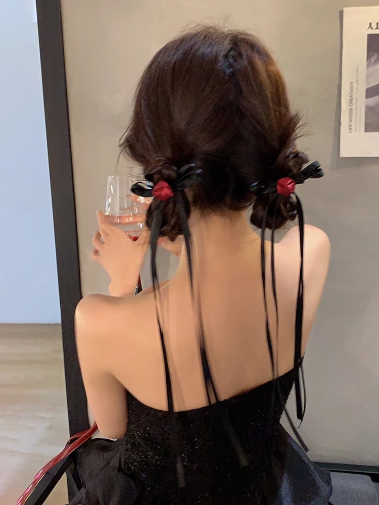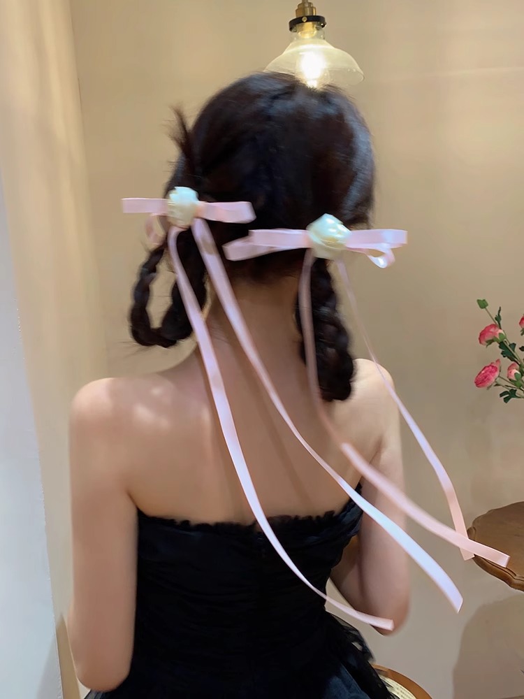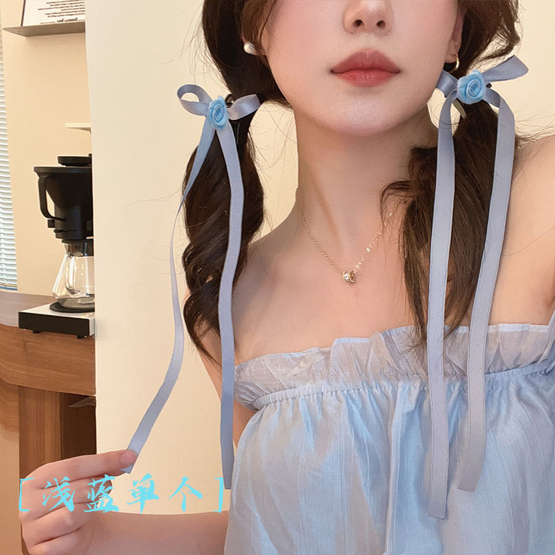 芭蕾风玫瑰飘带蝴蝶结发夹女后脑勺丝带氛围感发饰精致高级感头饰