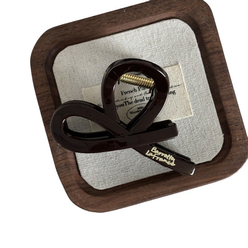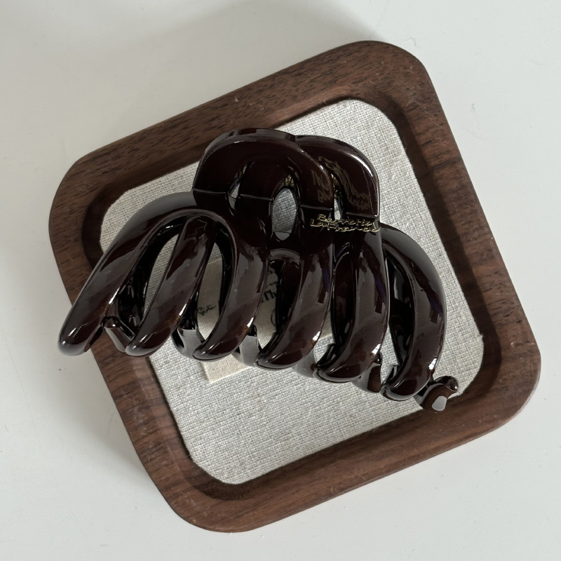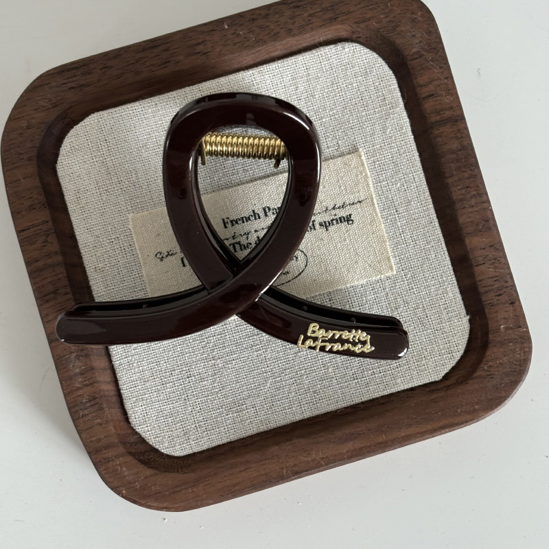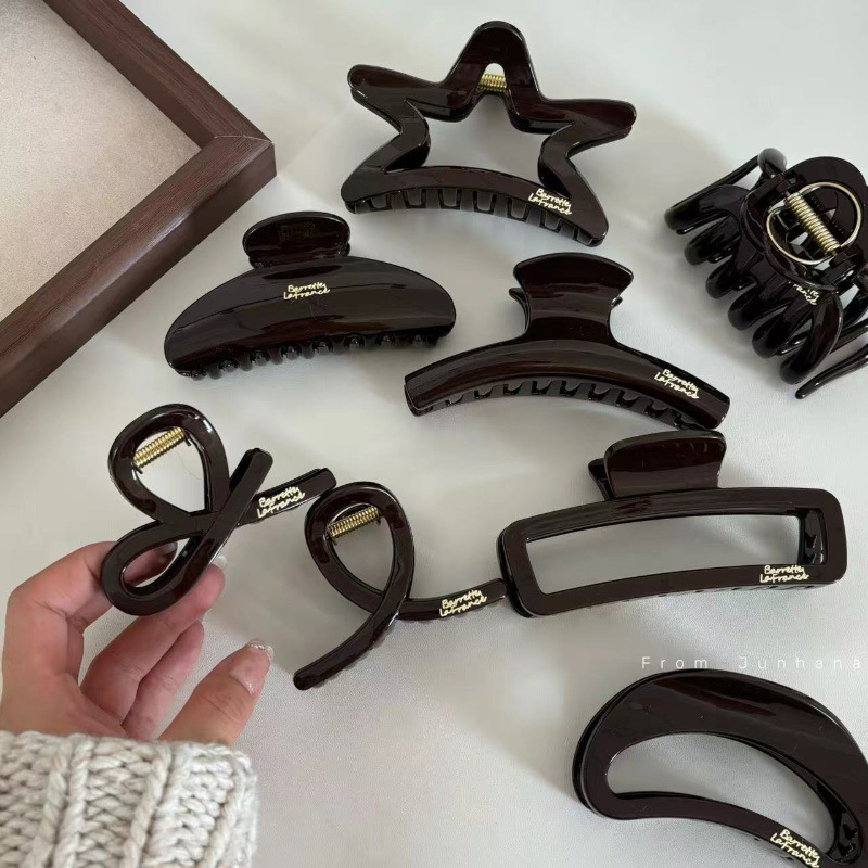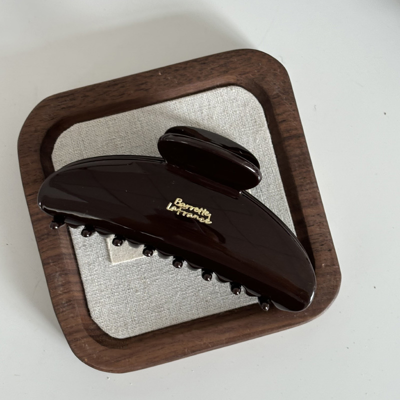 巧克力棕色金标抓夹简约几何耐用发夹高级感后脑勺盘发鲨鱼夹新款