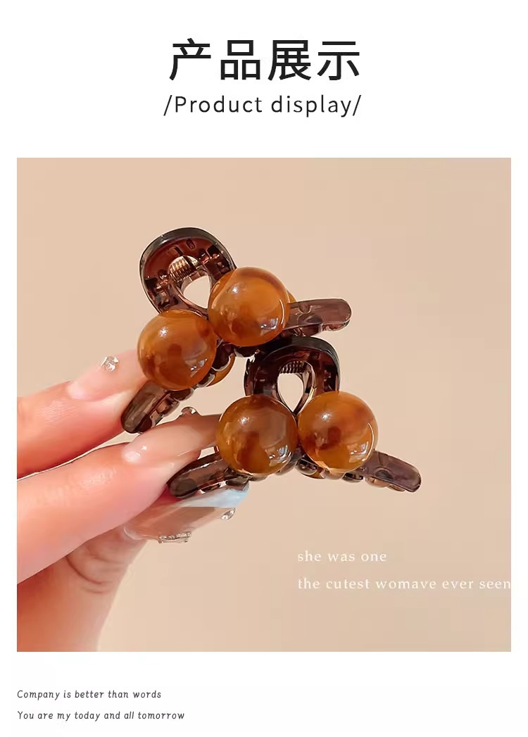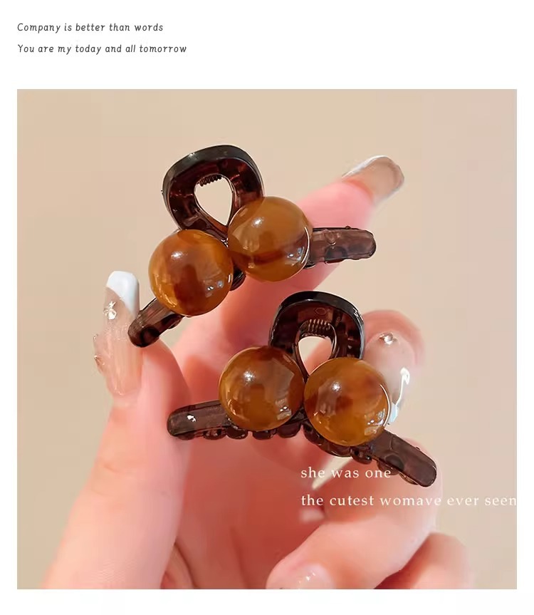 琥珀色珍珠小抓夹女2025新款发夹公主头刘海夹碎发夹子鲨鱼夹发饰