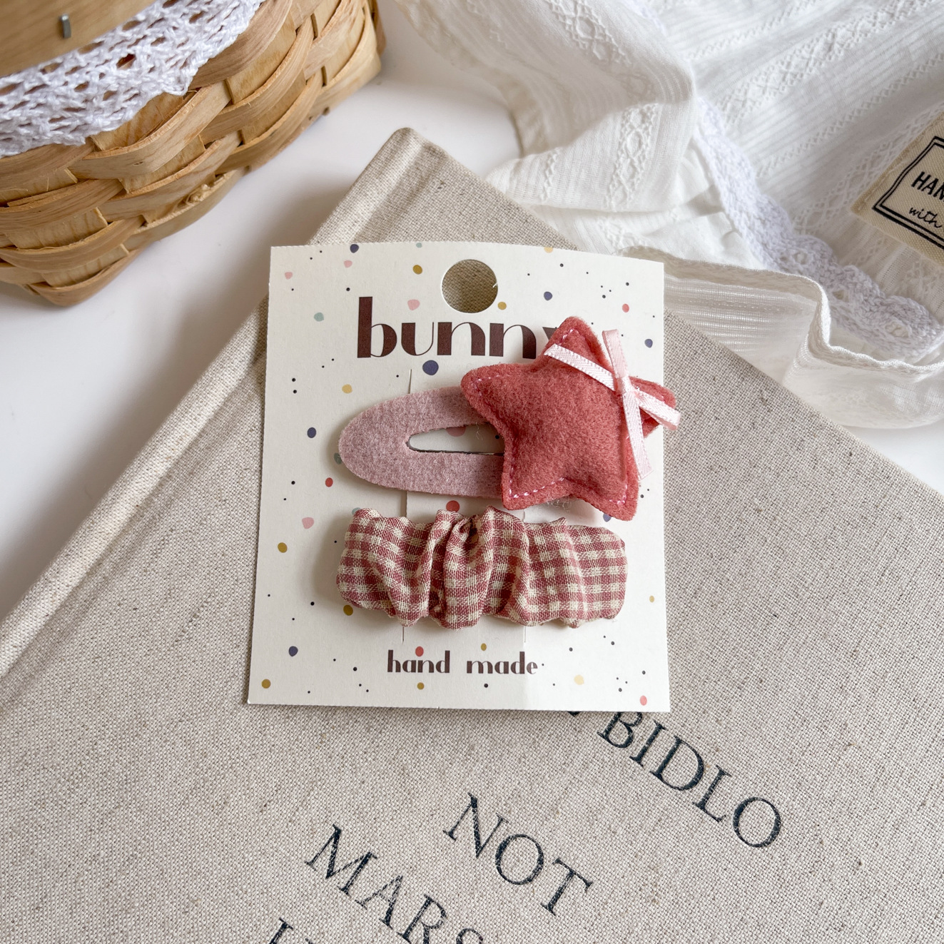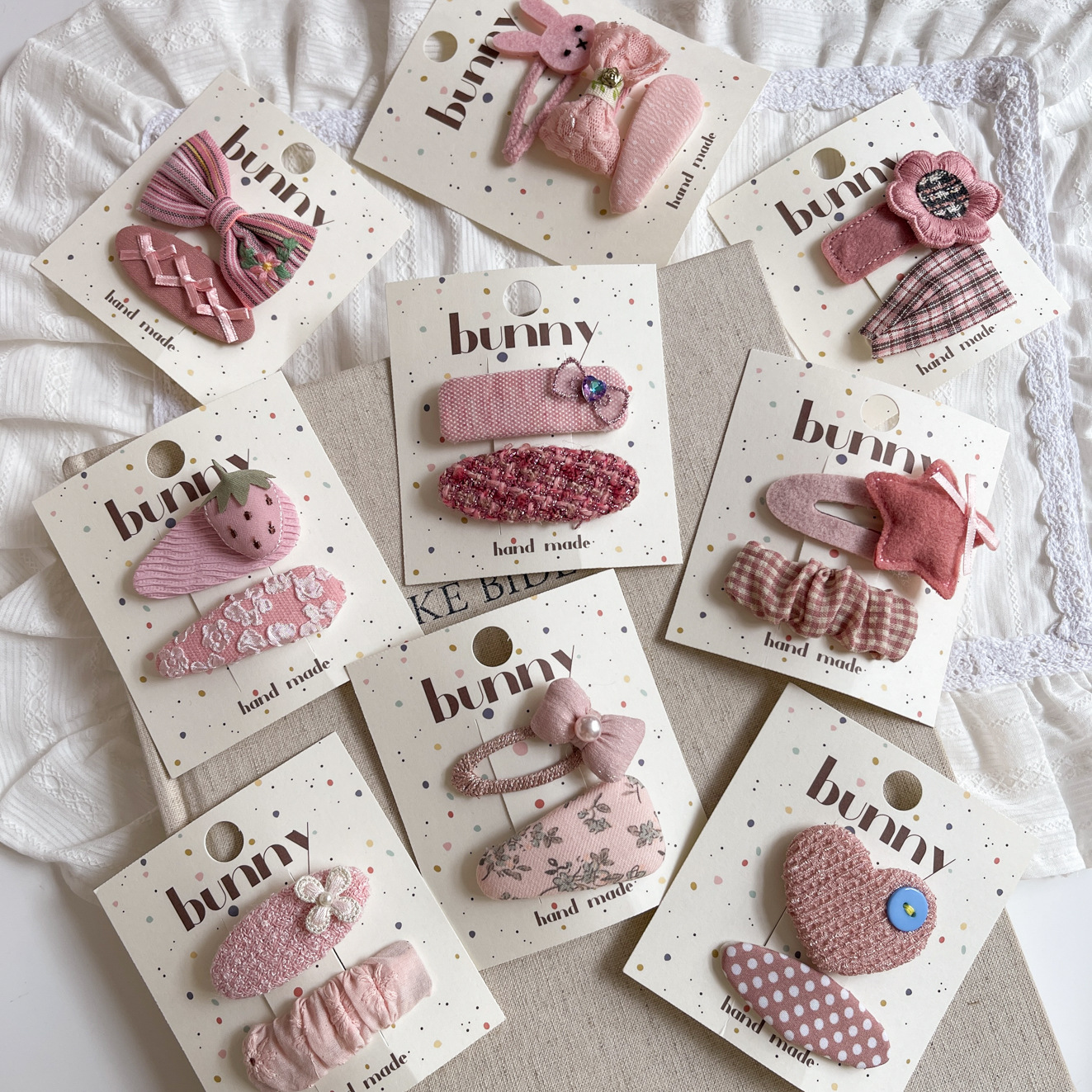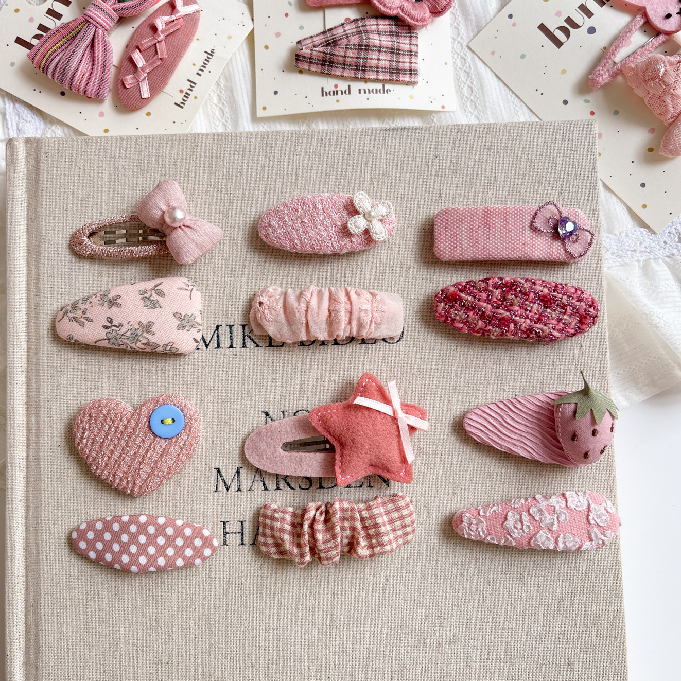 韩系粉色系几何布艺组合儿童发夹甜美五星碎花掰掰夹侧边刘海夹发