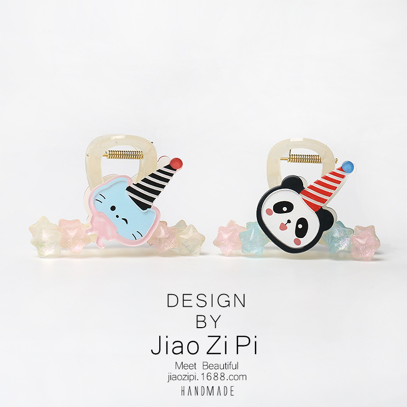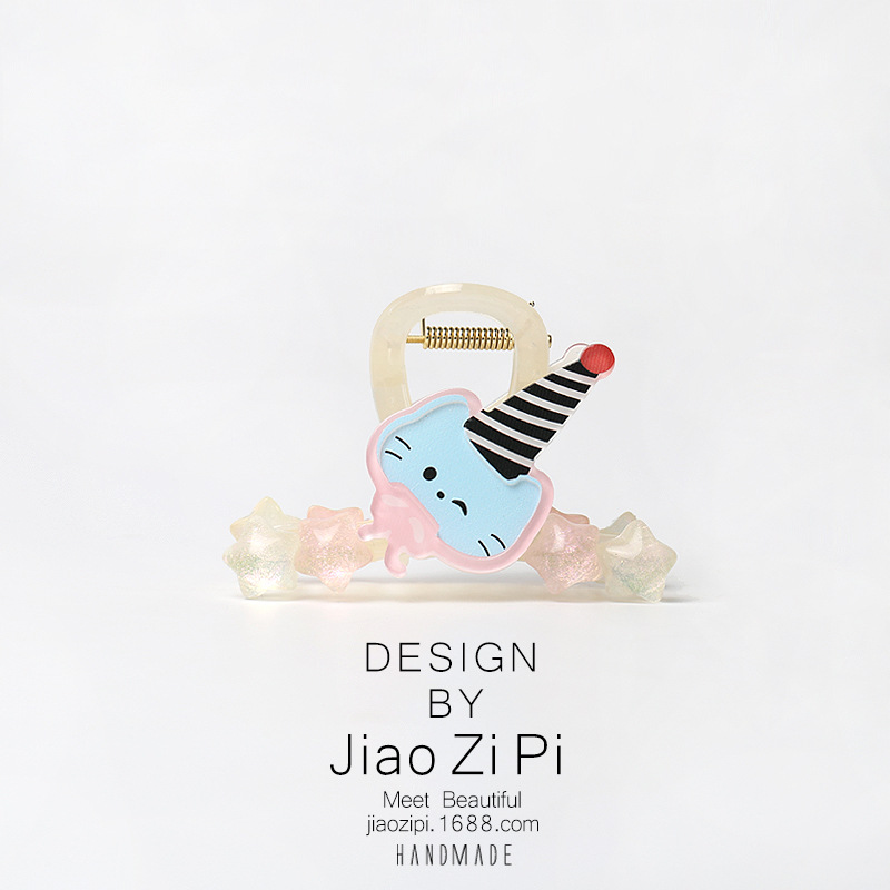 小清新高礼帽小动物星星抓夹夏日百搭盘发夹后脑勺元气趣味头饰品