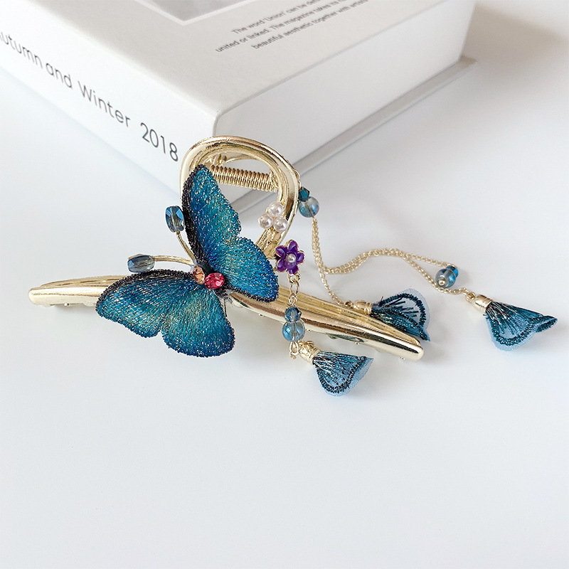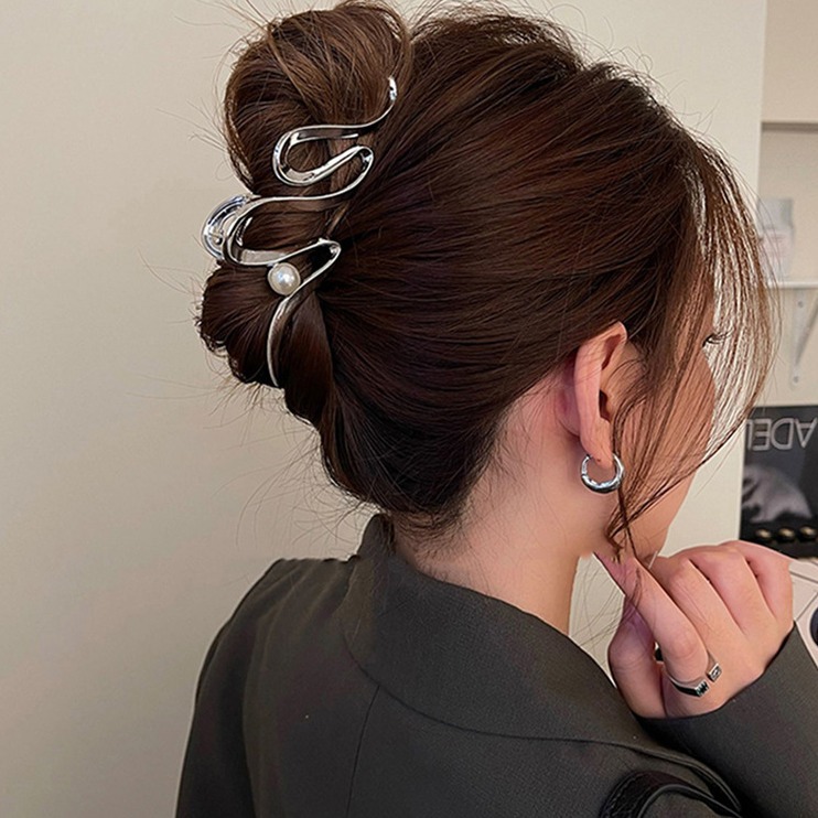 韩版发饰网红金属流苏抓夹大号后脑勺珍珠发夹仙气鲨鱼夹花朵头饰
