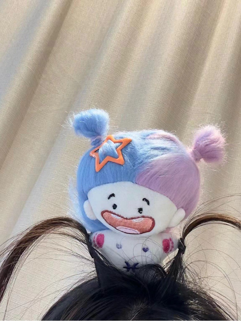 购买须知:娃娃头发需要自己扎,有的款会赠送随机一个五角星和两个皮筋,有的款没有赠送,以收到实物有无为准