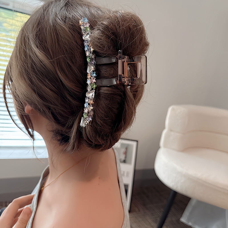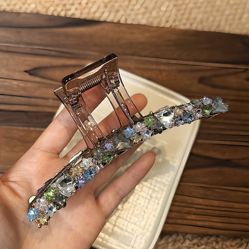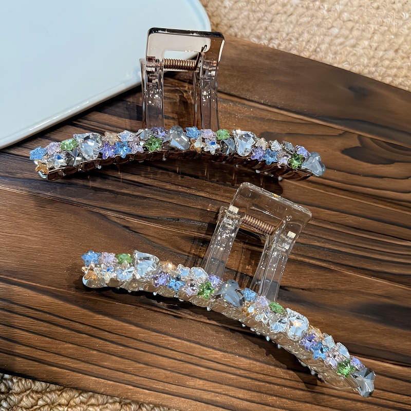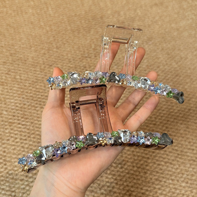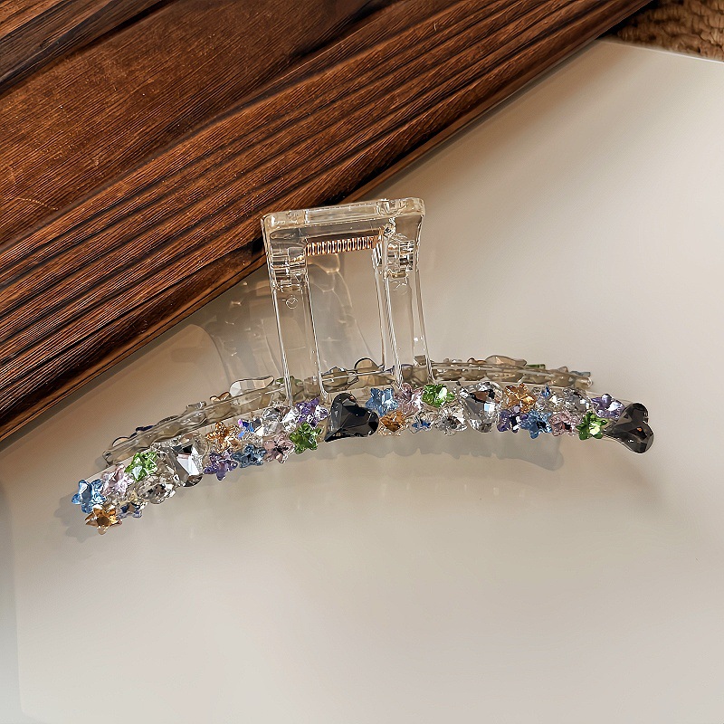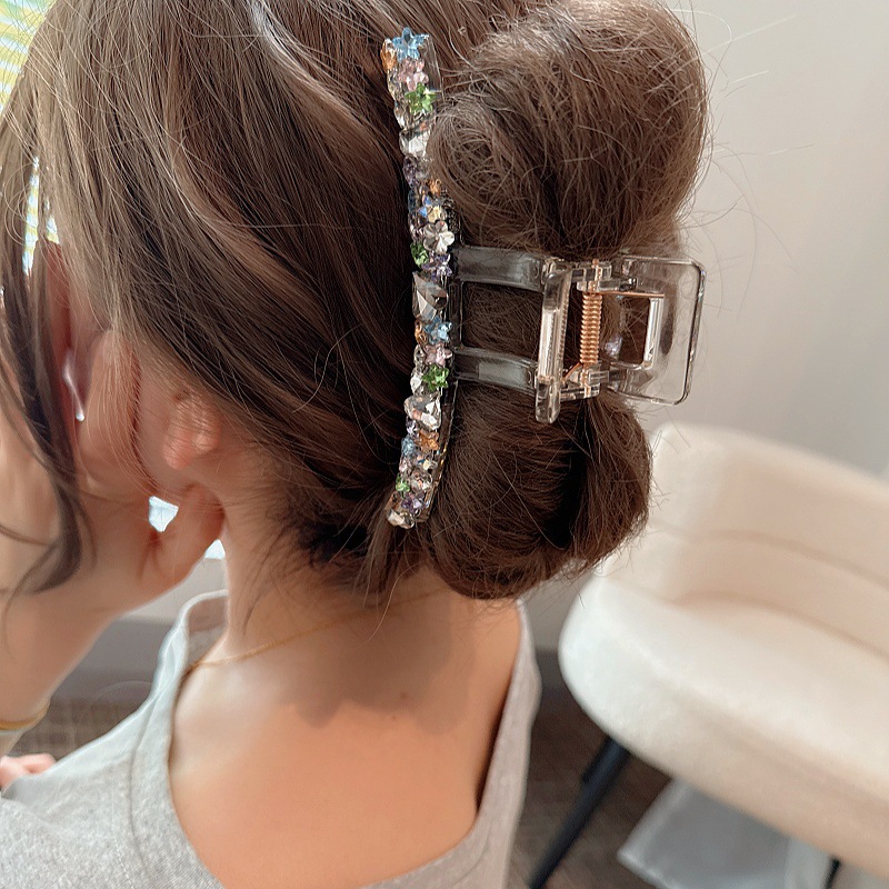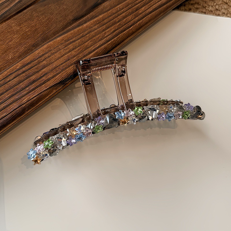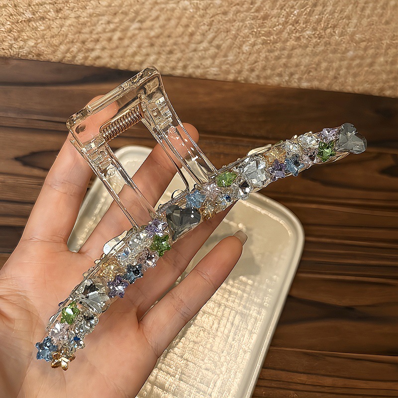 韩国发饰高级感超闪彩色系星星水钻抓夹后脑勺盘发鲨鱼夹网红发卡