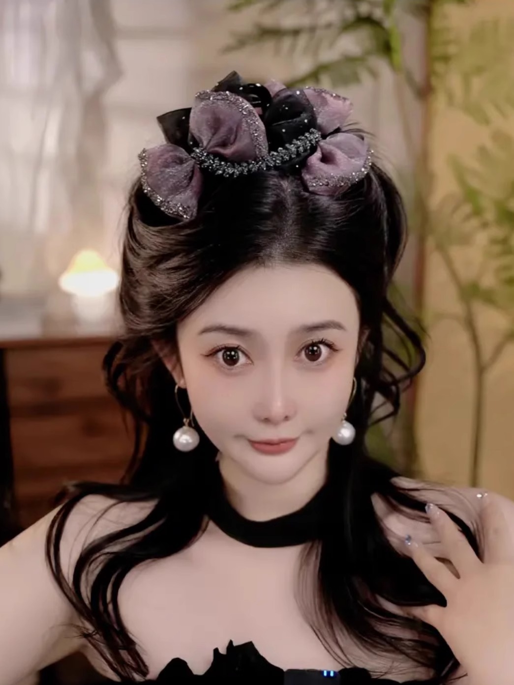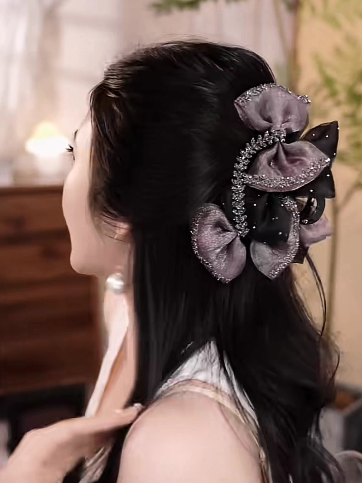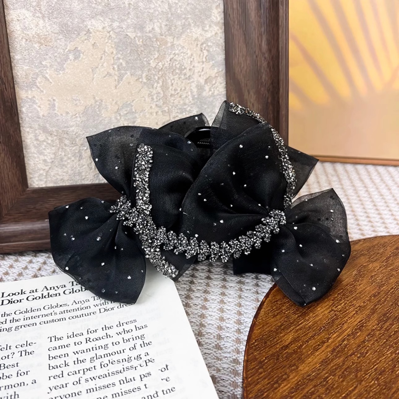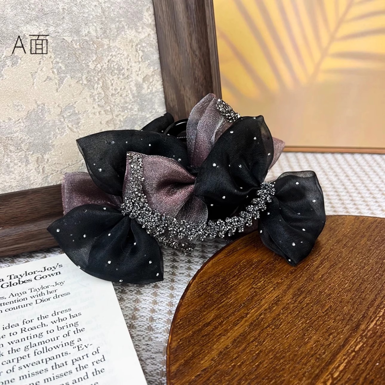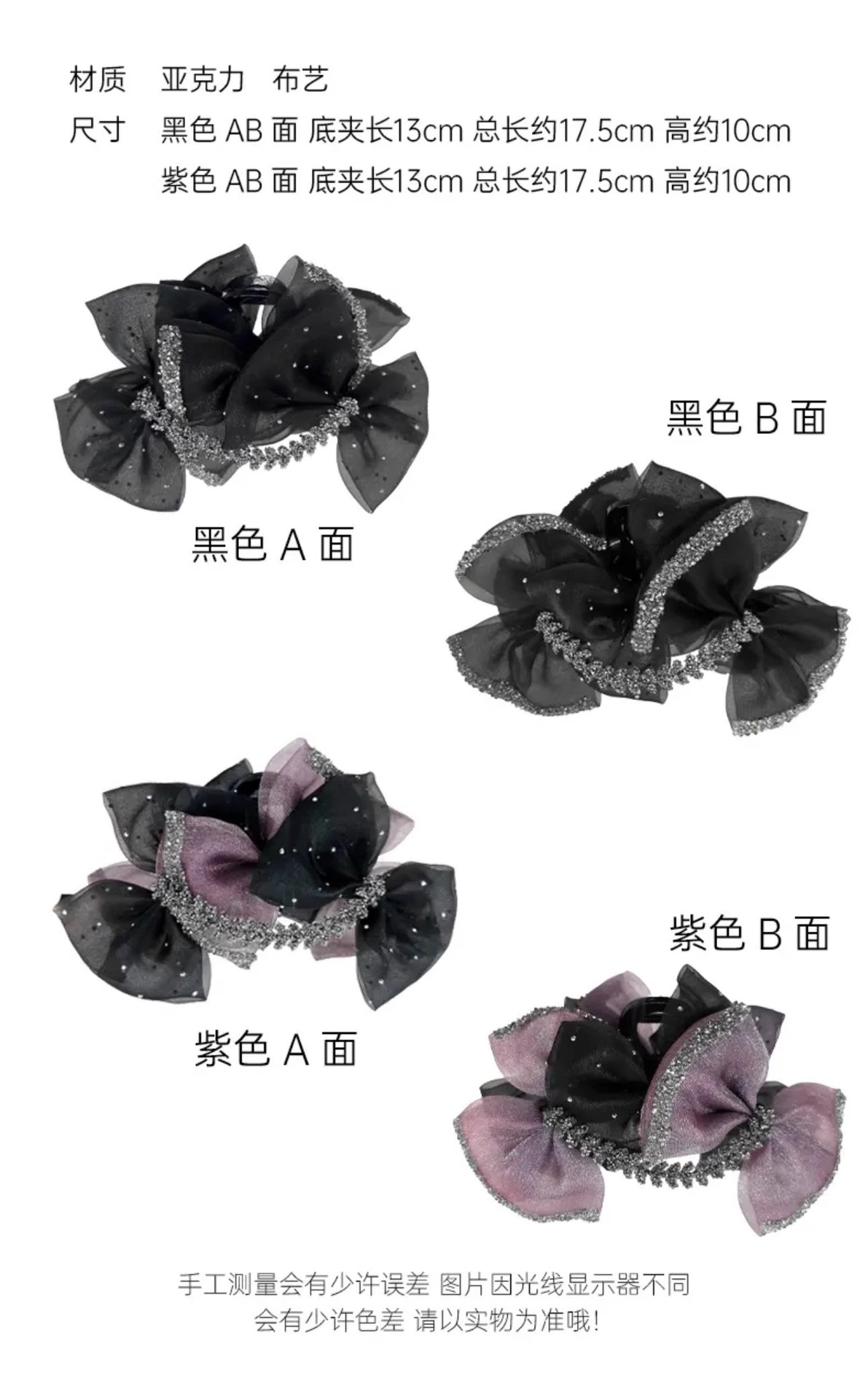 抓夹高级感大号发量半扎发饱满后脑勺黑色蝴蝶结跨境鲨鱼夹发饰女