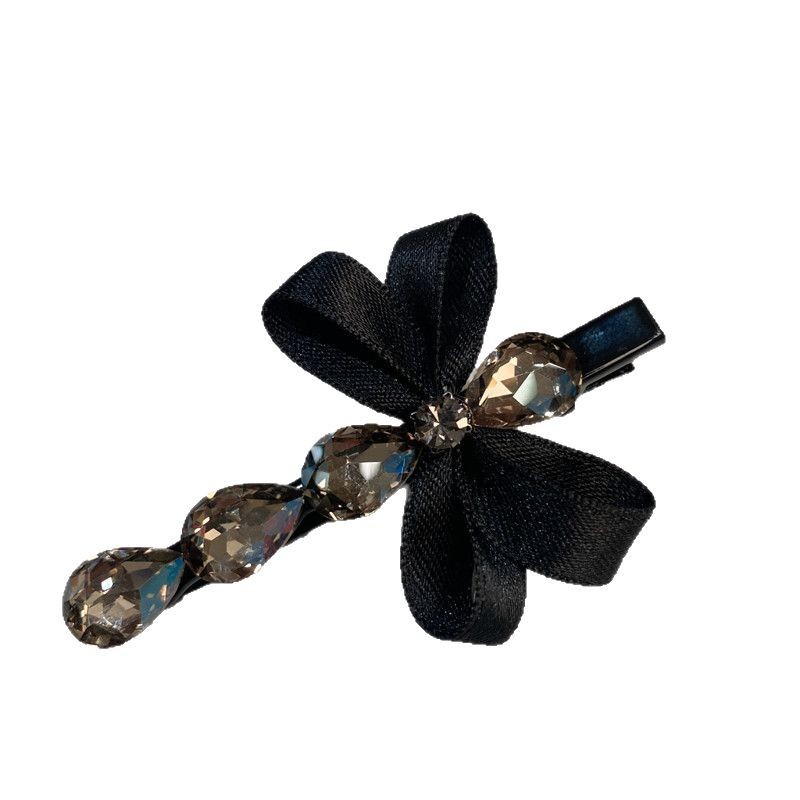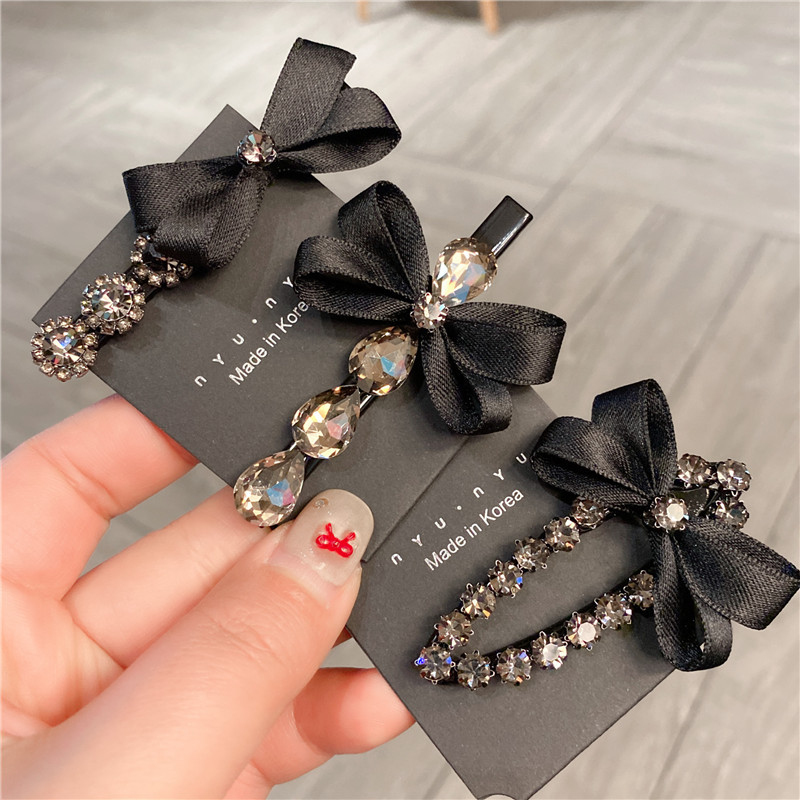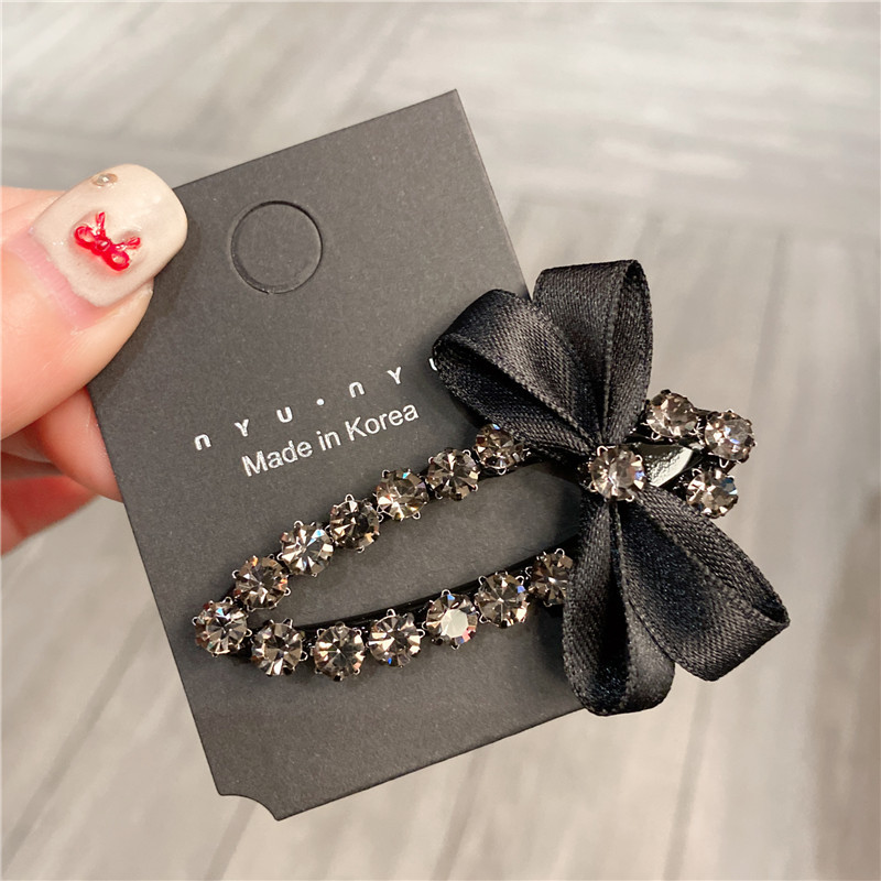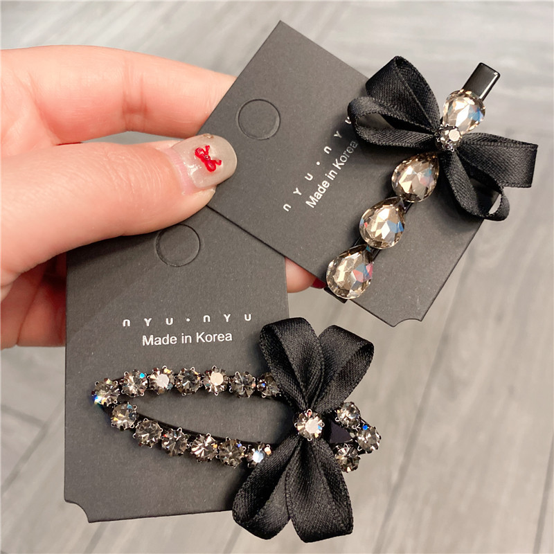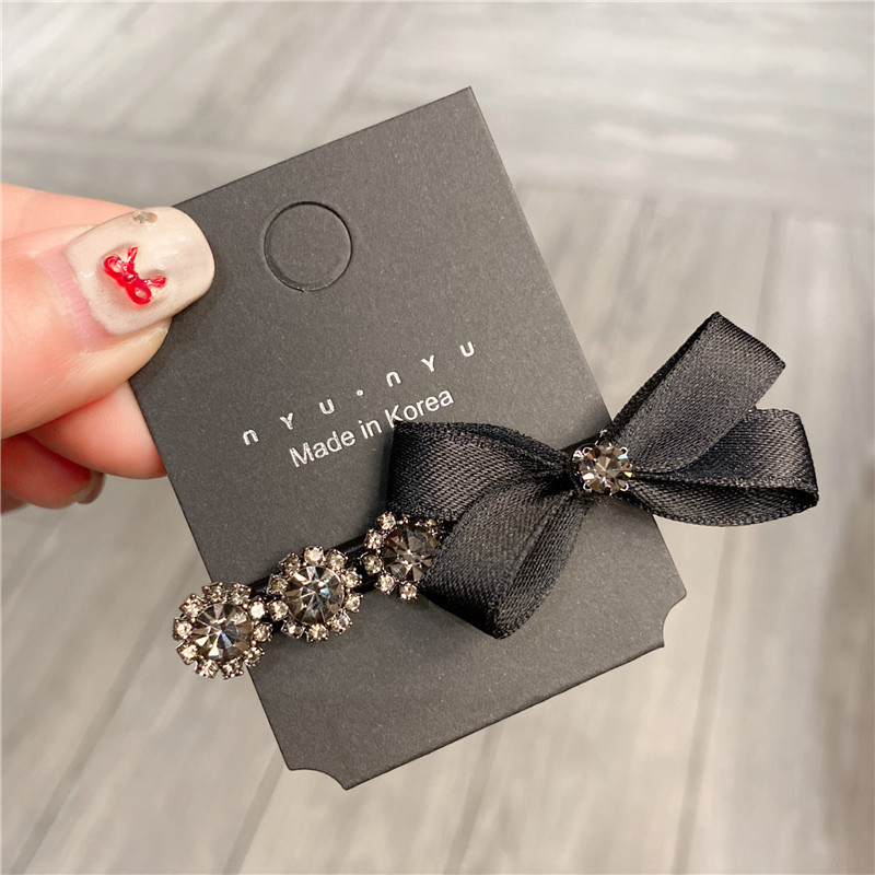 韩国东大门头饰黑色缎带蝴蝶结鸭嘴夹新款百搭水钻刘海夹边夹发夹