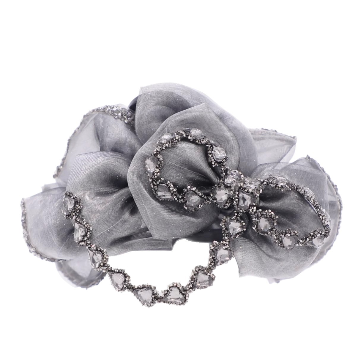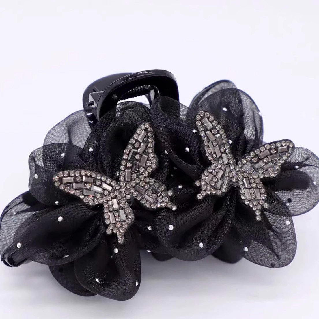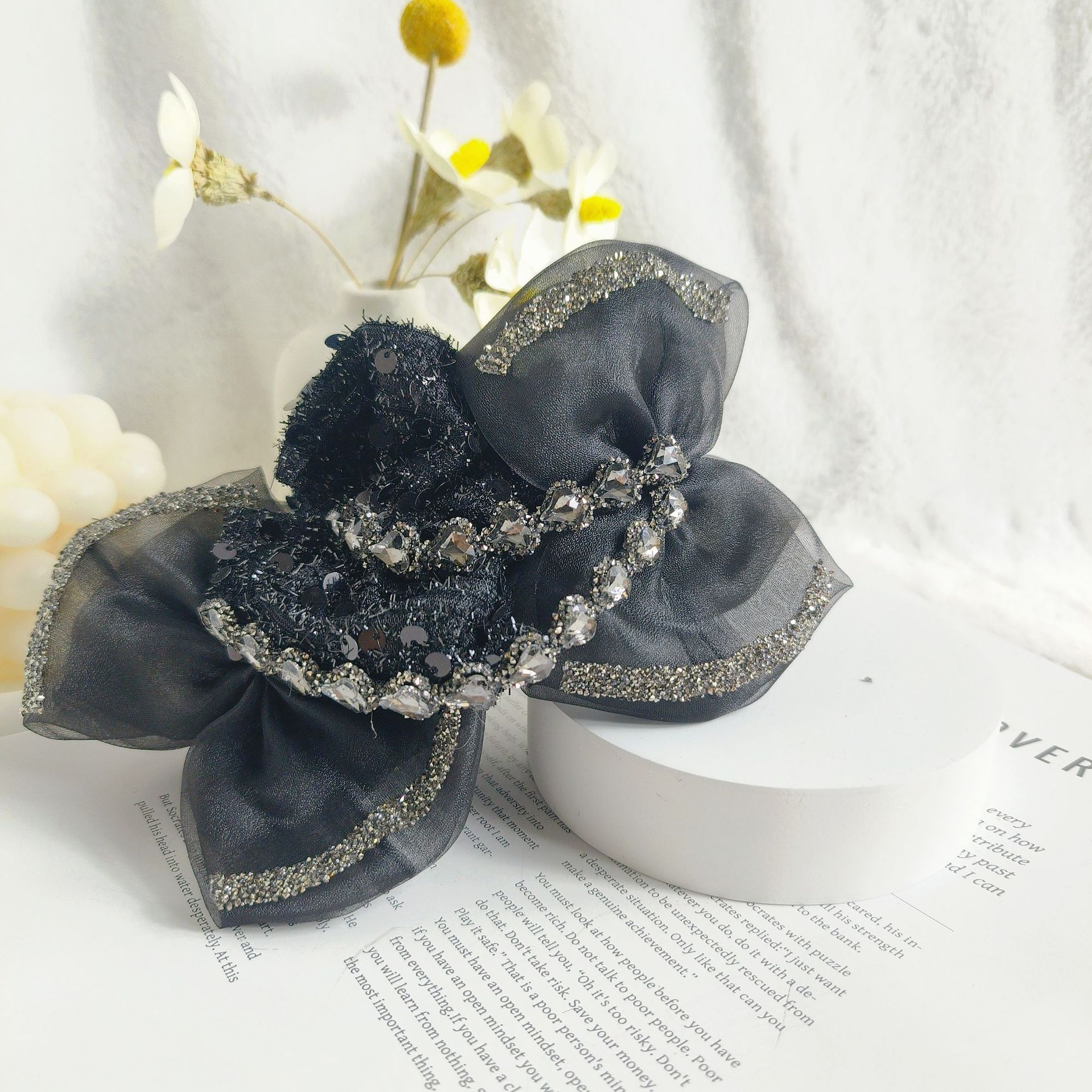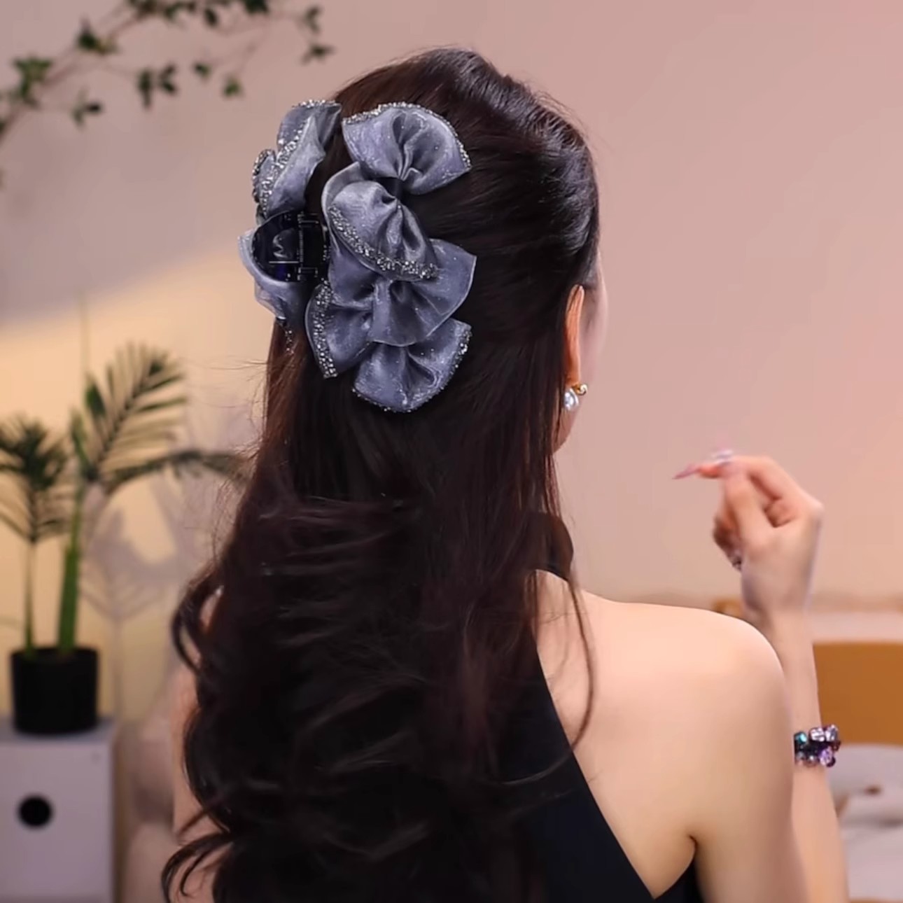 新款2025【云妙】欧根纱灰色蝴蝶结高级感AB面显气质13cm抓夹发夹
