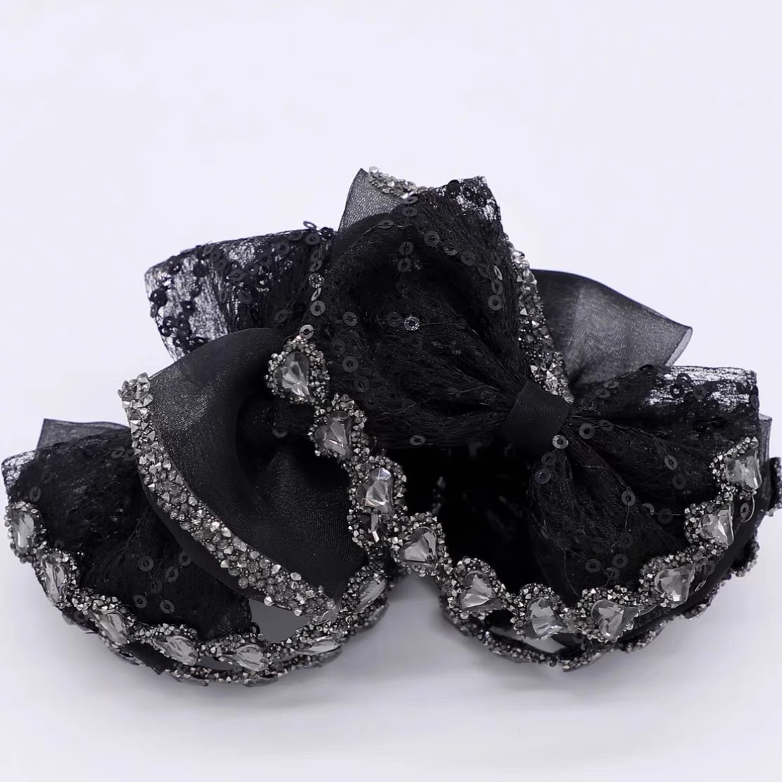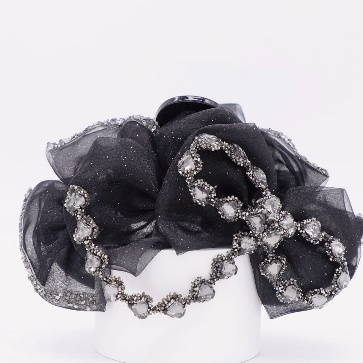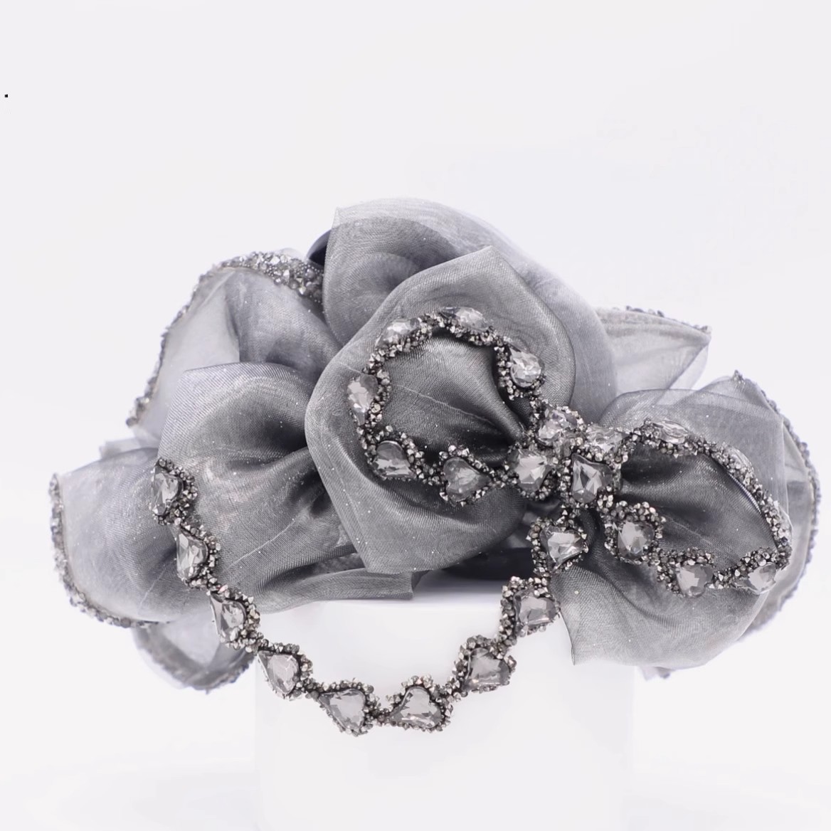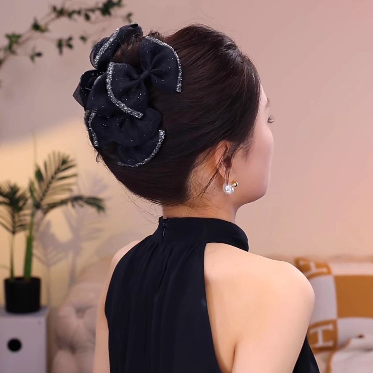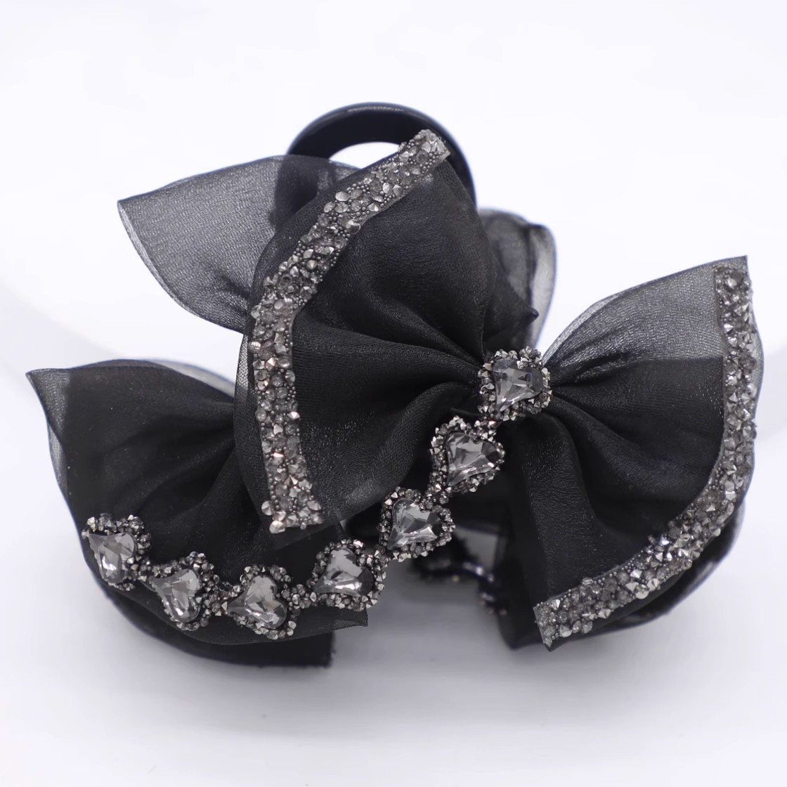 新款2025【云妙】欧根纱灰色蝴蝶结高级感AB面显气质13cm抓夹发夹