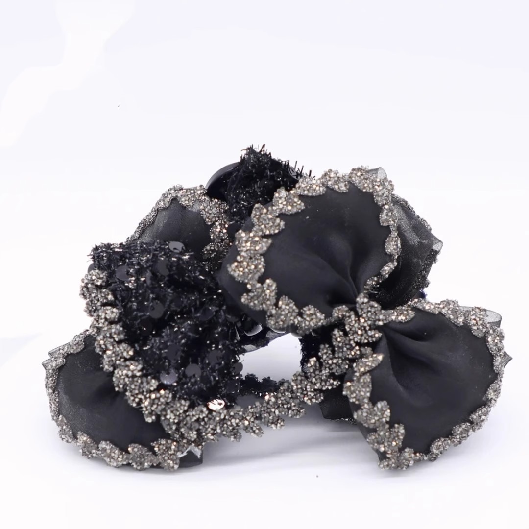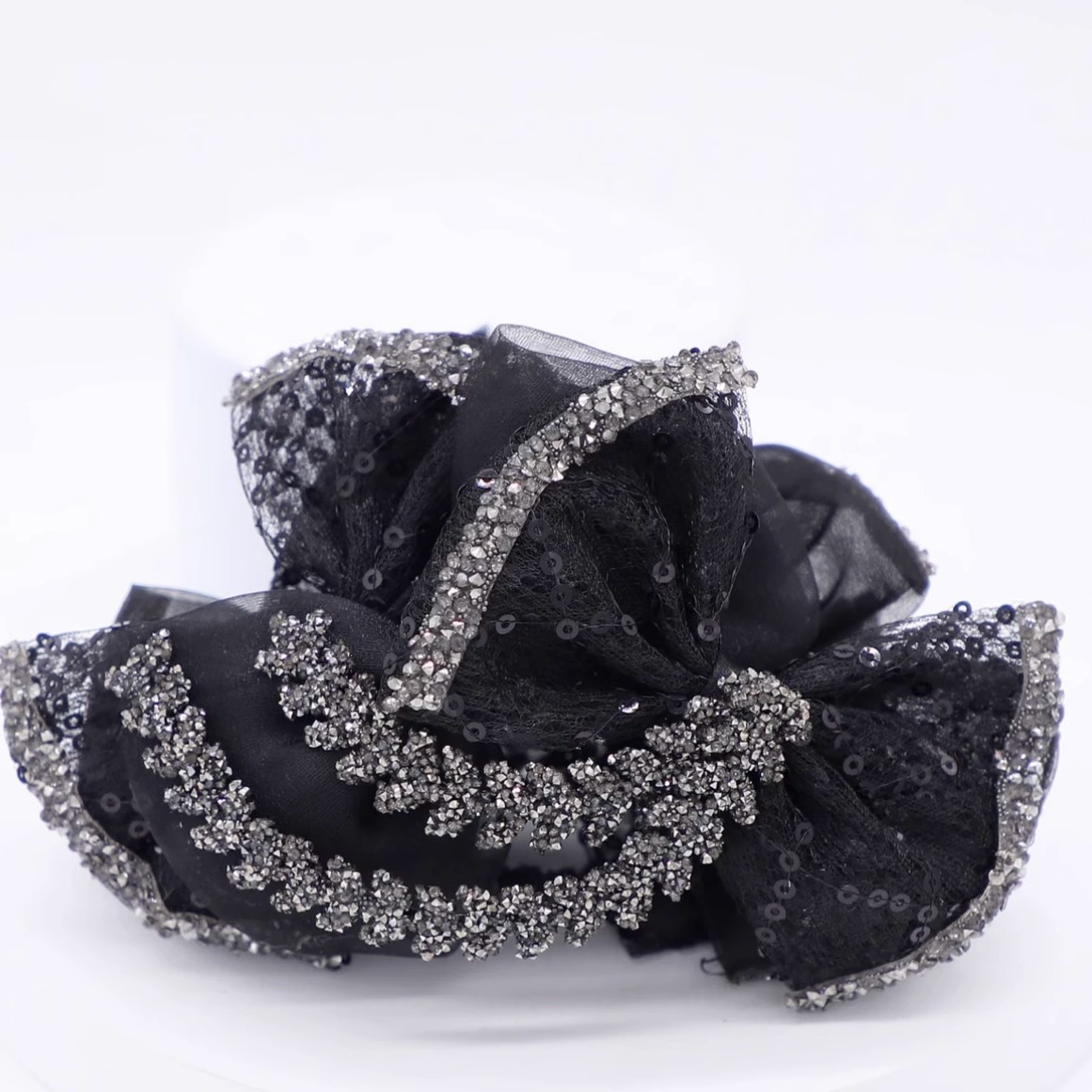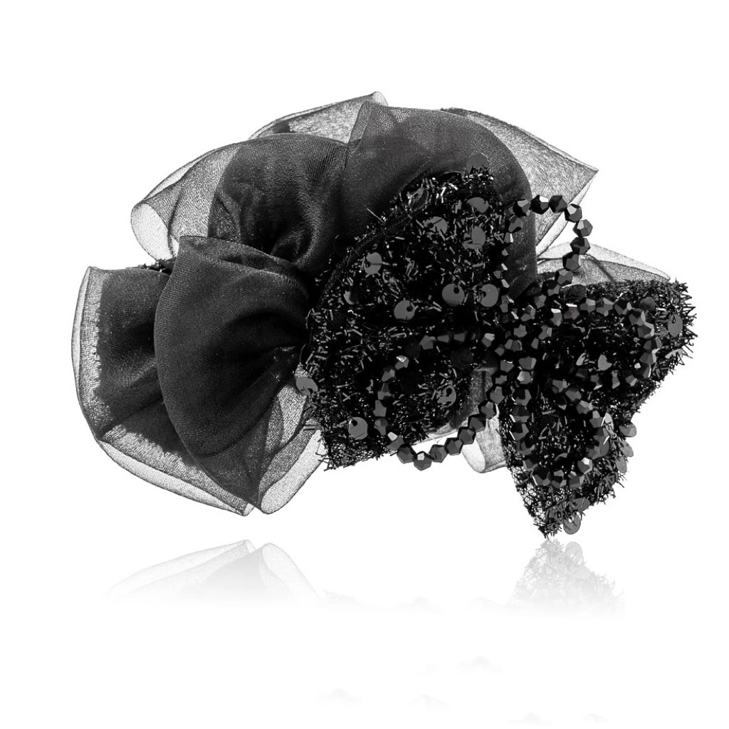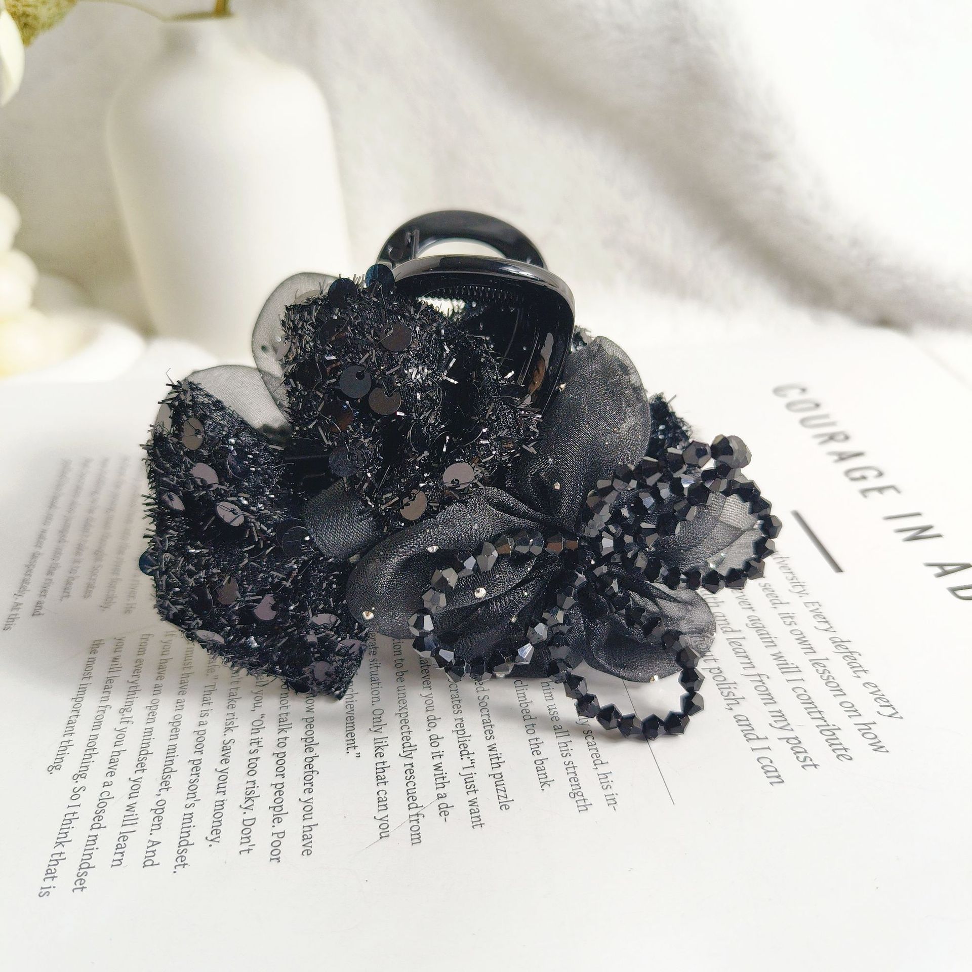 新款2025【云妙】欧根纱灰色蝴蝶结高级感AB面显气质13cm抓夹发夹