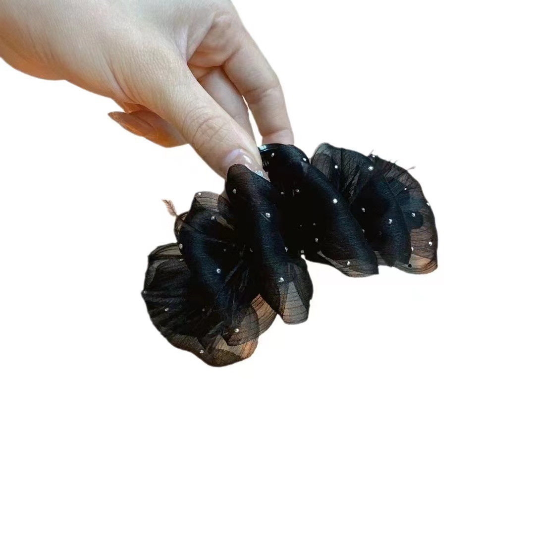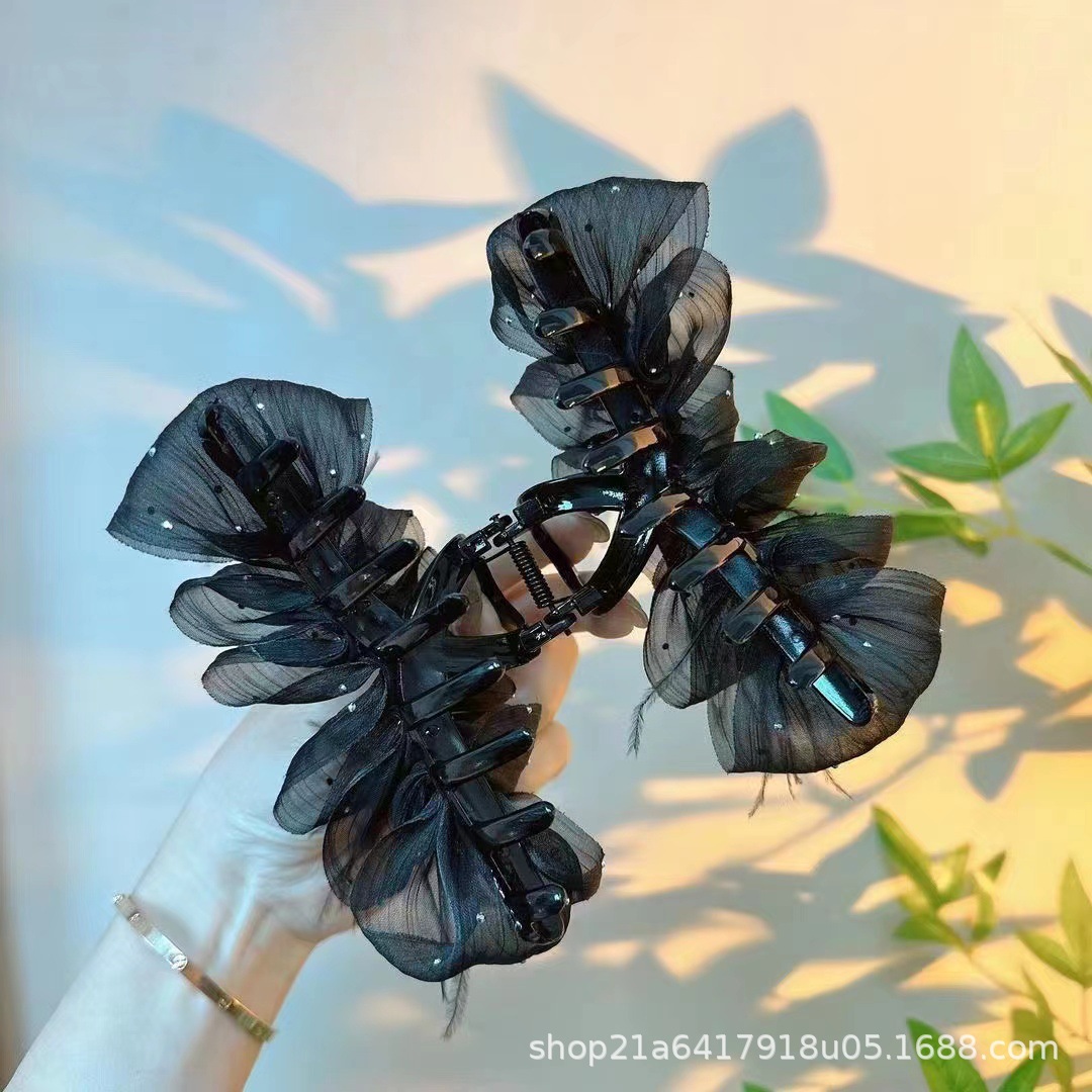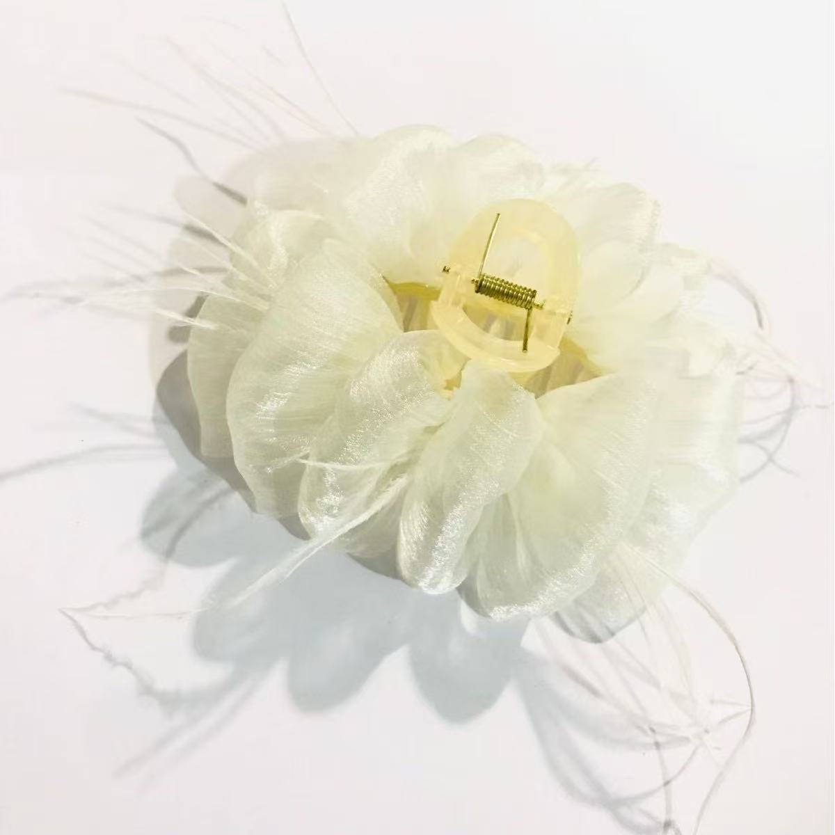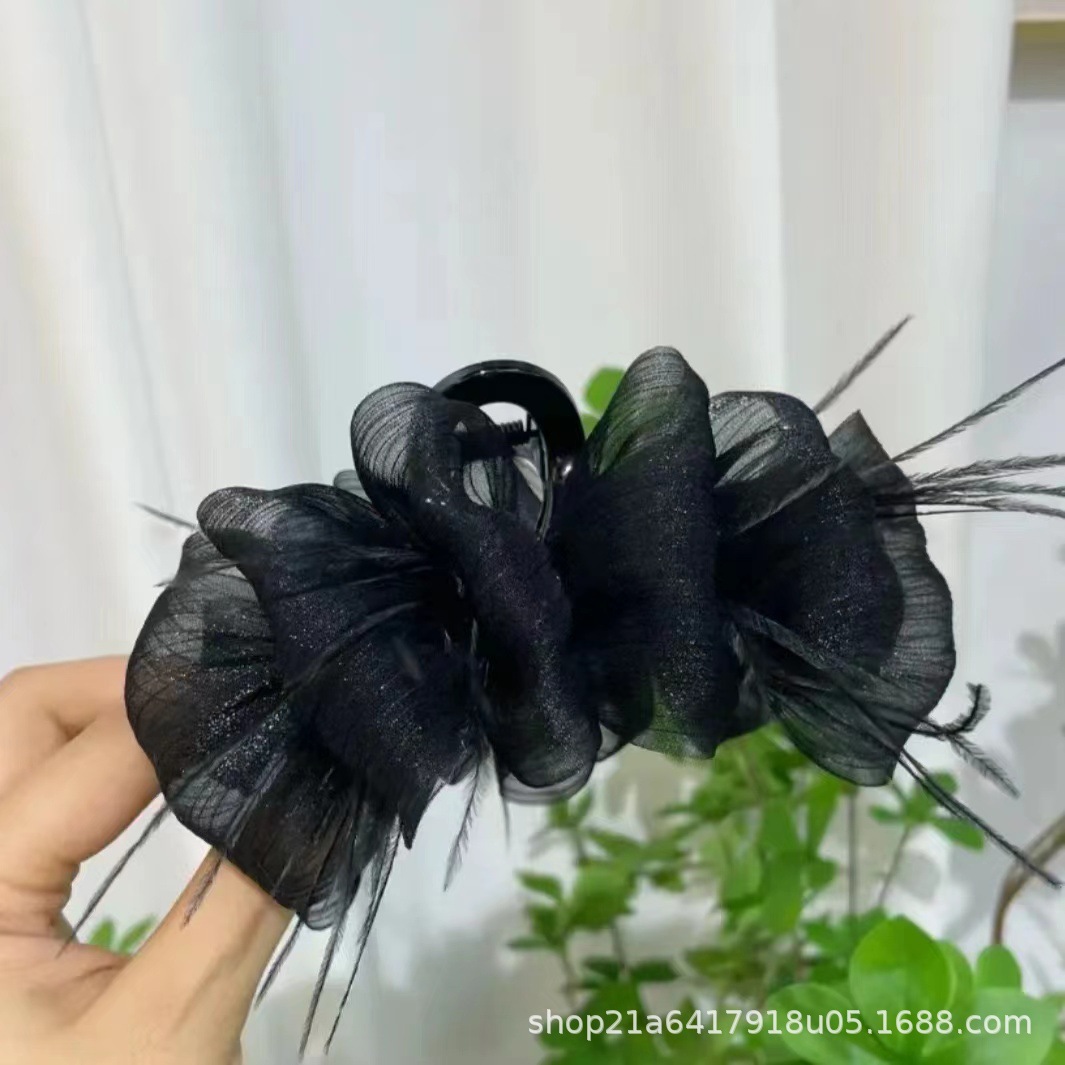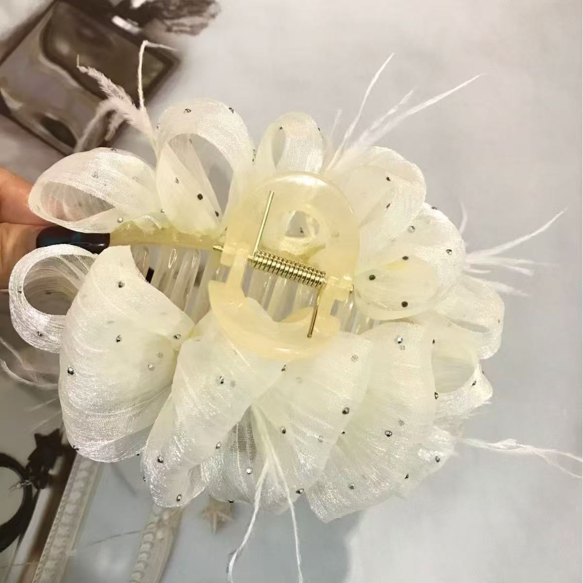 云朵泡泡纱抓夹女在逃公主满天星羽毛发饰轻奢后脑勺鲨鱼抓夹批发