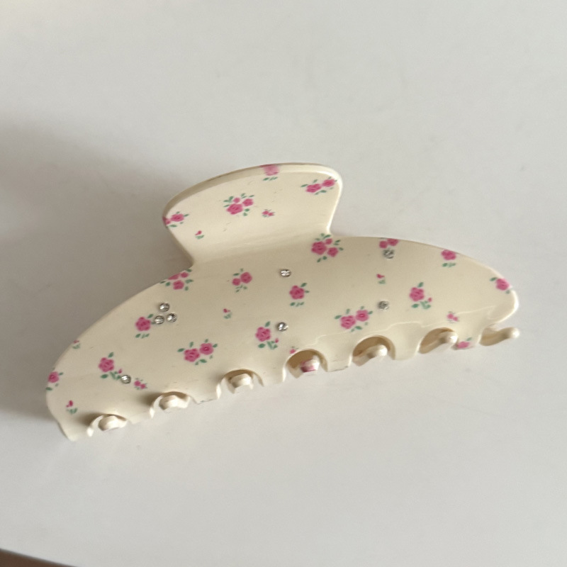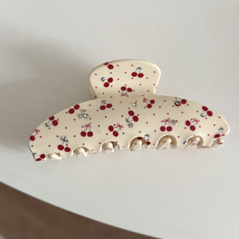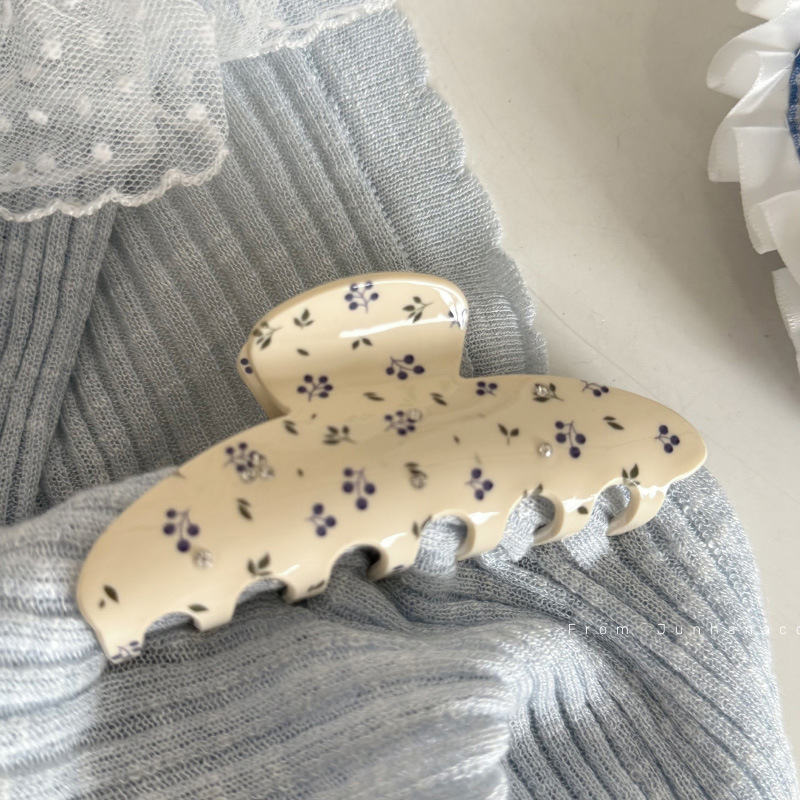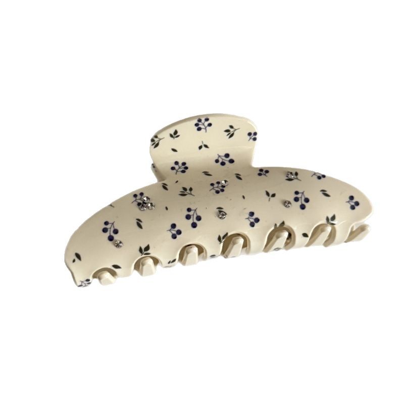 复古蓝色碎花樱桃镶钻抓夹韩系满天星后脑勺盘发鲨鱼夹子头饰女新