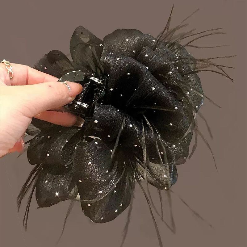 高级感满天星羽毛抓夹2024年新款显发量发夹后脑勺鲨鱼夹头花发卡